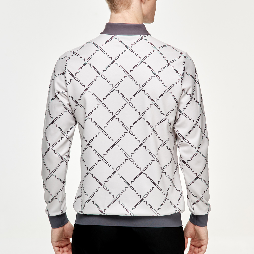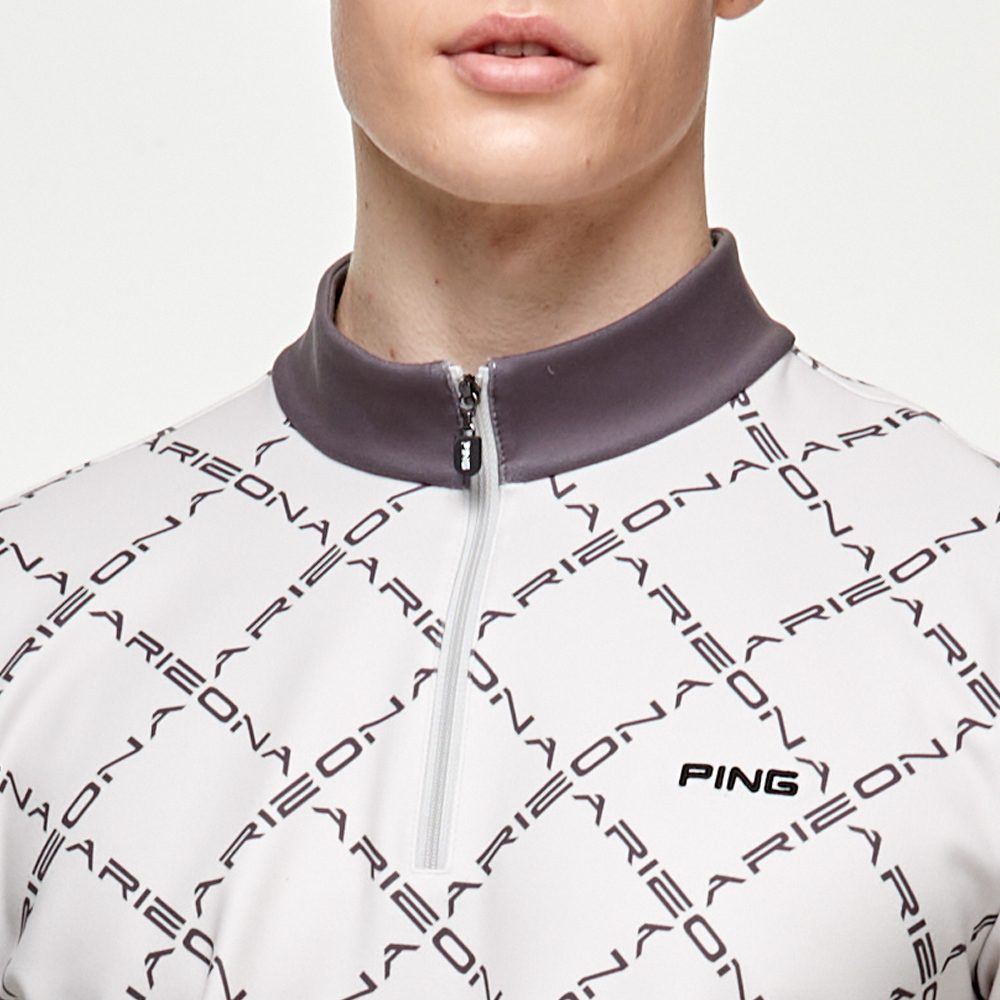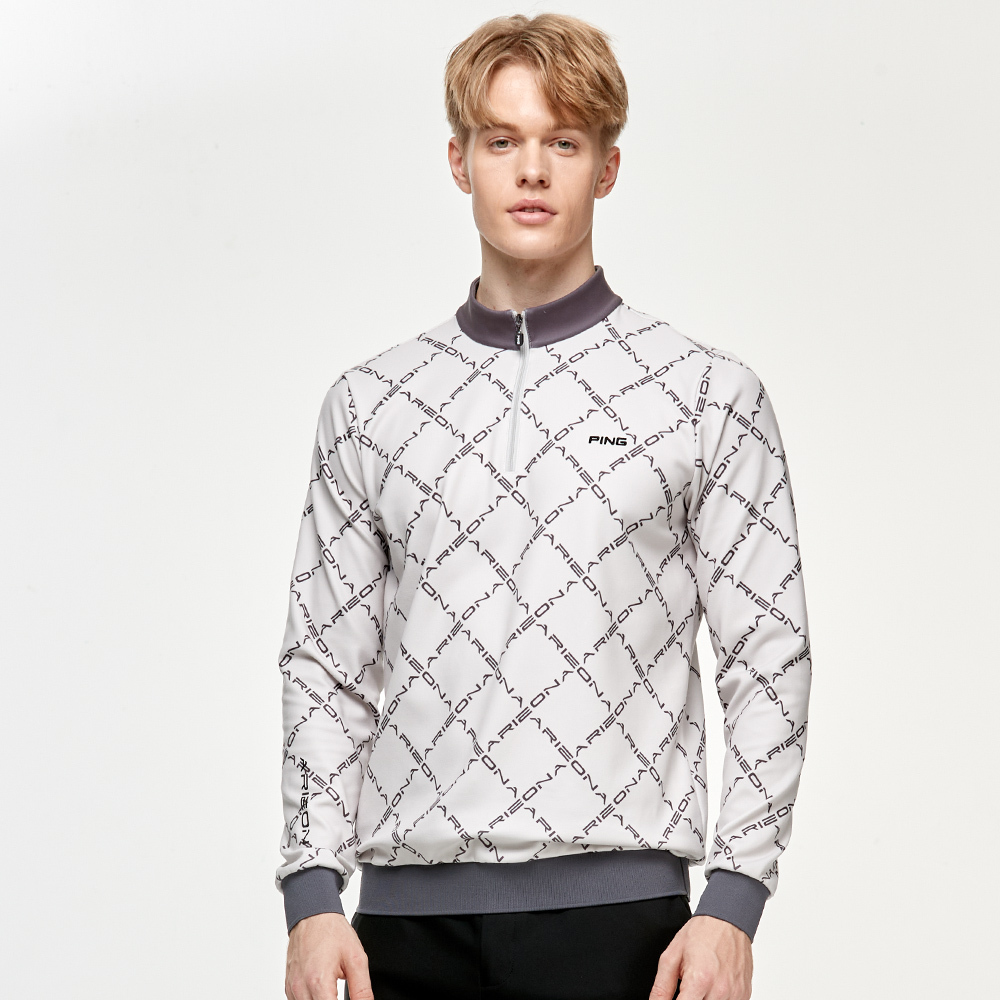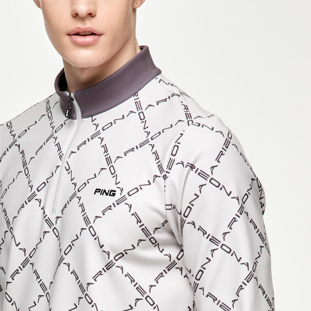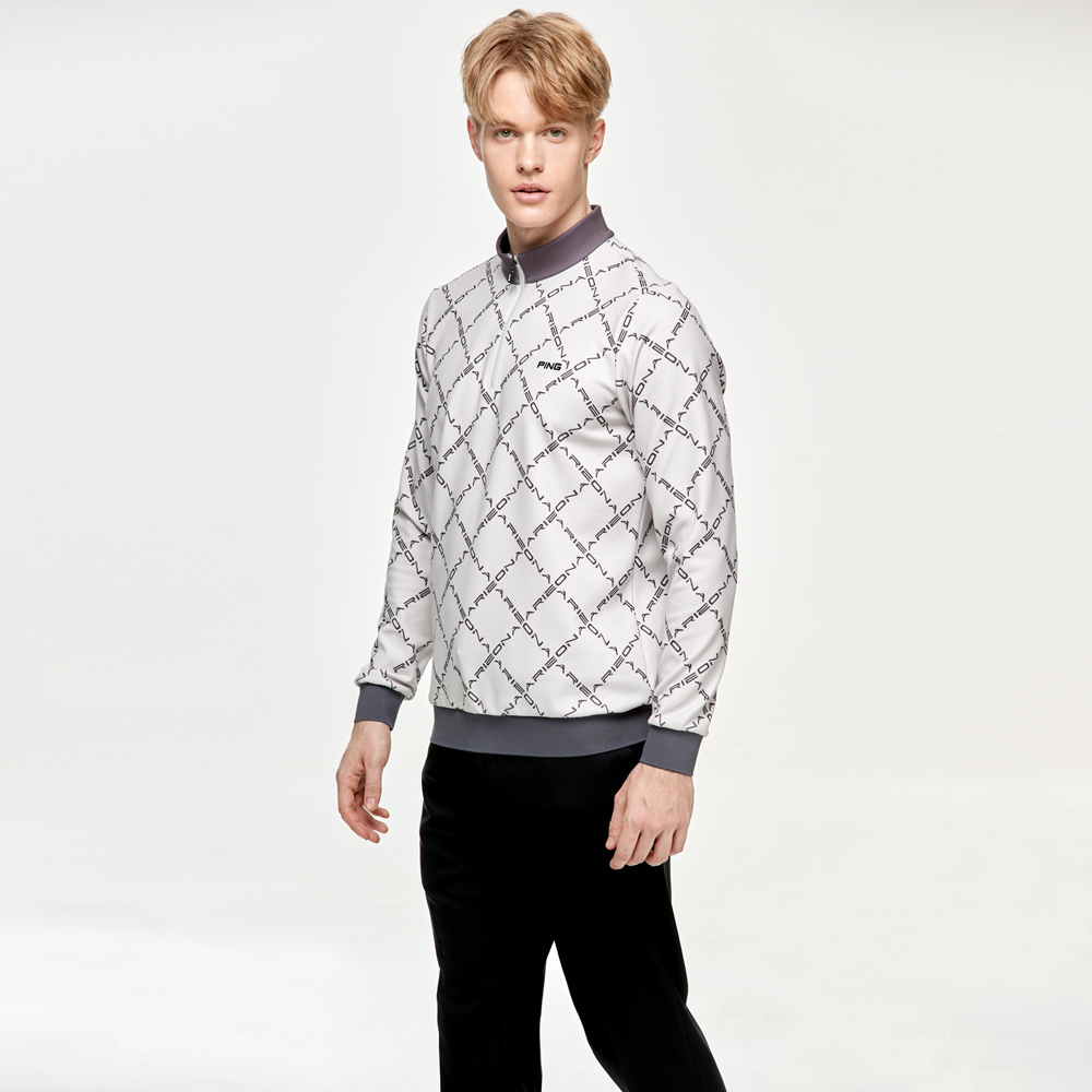 【PING】男款字體菱格紋長袖刷毛立領上衣-灰 / PA24225-85