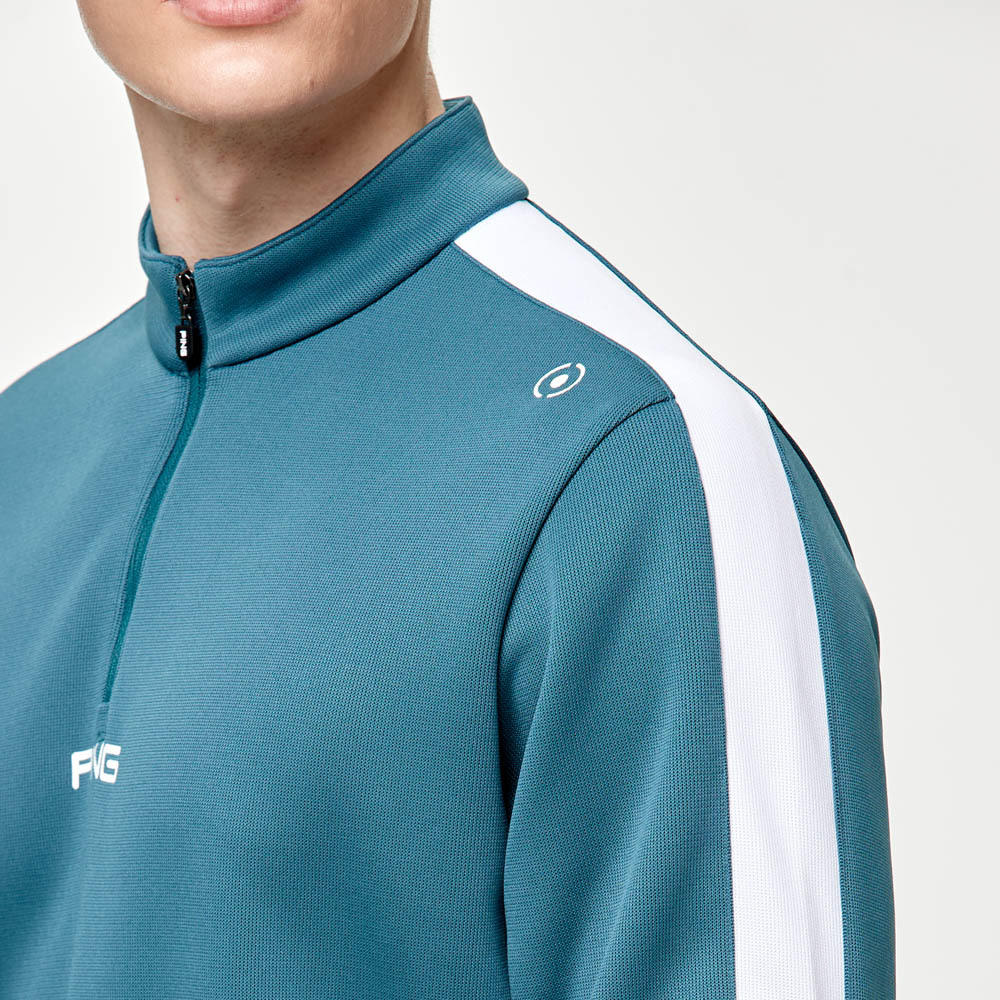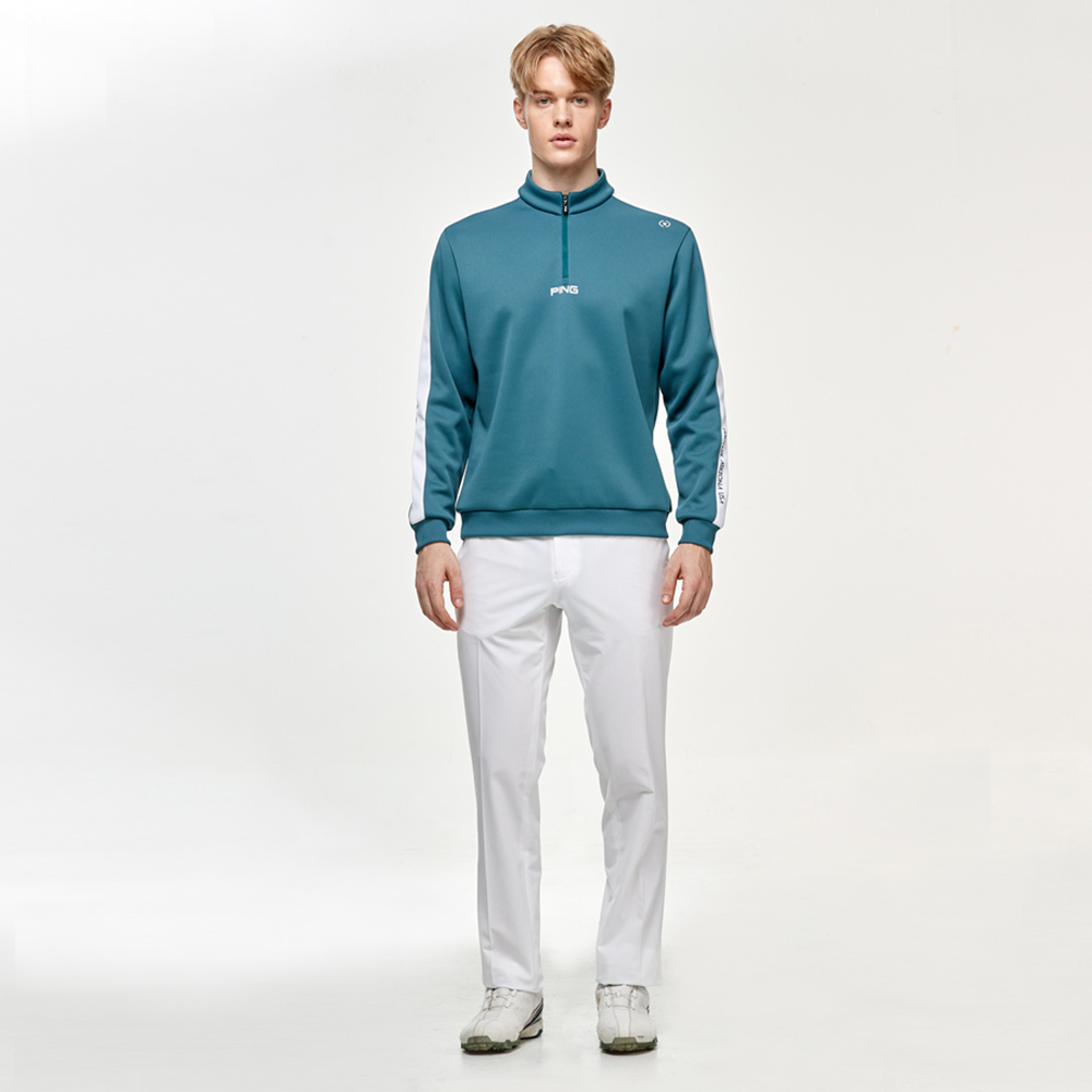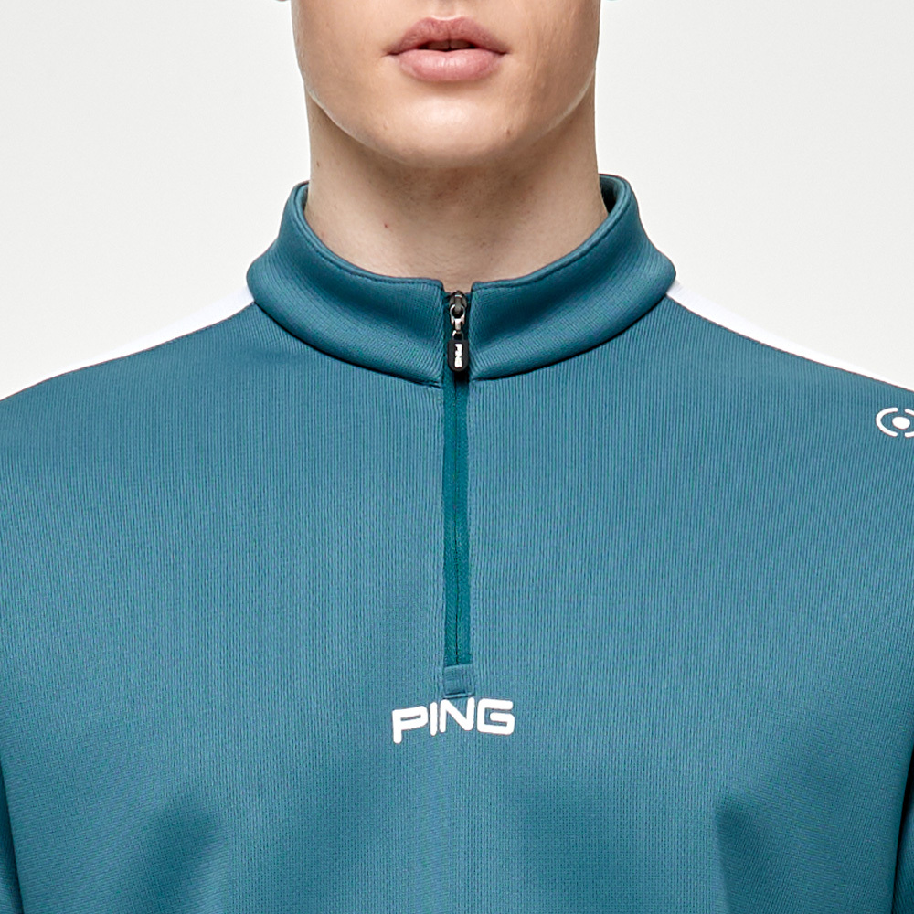 【PING】男款肩袖剪接配色長袖立領上衣-綠 / PA24227-48