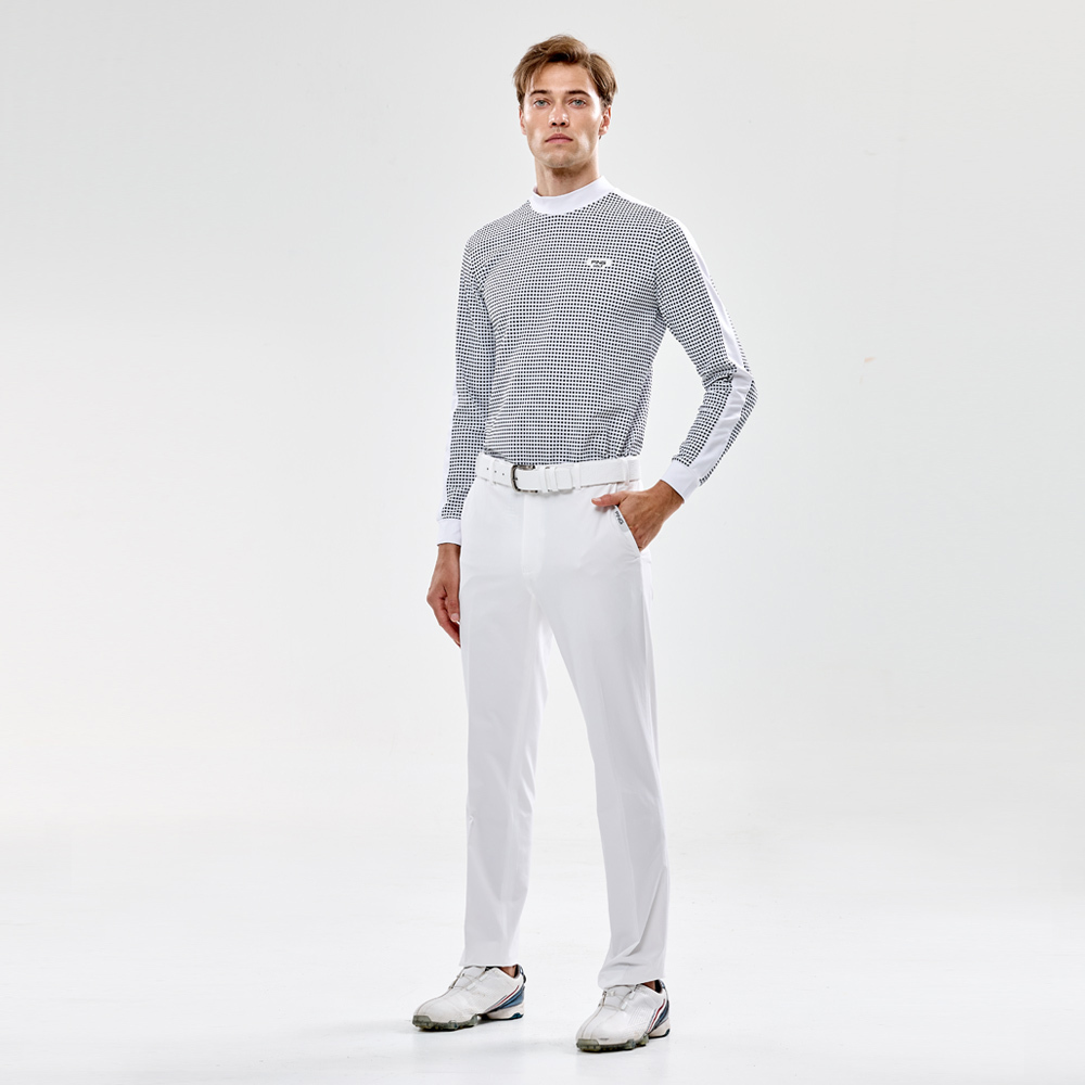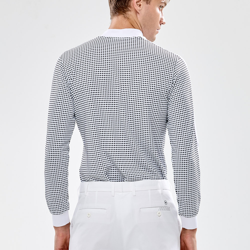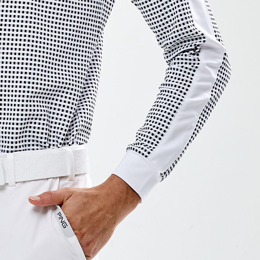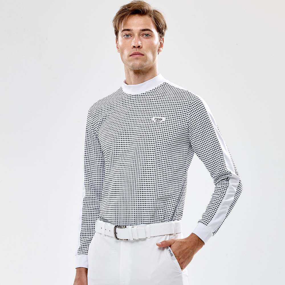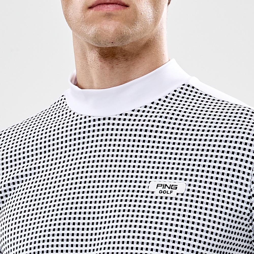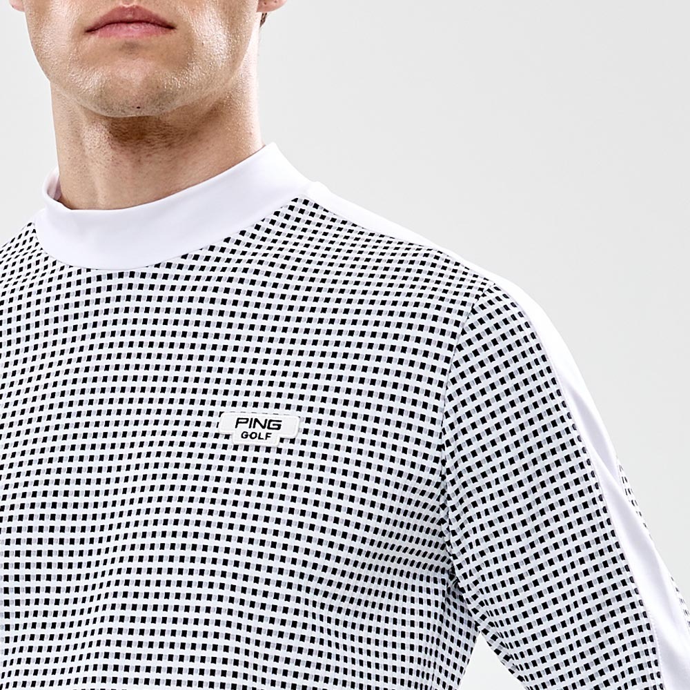 【PING】男款格紋吸濕排汗高爾夫薄長袖高領上衣-白 / PA24230-87