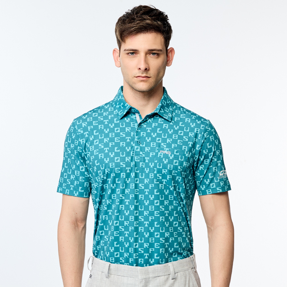 【PING】男款方塊字抗UV高爾夫口袋短袖POLO衫-綠 / PA25104-48