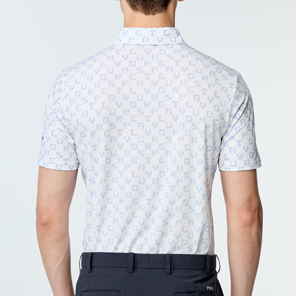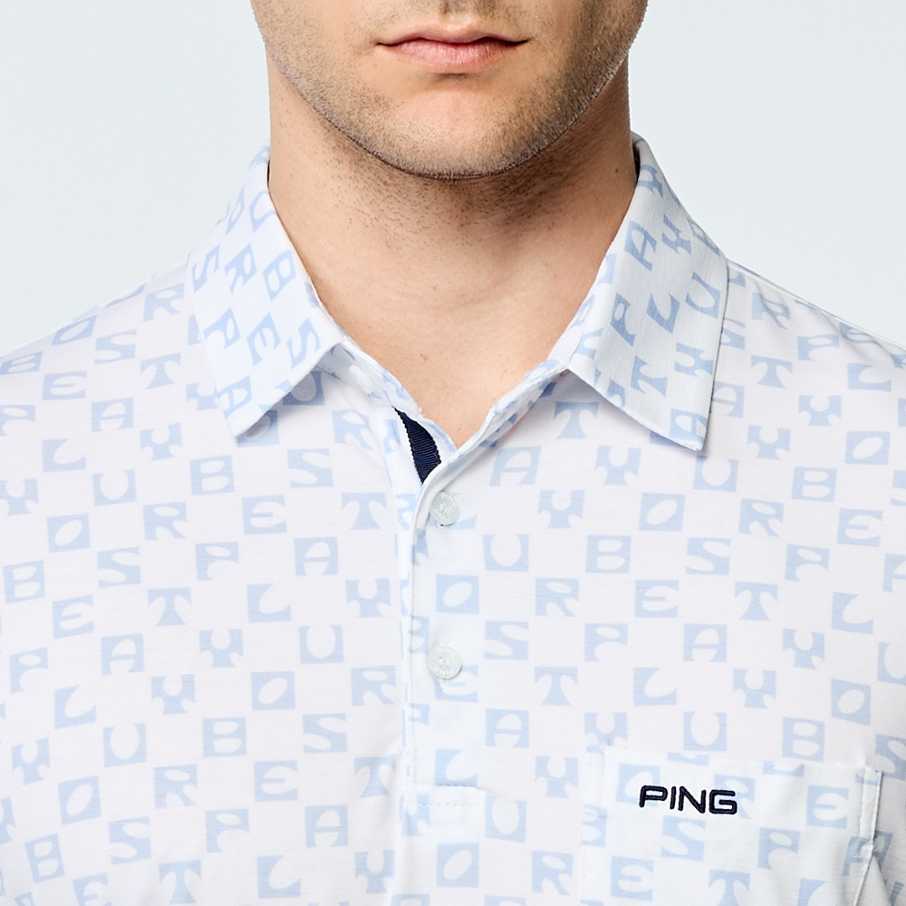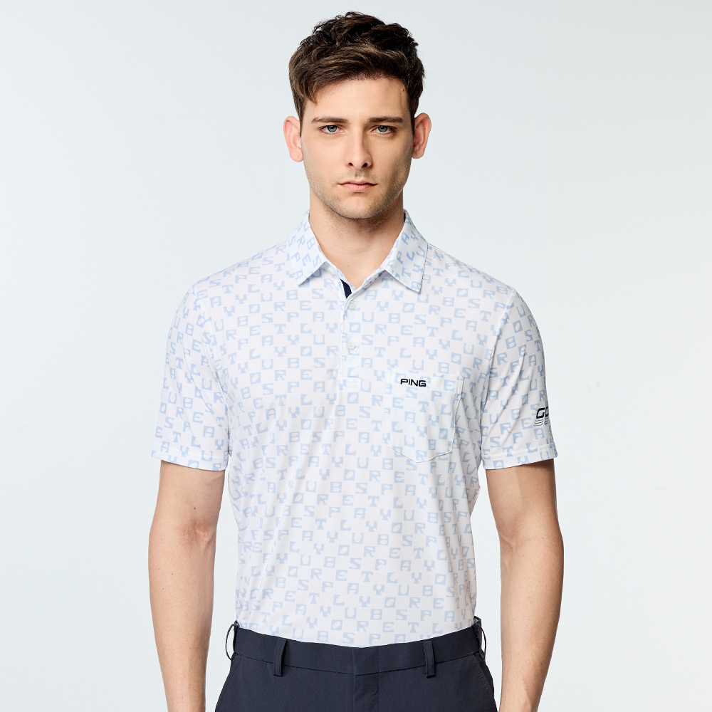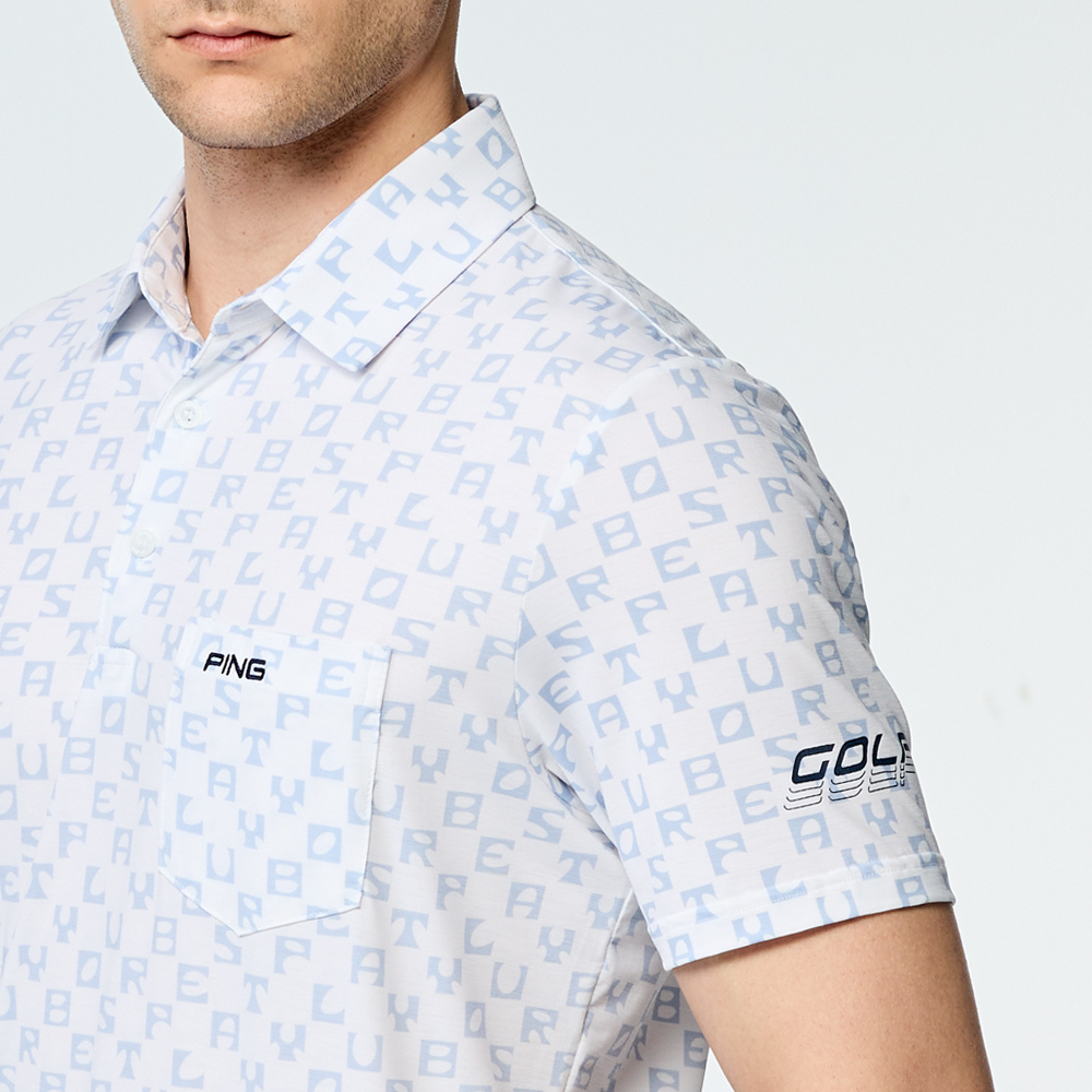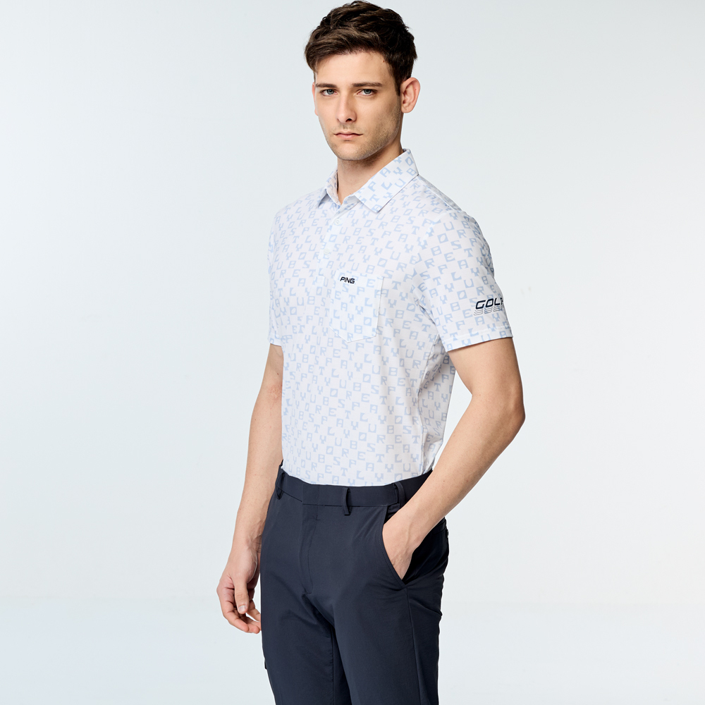 【PING】男款方塊字抗UV高爾夫口袋短袖POLO衫-藍 / PA25104-53
