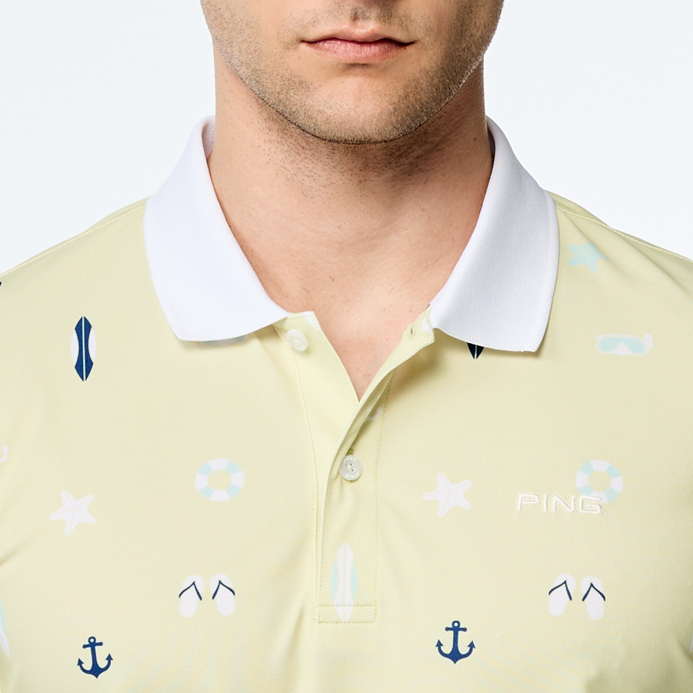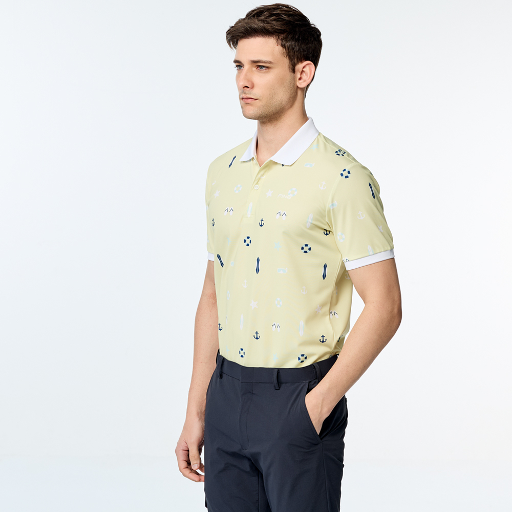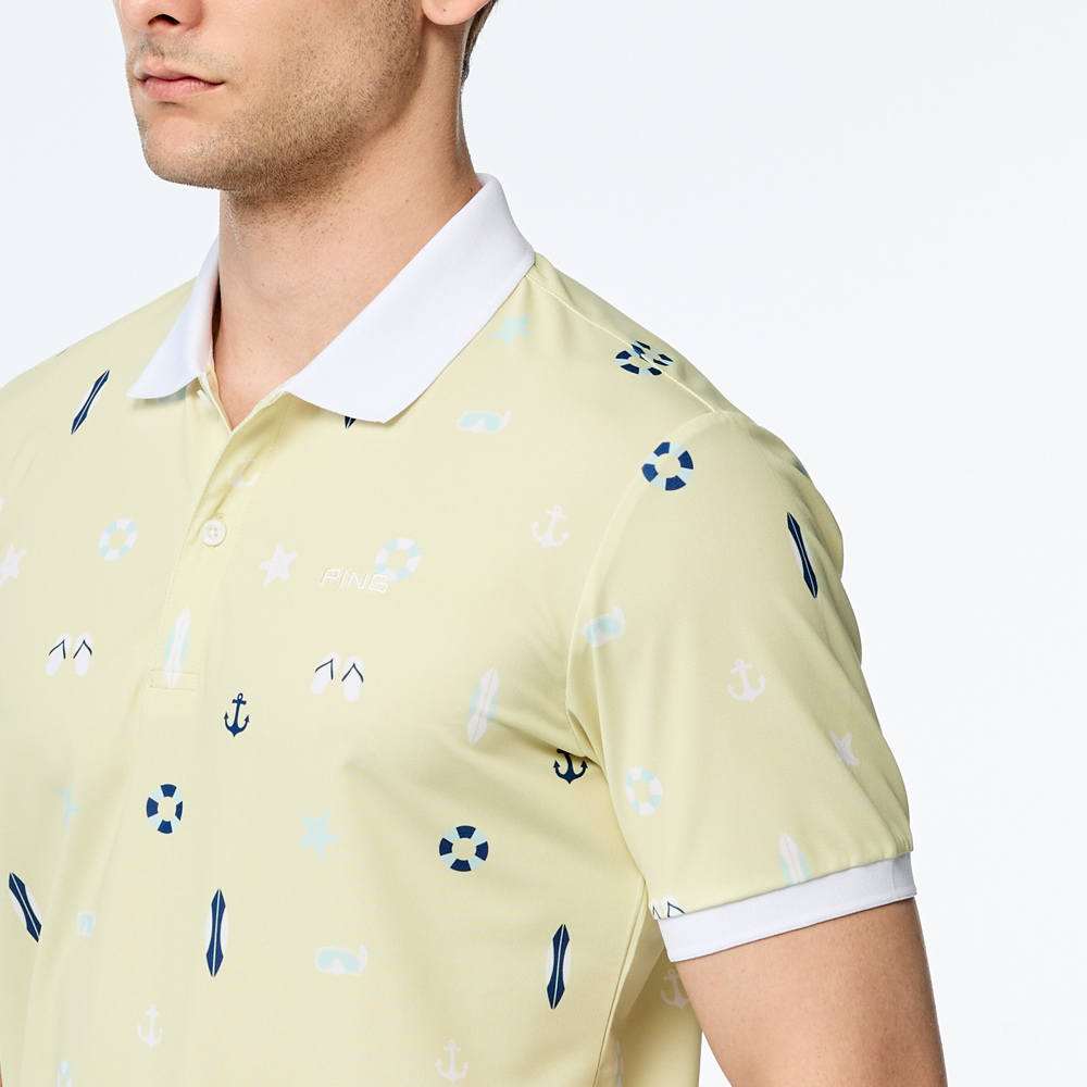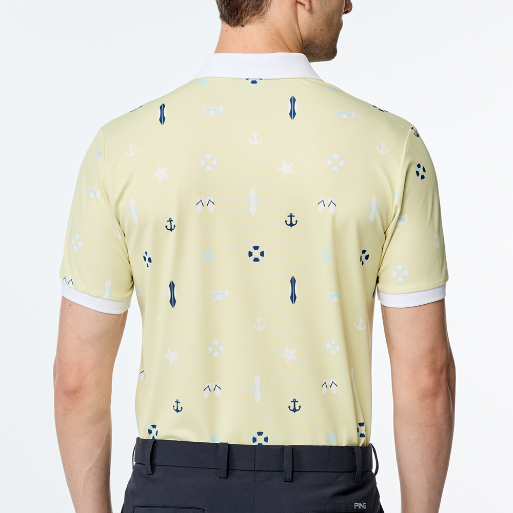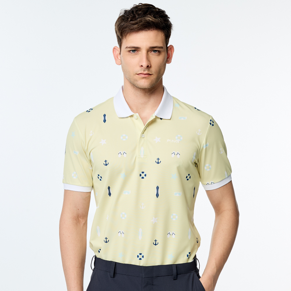 【PING】男款度假風吸濕排汗抗UV短袖POLO衫-黃 / PA25106-33