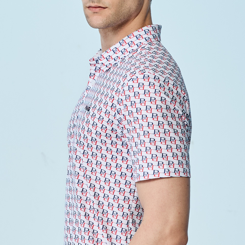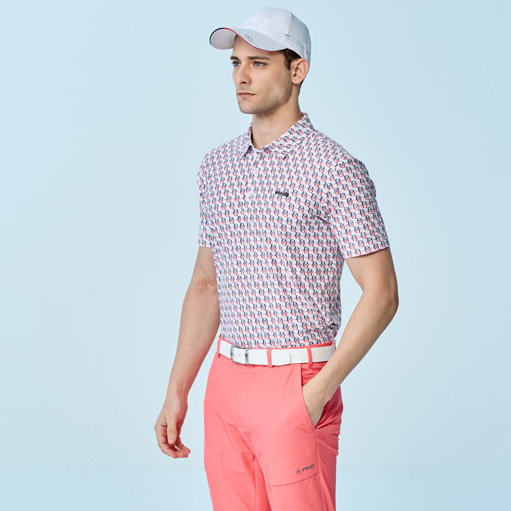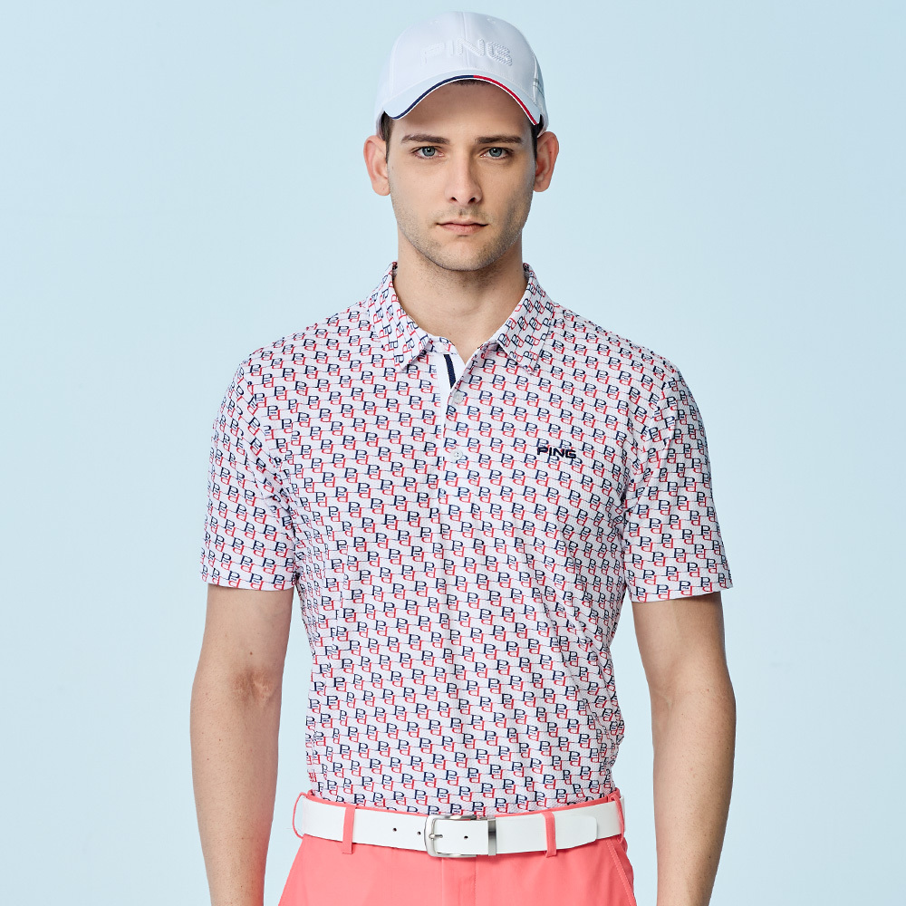 【PING】男款顛倒P字抗UV短袖POLO衫-紅 / PA25107-18