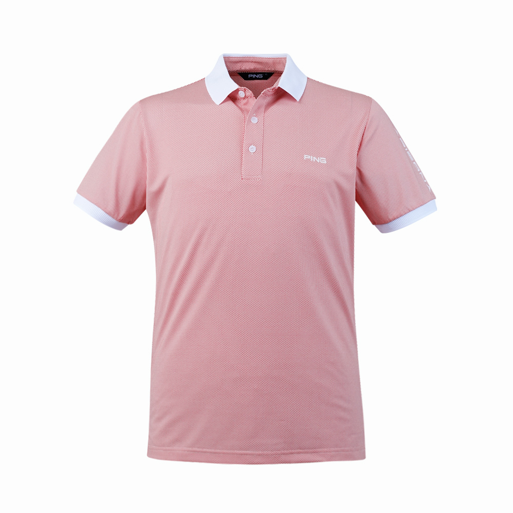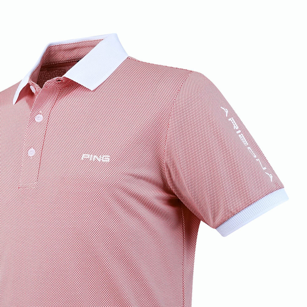 【PING】男款點點吸濕排汗涼感短袖POLO衫-橘紅 / PA25108-25