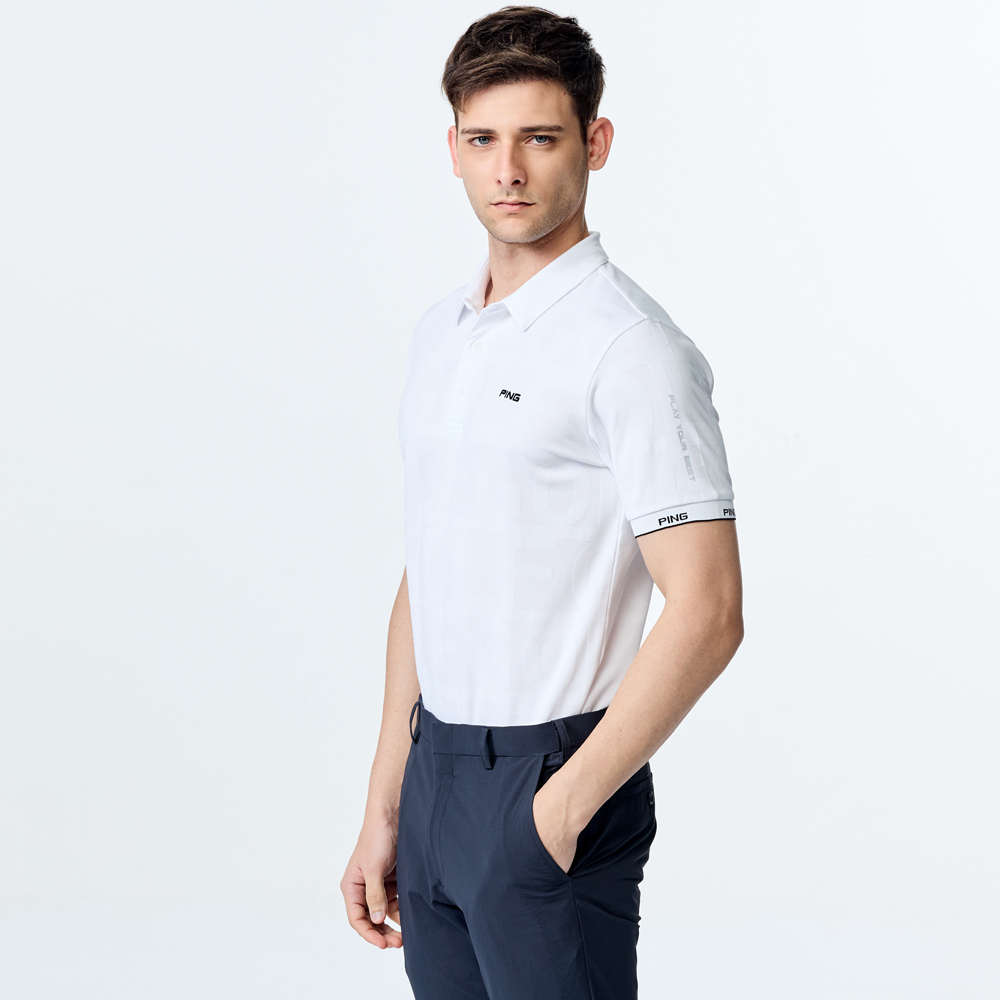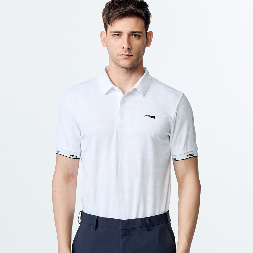 【PING】男款GOLF緹花涼感短袖POLO衫-白 / PA25111-87