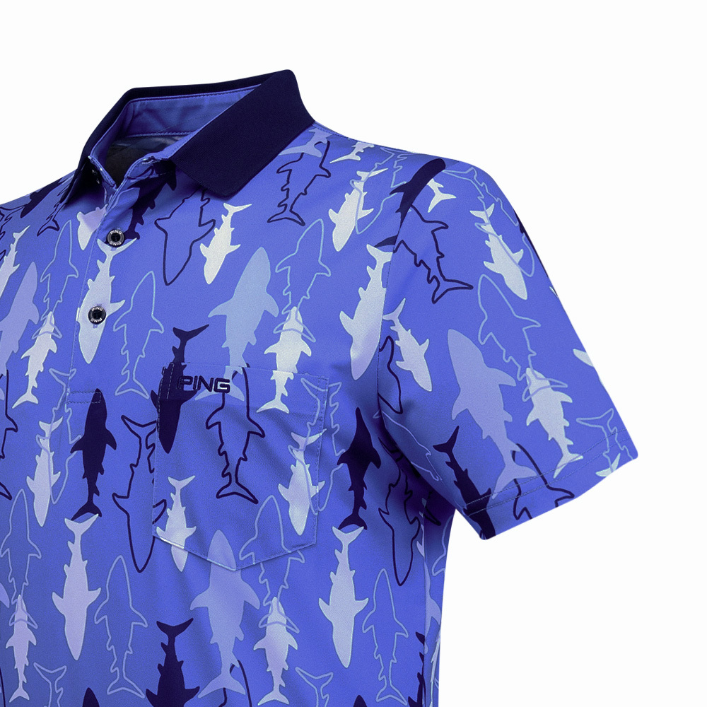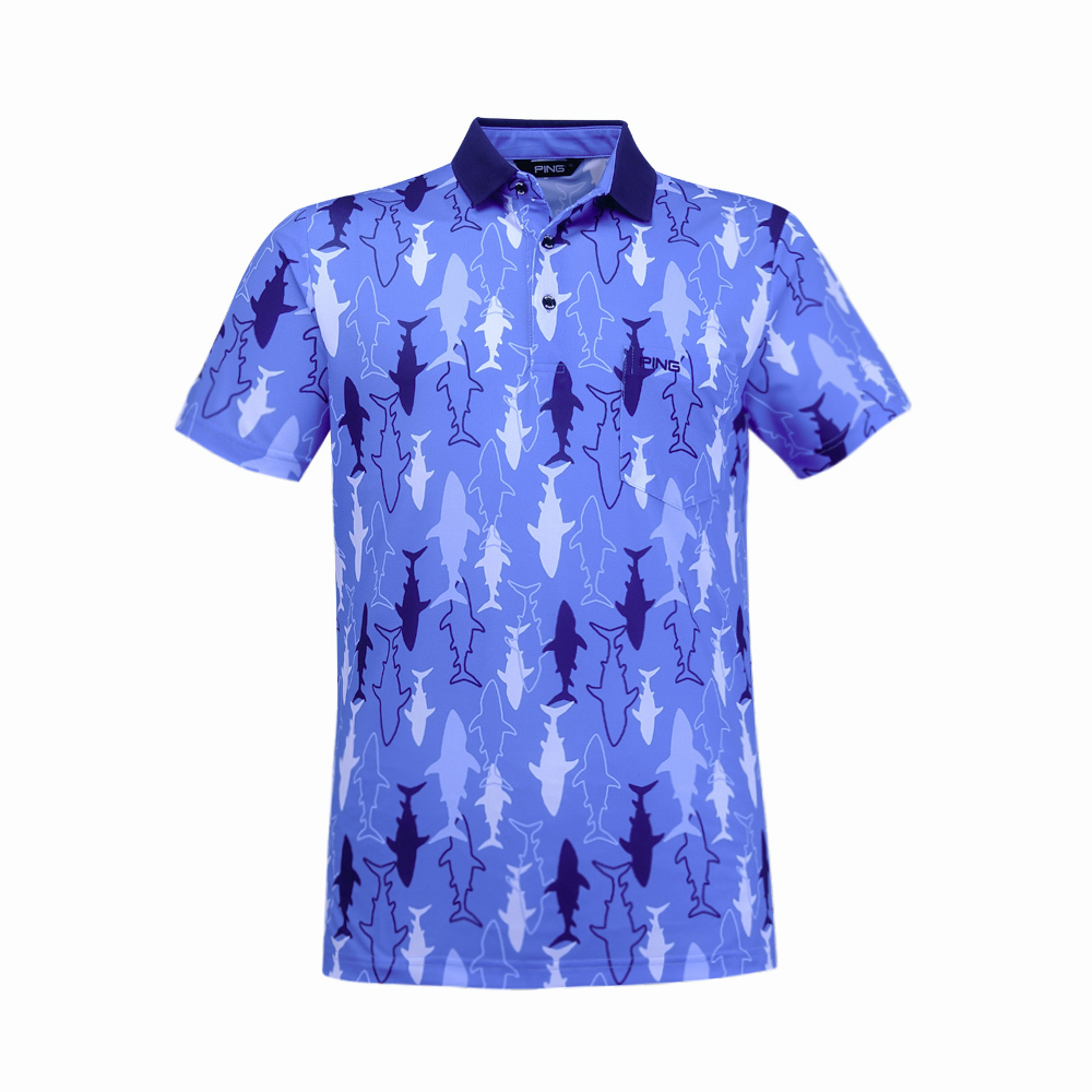 【PING】男款鯊魚吸濕排汗抗UV短袖POLO衫-藍 / PA25118-55