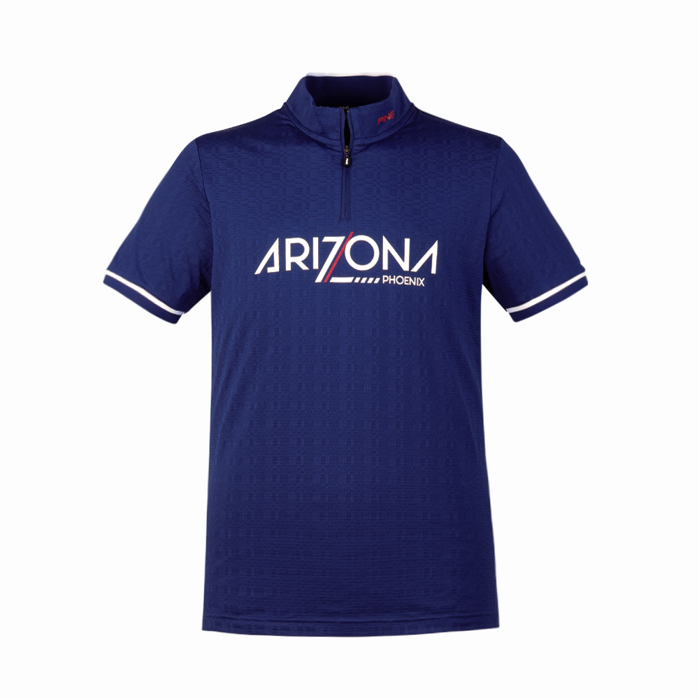 【PING】男款吸濕排汗涼感高爾夫短袖立領上衣-藍 / PA25120-56