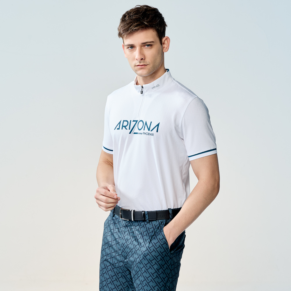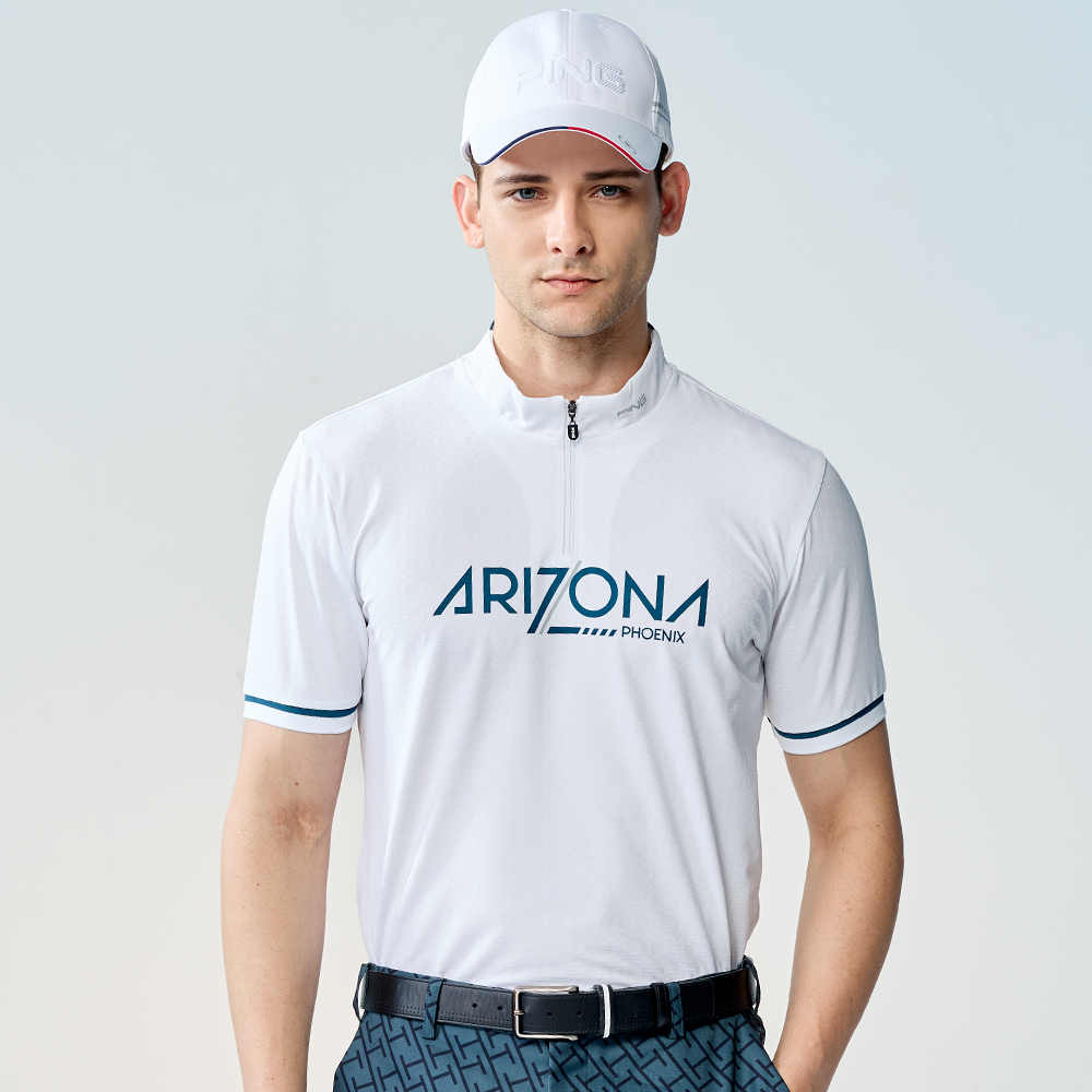 【PING】男款吸濕排汗涼感高爾夫短袖立領上衣-白 / PA25120-87