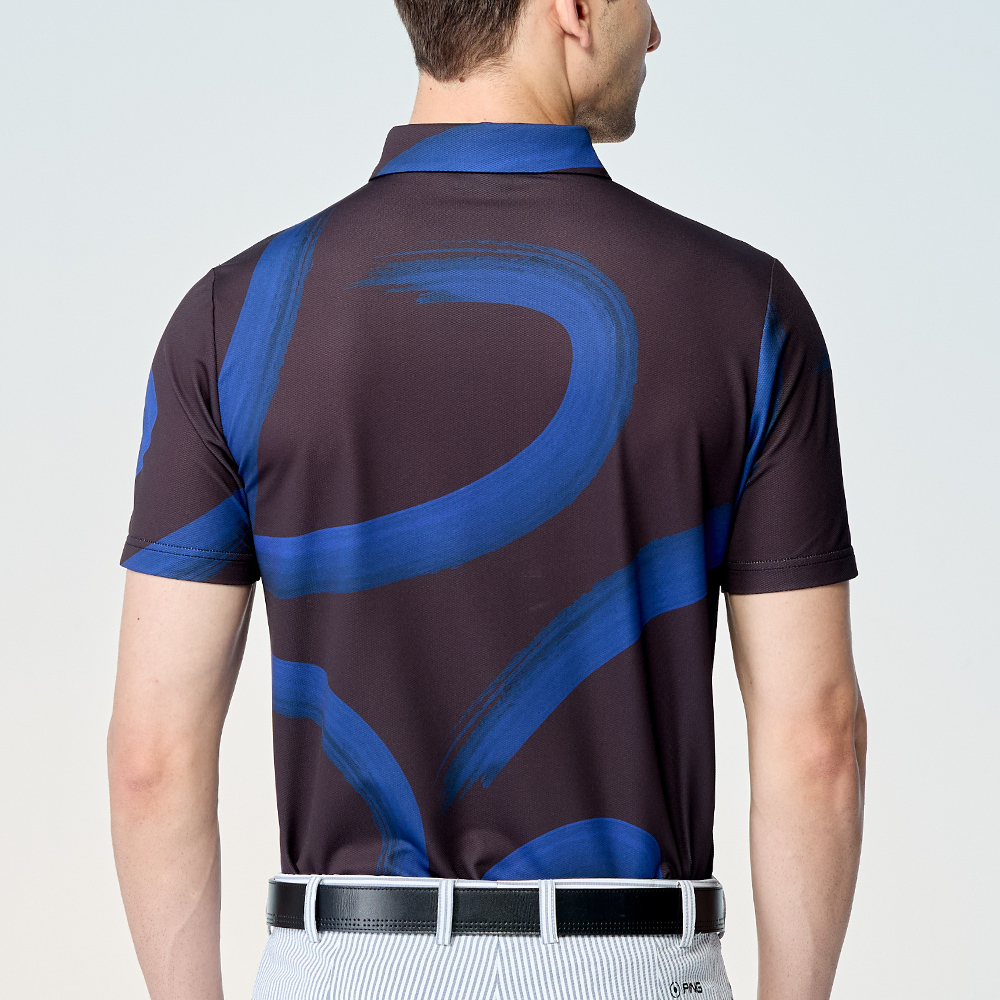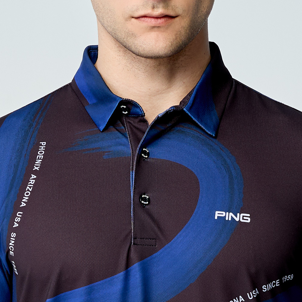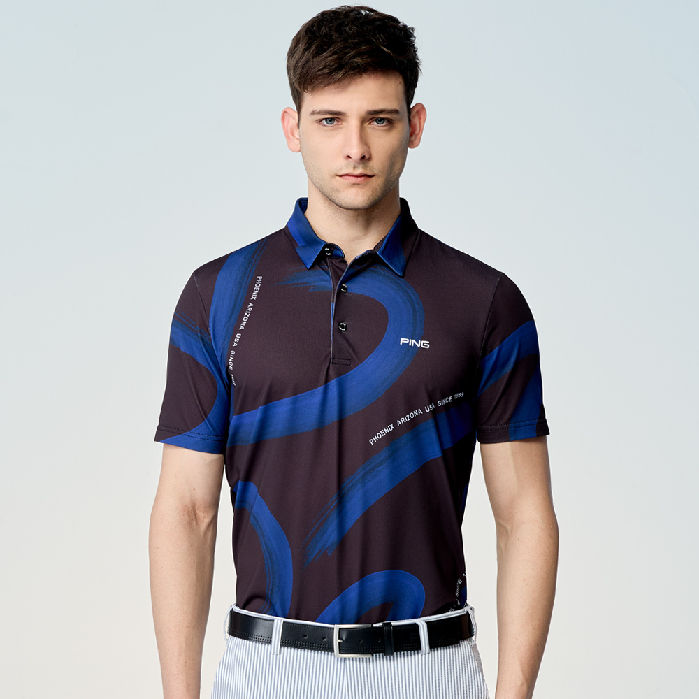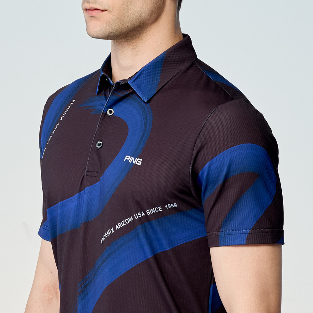 【PING】男款水彩筆刷抗UV高爾夫短袖POLO衫-黑 / PA25123-88