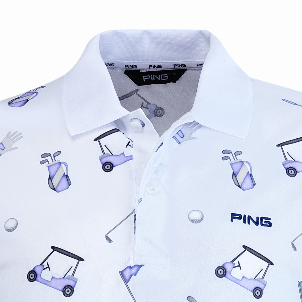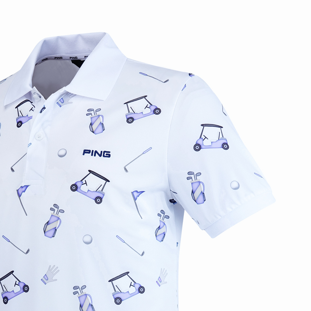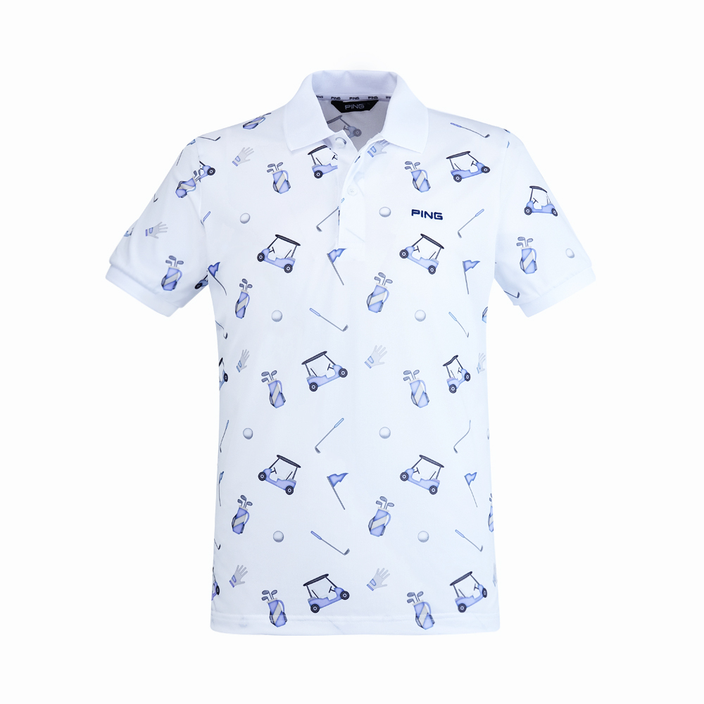 【PING】男款球具圖騰抗UV高爾夫短袖POLO衫-白 / PA25125-87