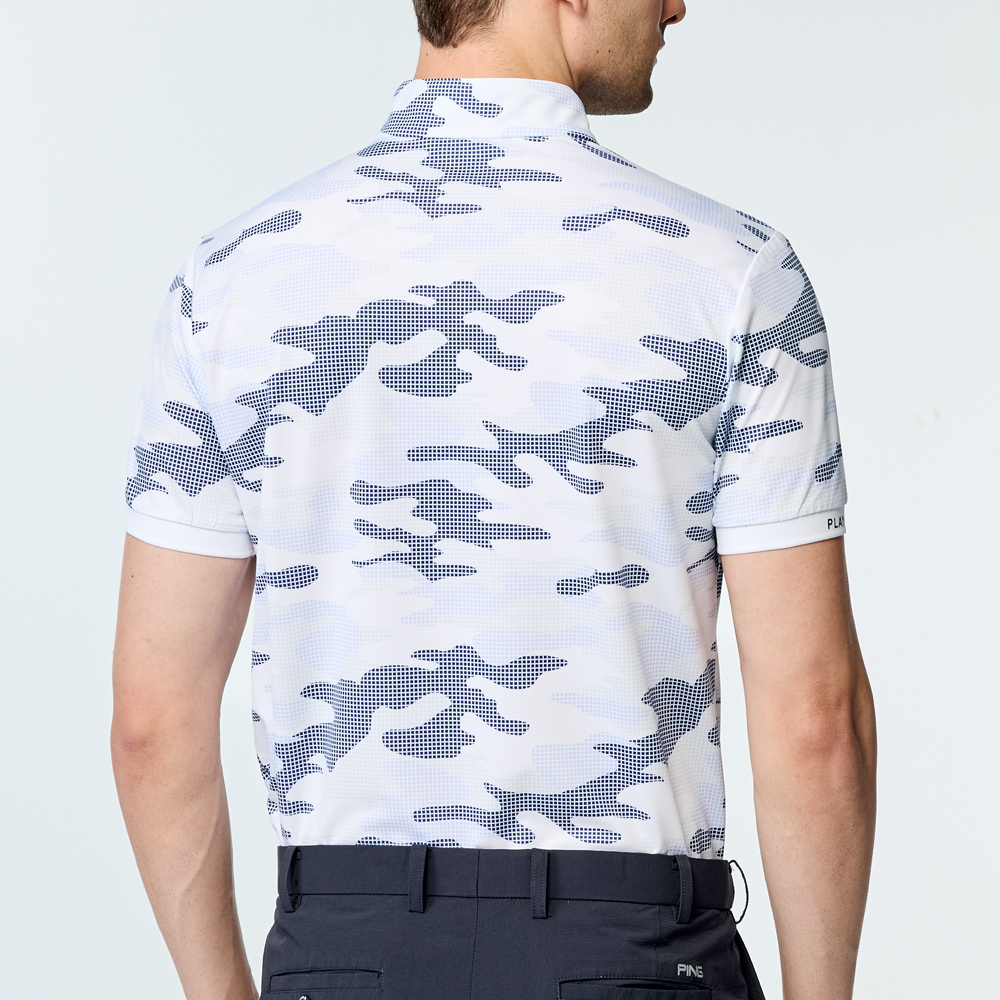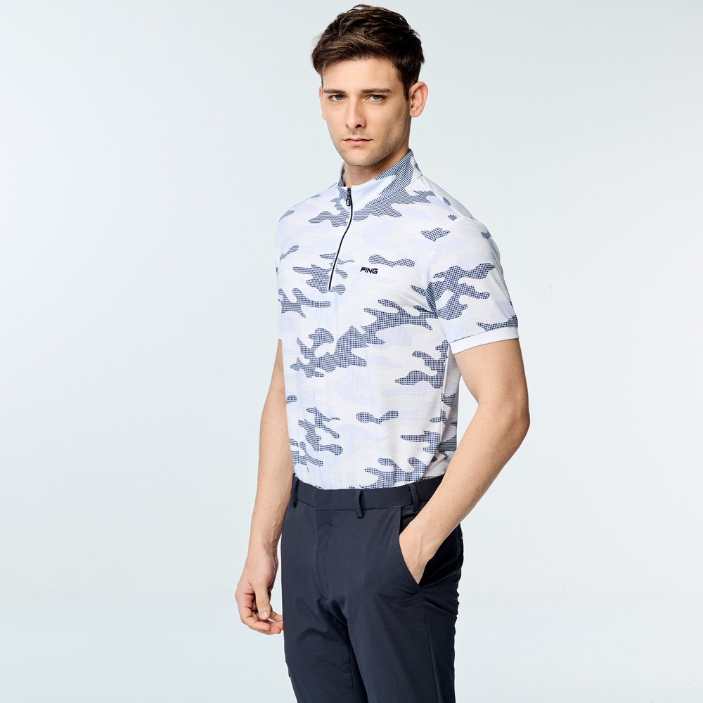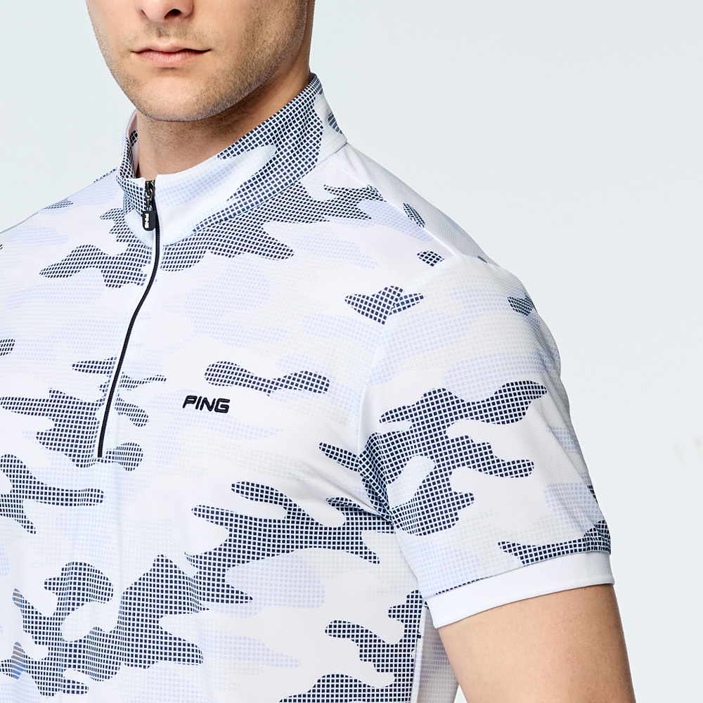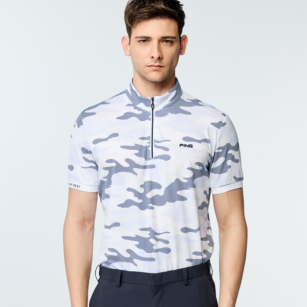 【PING】男款迷彩抗UV高爾夫短袖立領上衣-藍 / PA25128-55