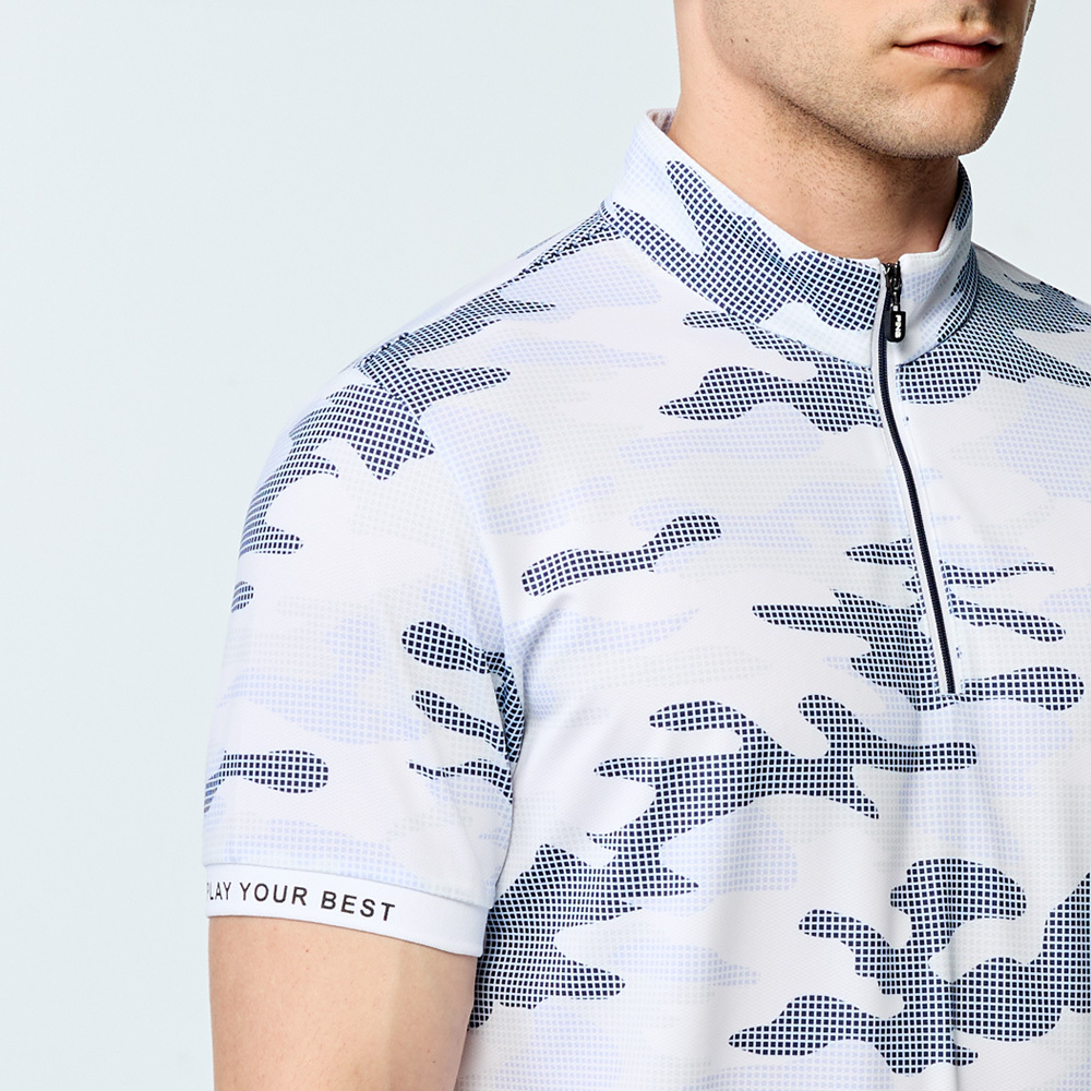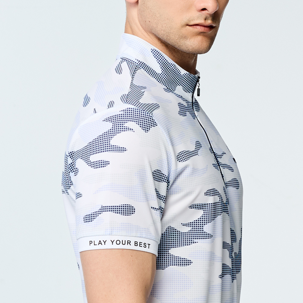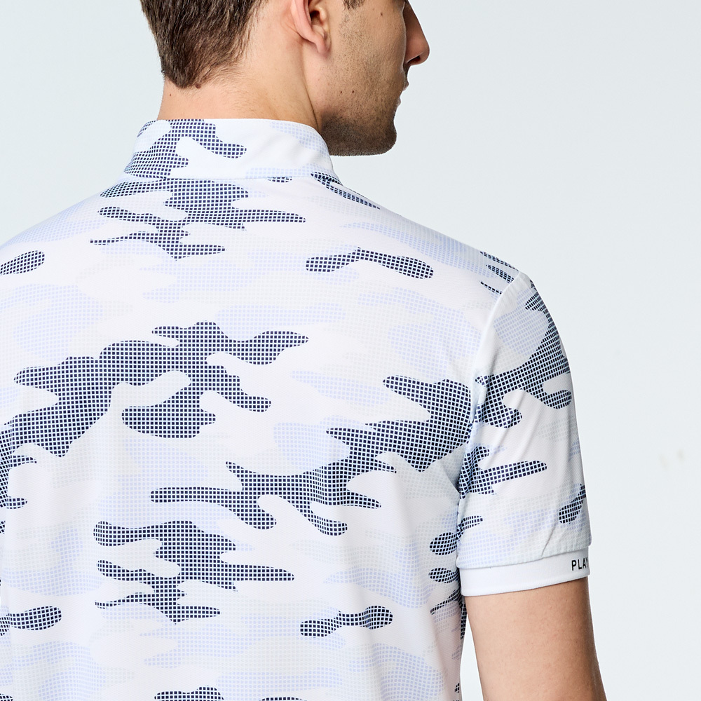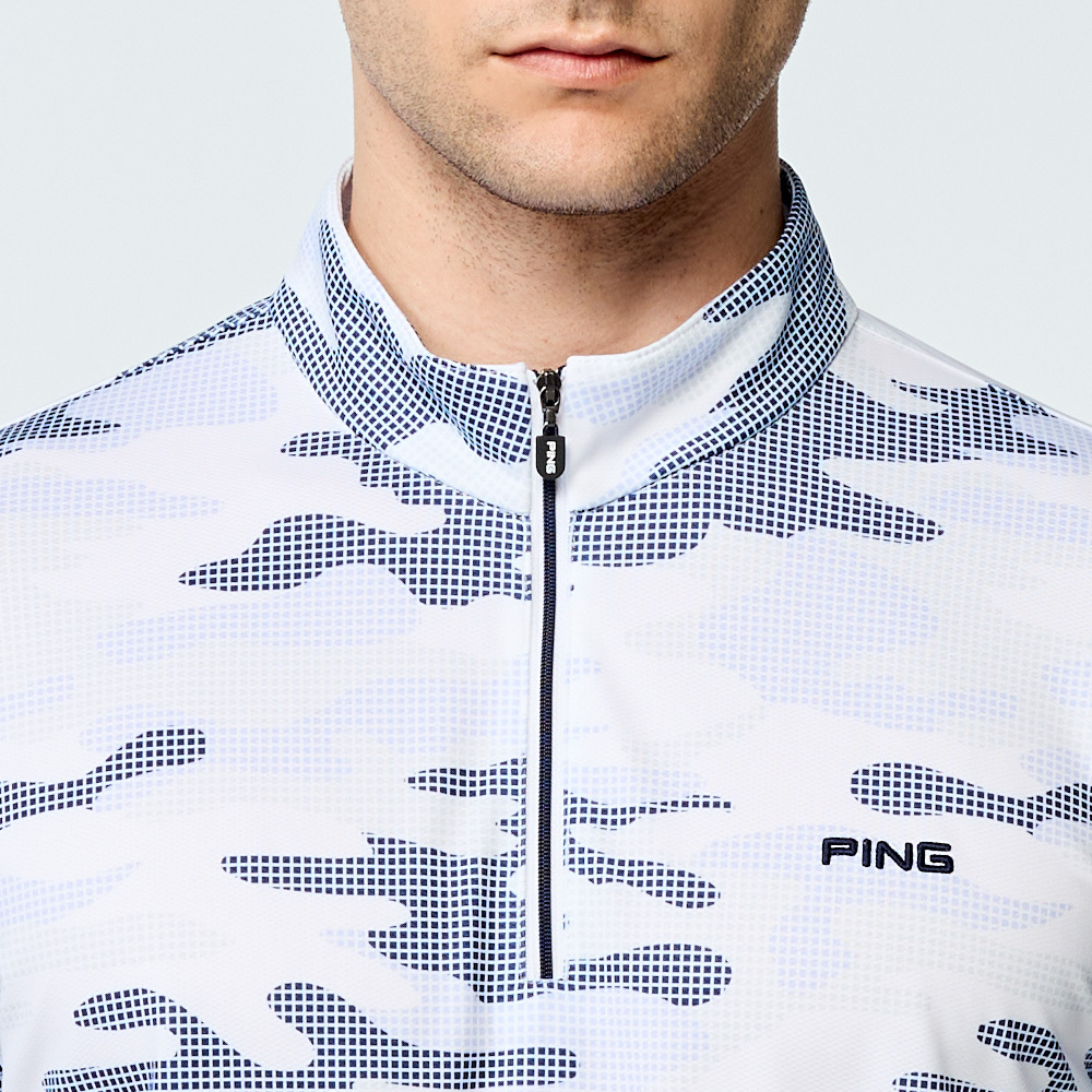 【PING】男款迷彩抗UV高爾夫短袖立領上衣-藍 / PA25128-55