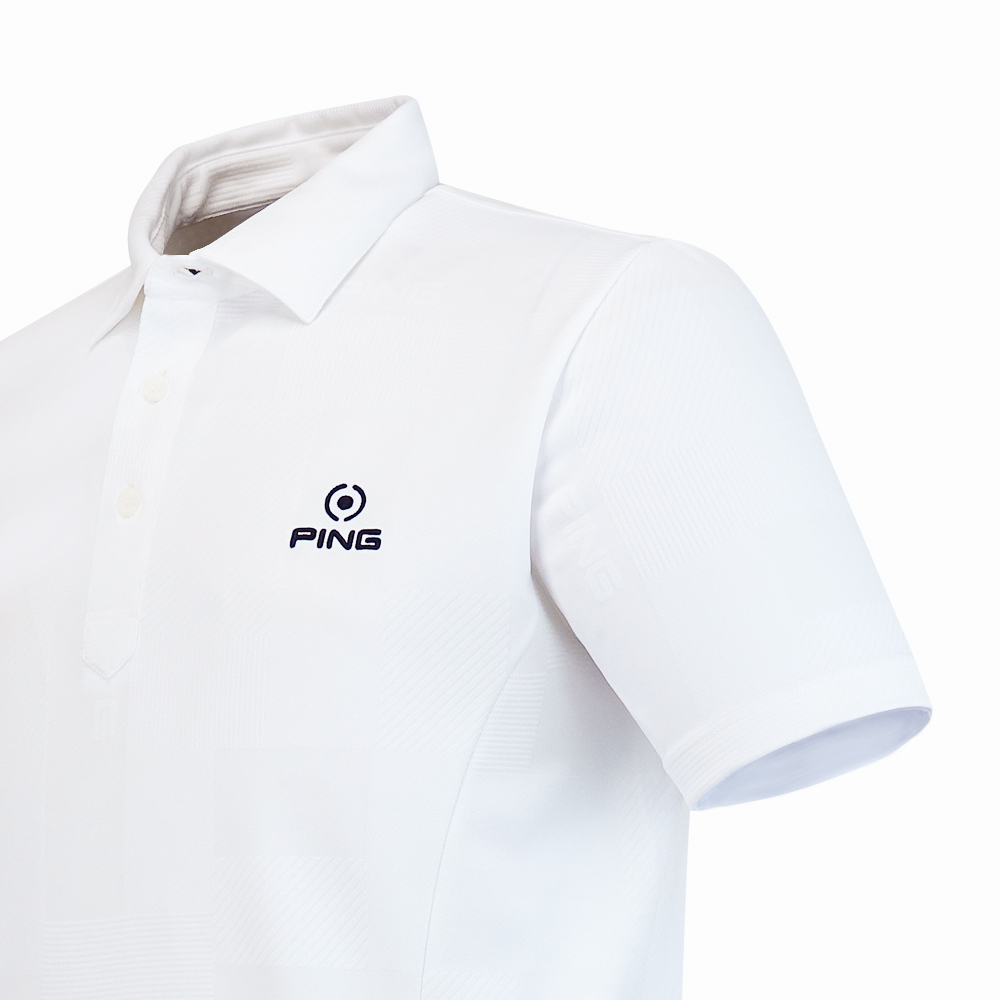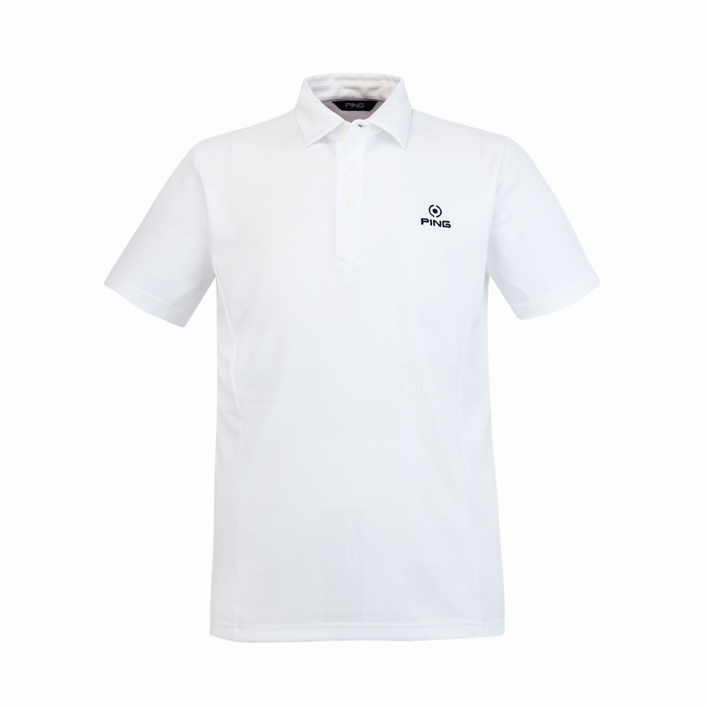 【PING】男款緹花吸濕排汗短袖POLO衫-白 / PA25131-87