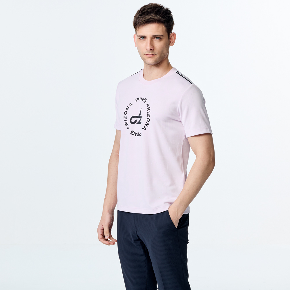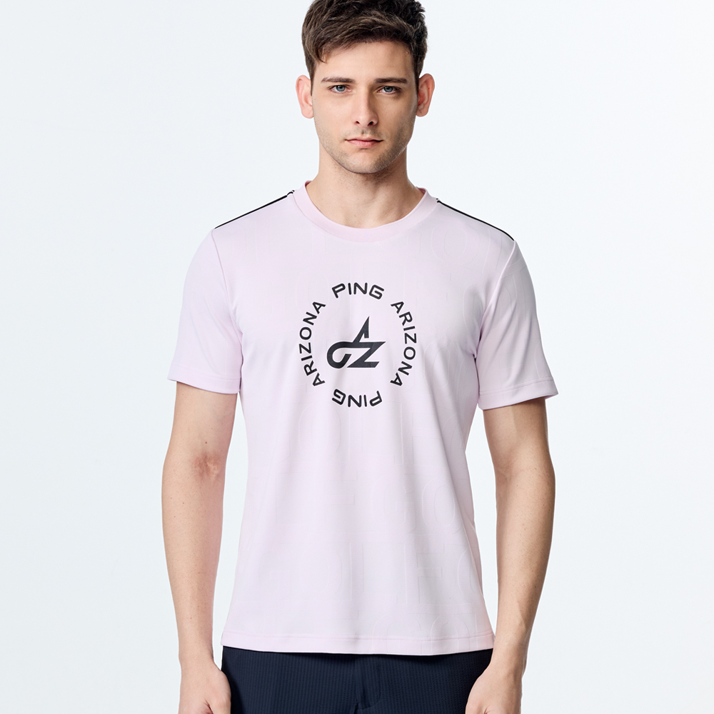 【PING】男款GOLF緹花涼感短袖圓領T恤-粉紅 / PA25133-13