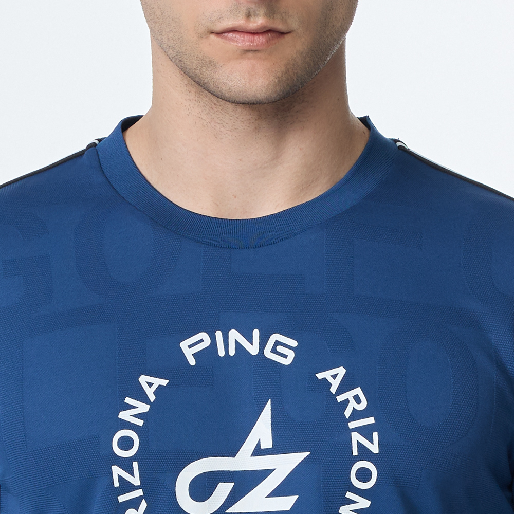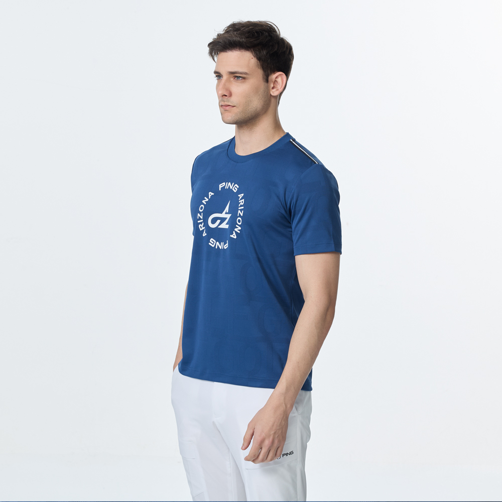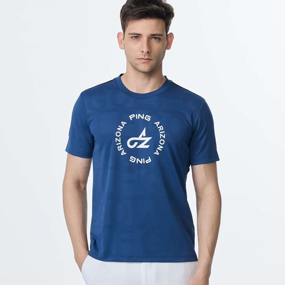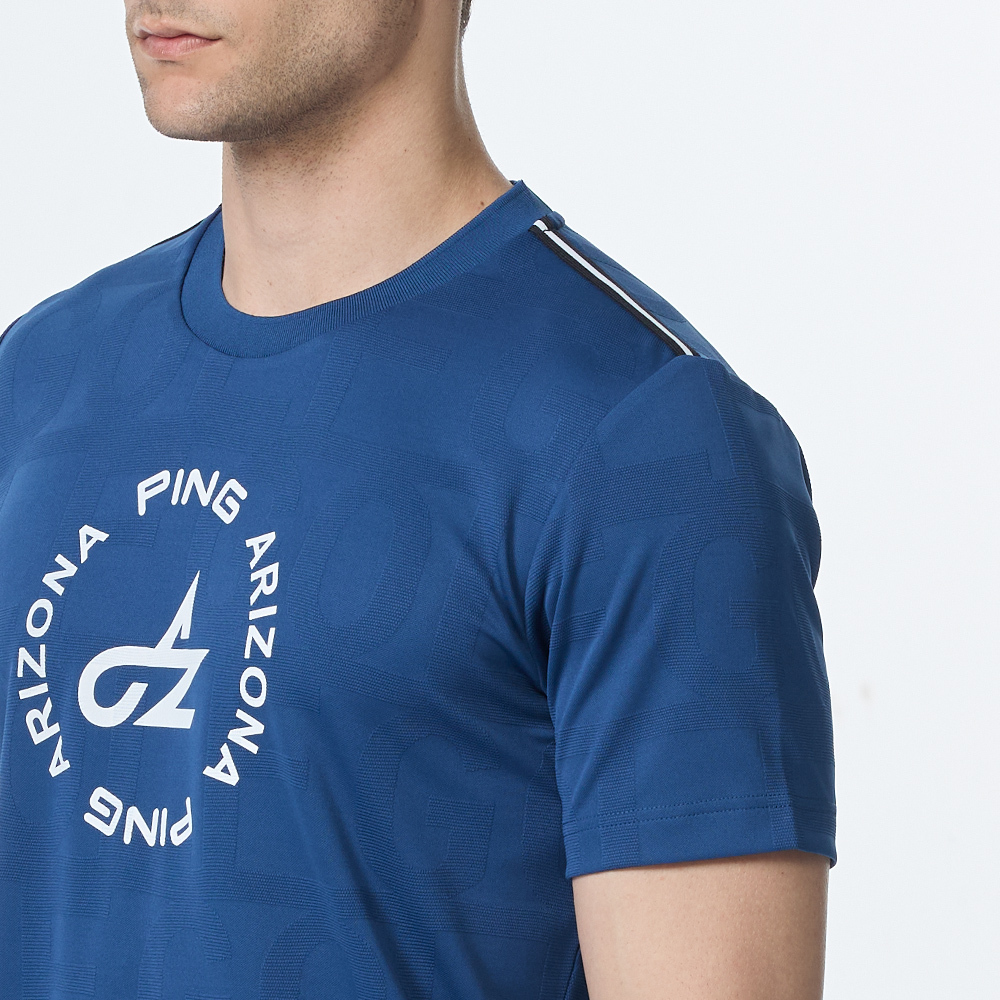 【PING】男款GOLF緹花涼感短袖圓領T恤-藍 / PA25133-56