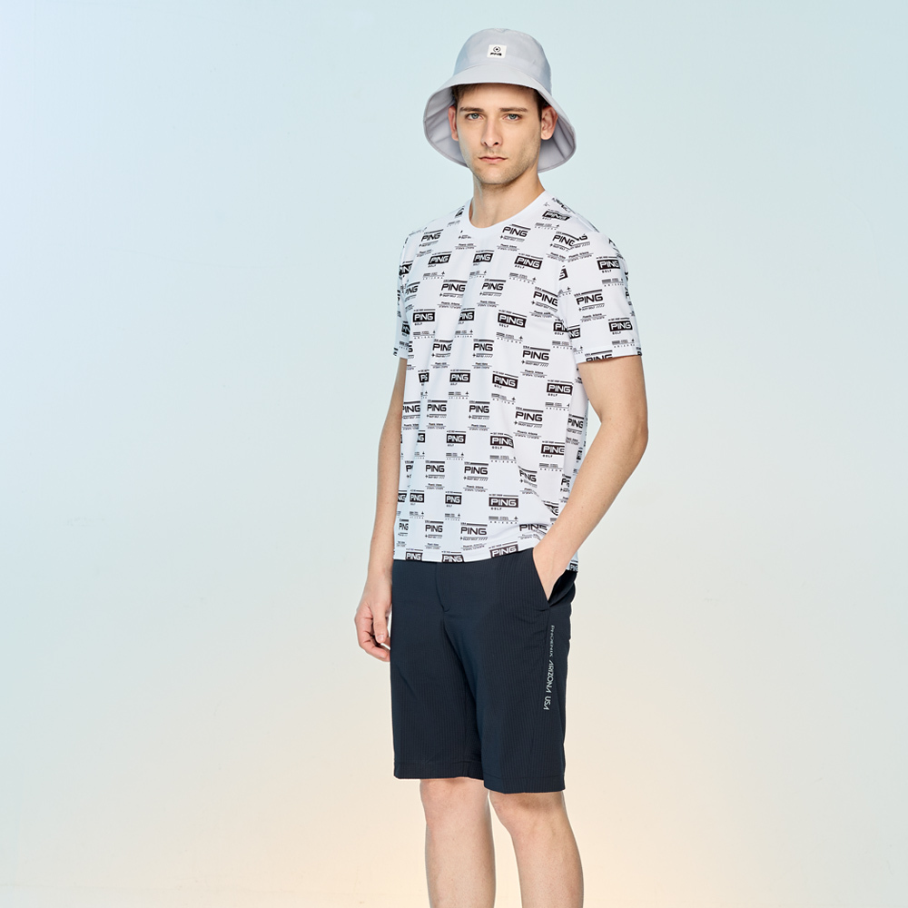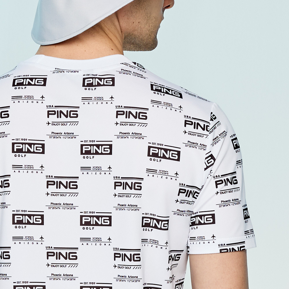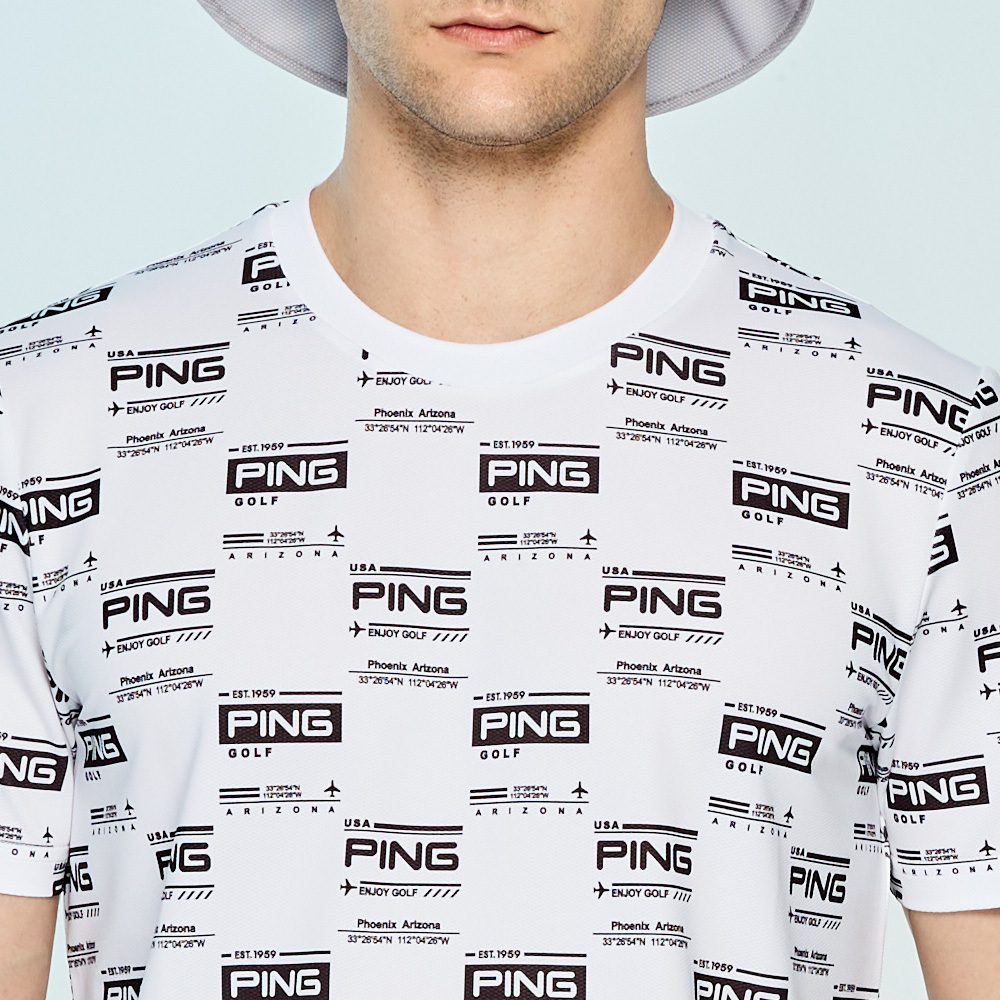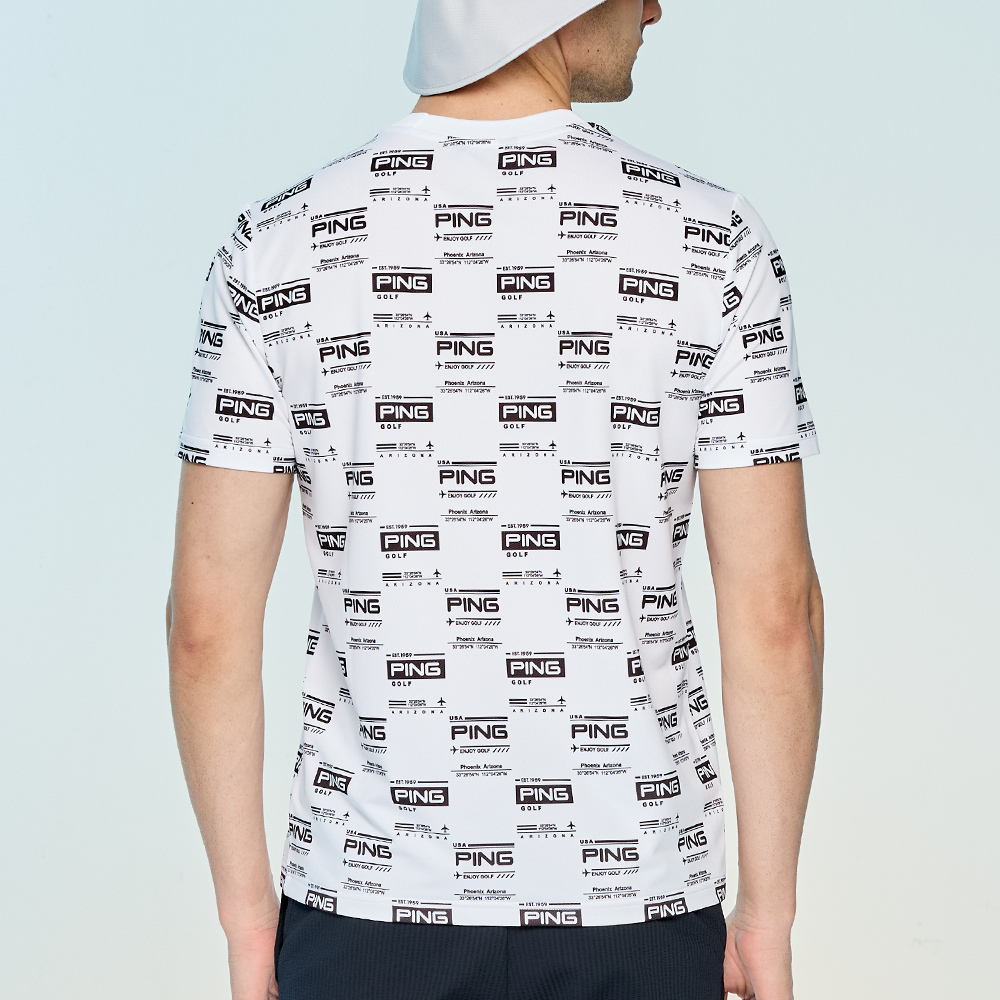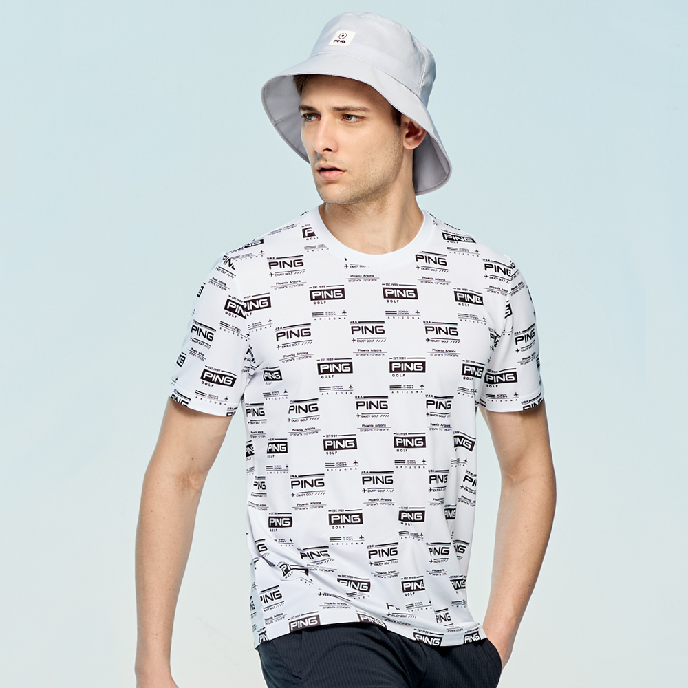 【PING】男款LOGO吸濕排汗抗UV短袖圓領T恤-白 / PA25134-87