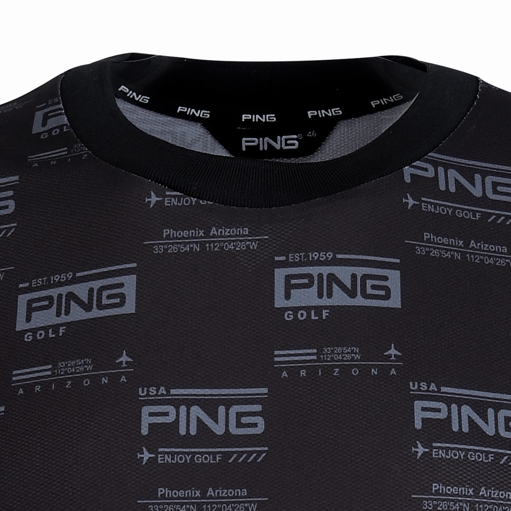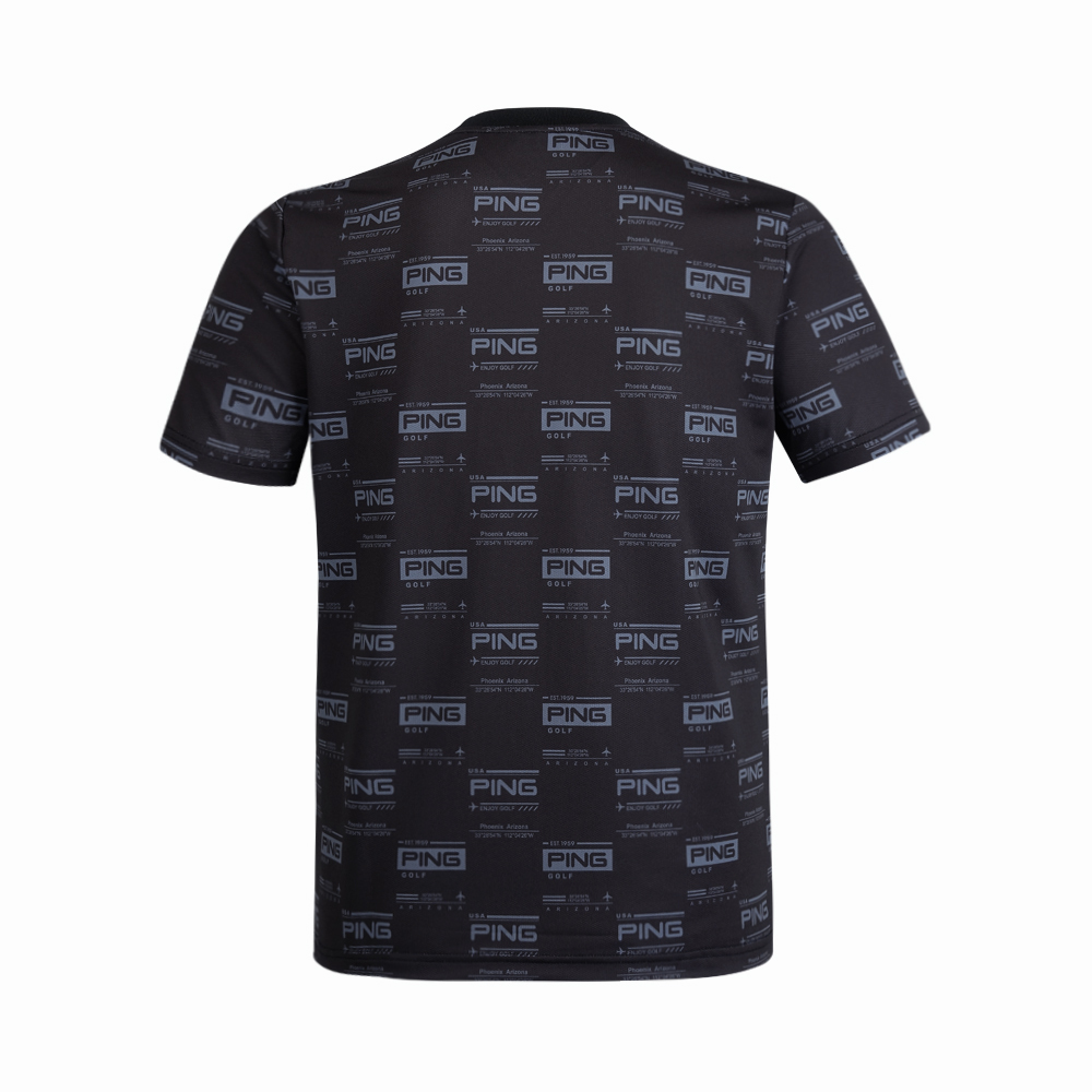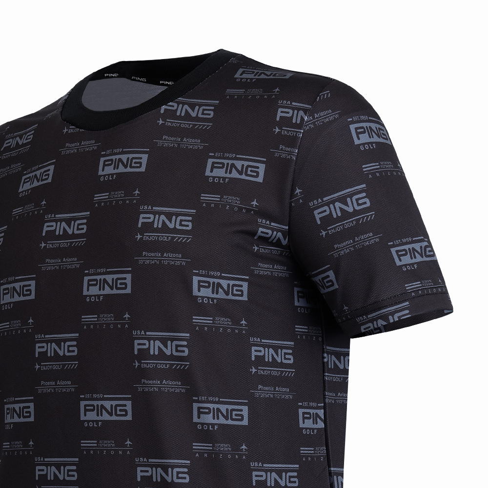 【PING】男款LOGO吸濕排汗抗UV短袖圓領T恤-黑 / PA25134-88