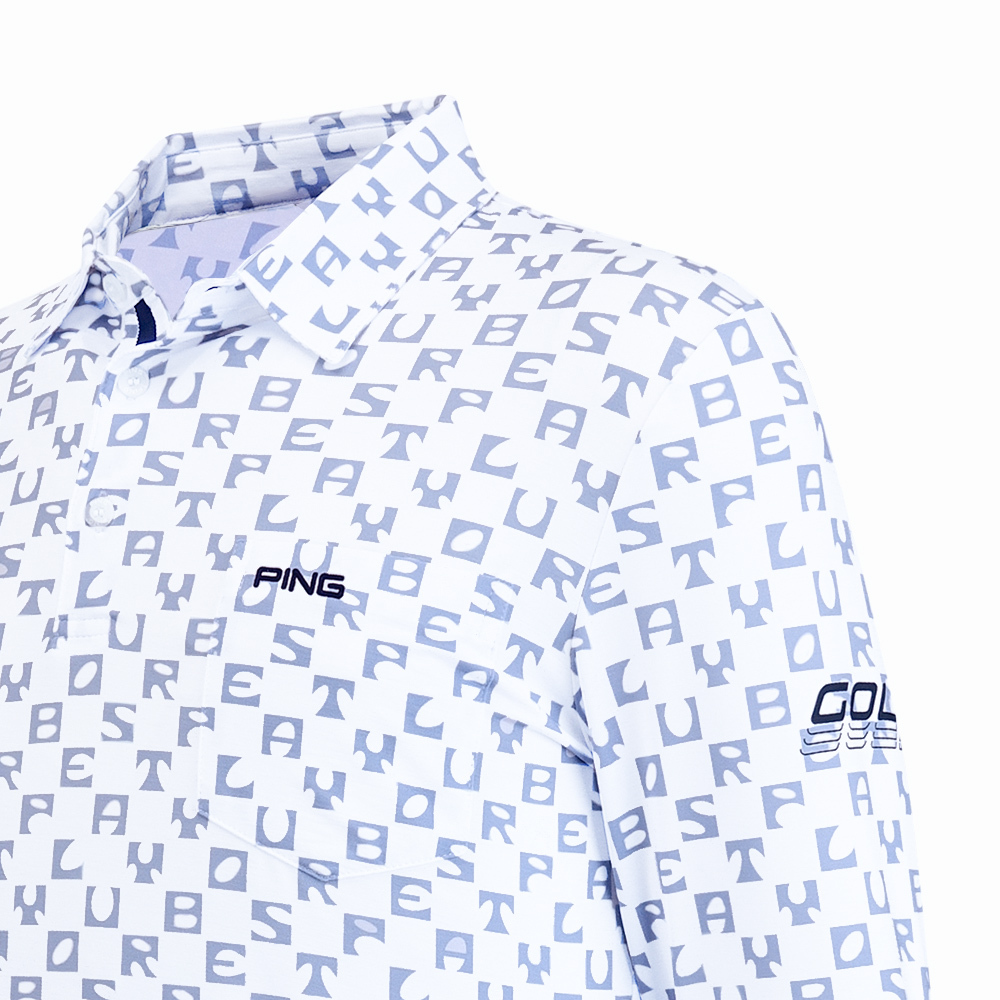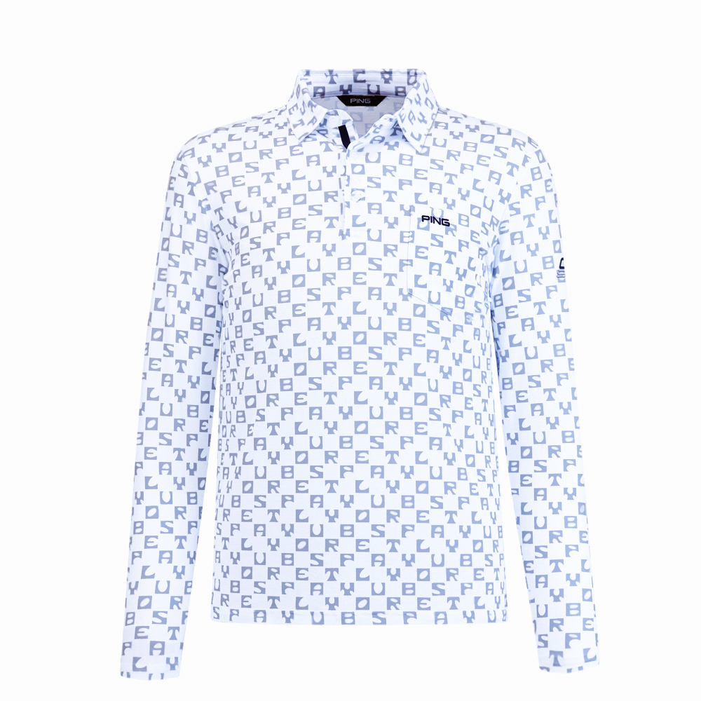 【PING】男款方塊字抗UV高爾夫口袋薄長袖POLO衫-藍 / PA25135-53
