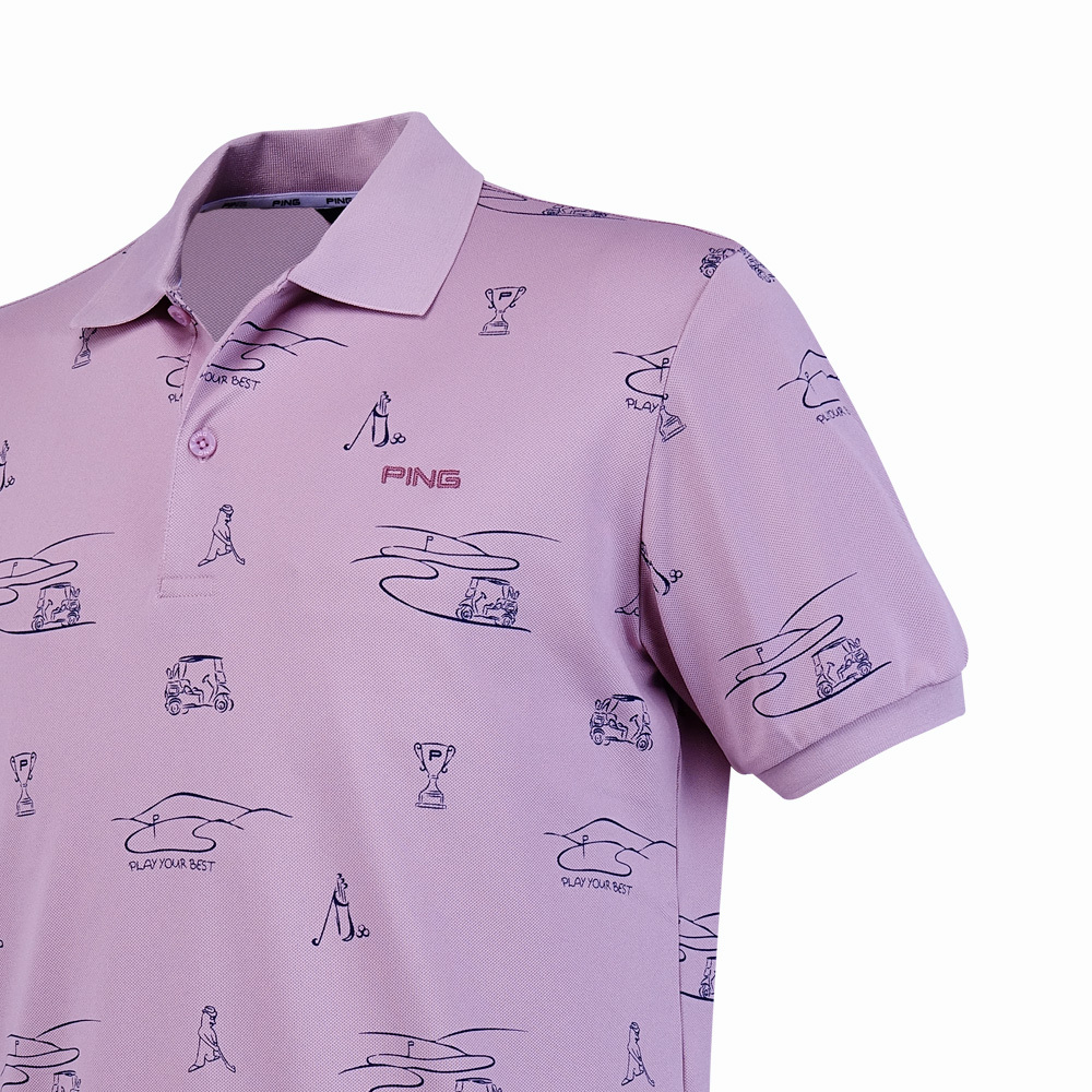 【PING】男款吸濕排汗抗UV高爾夫短袖POLO衫-粉 / PA25191-15