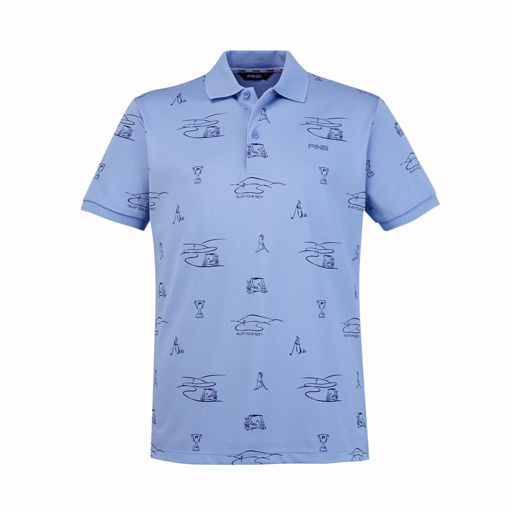 【PING】男款吸濕排汗抗UV高爾夫短袖POLO衫-藍 / PA25191-55