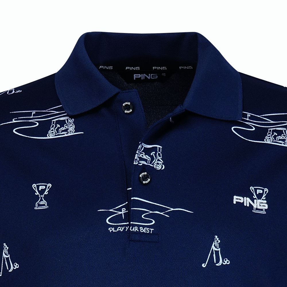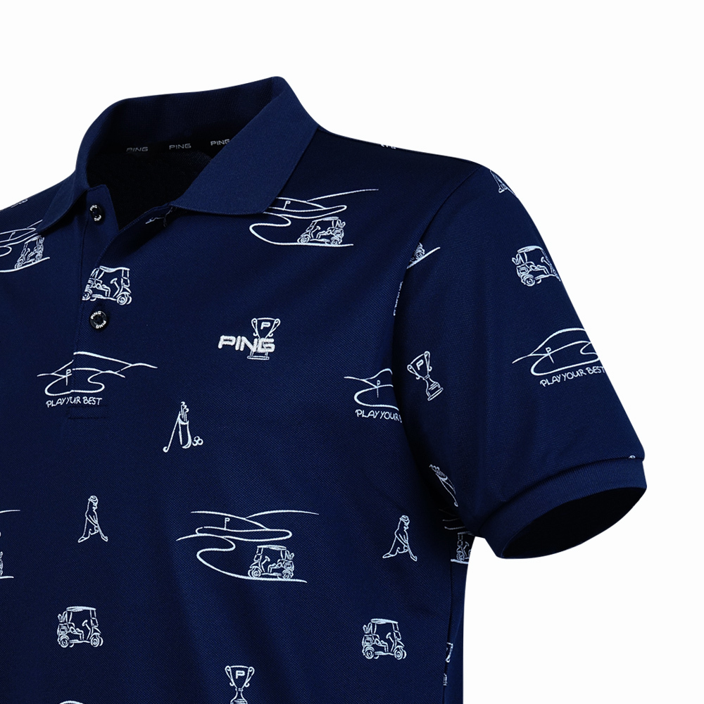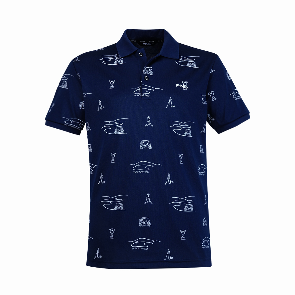 【PING】男款吸濕排汗抗UV高爾夫短袖POLO衫-深藍 / PA25191-58