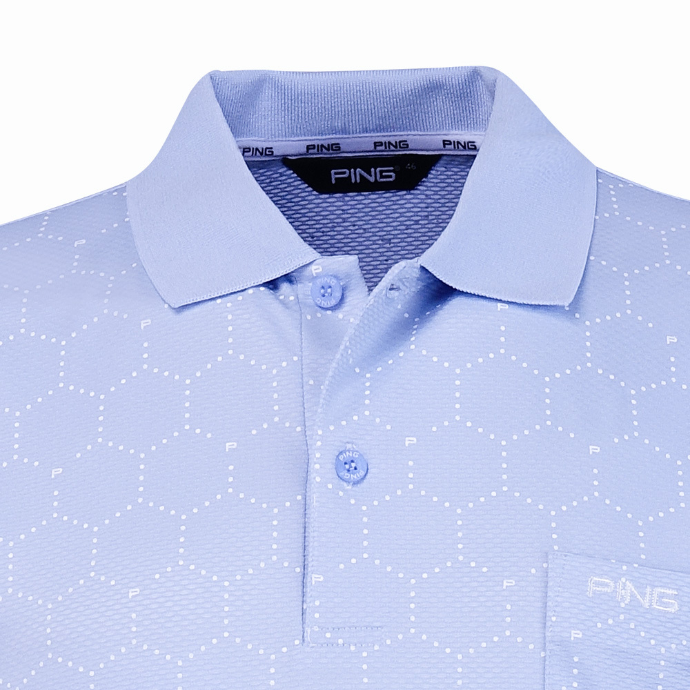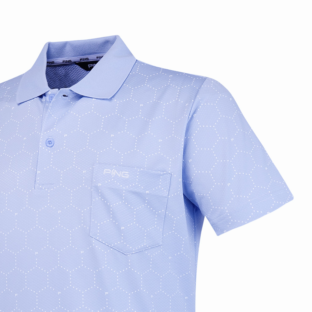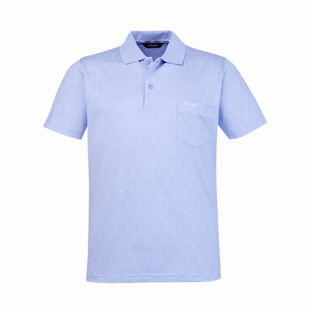【PING】男款點點吸濕排汗口袋短袖POLO衫-藍 / PA25193-53