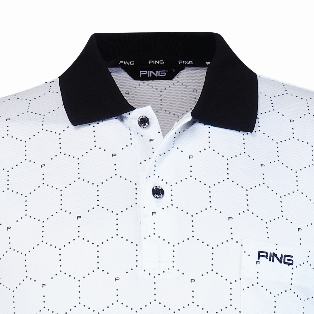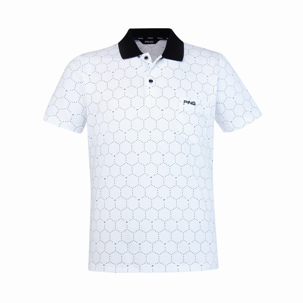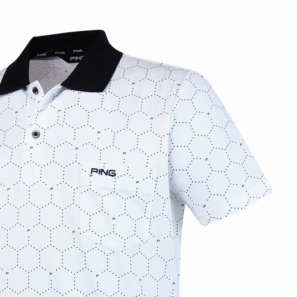 【PING】男款點點吸濕排汗口袋短袖POLO衫-白 / PA25193-87