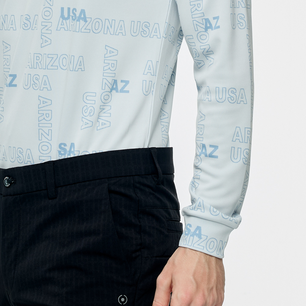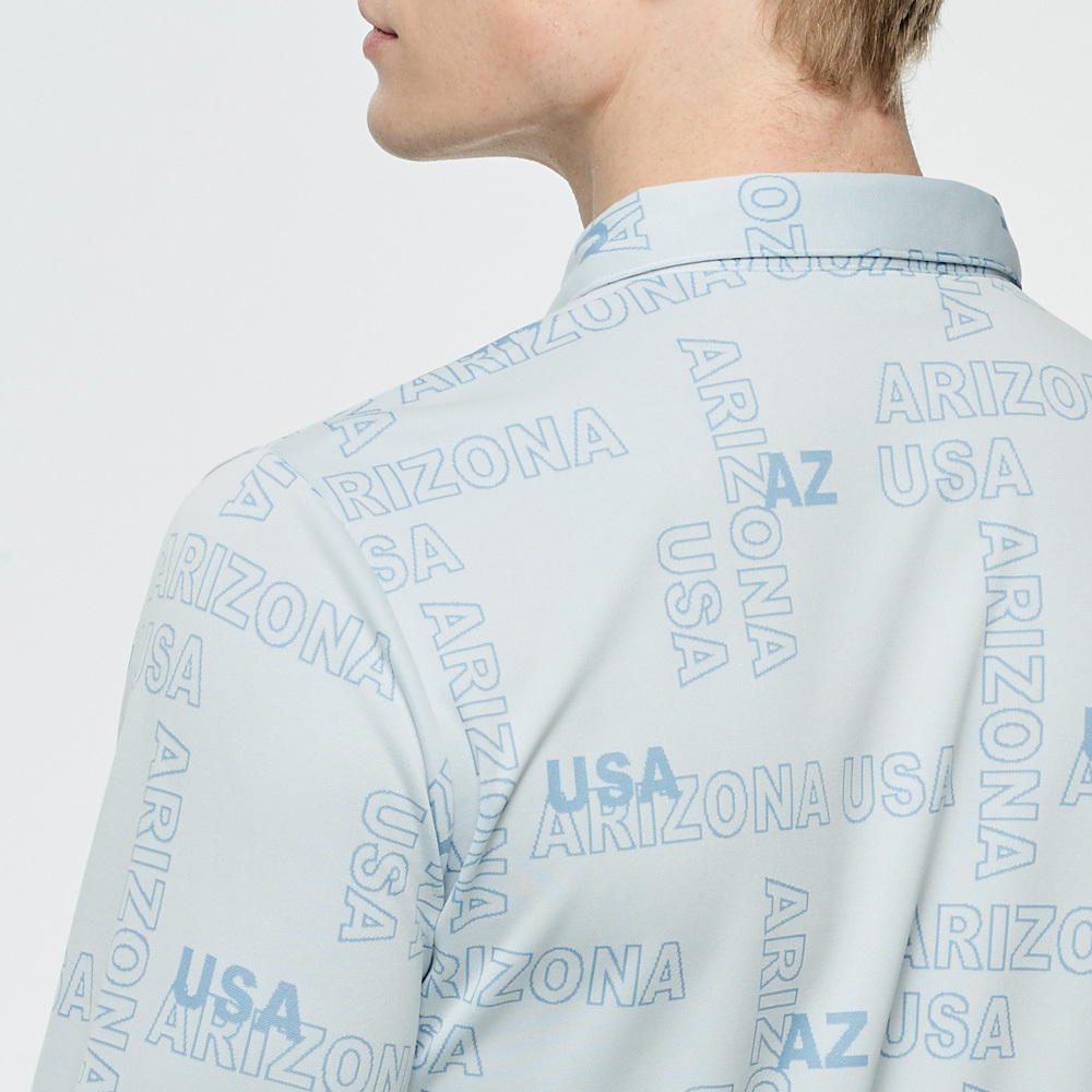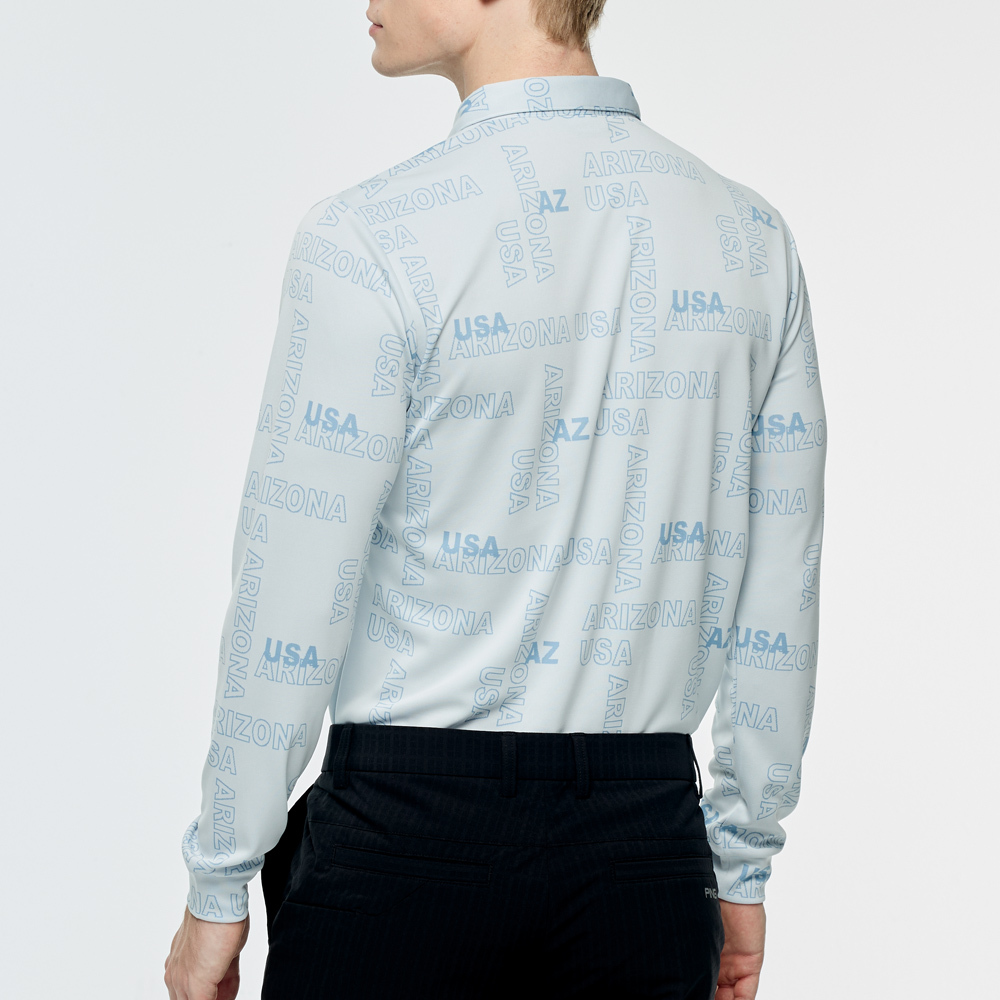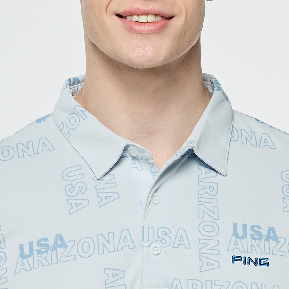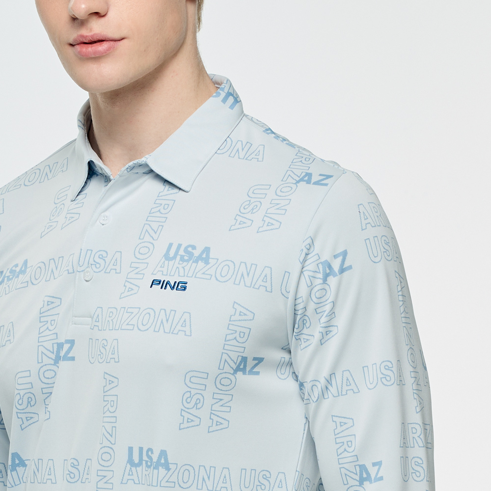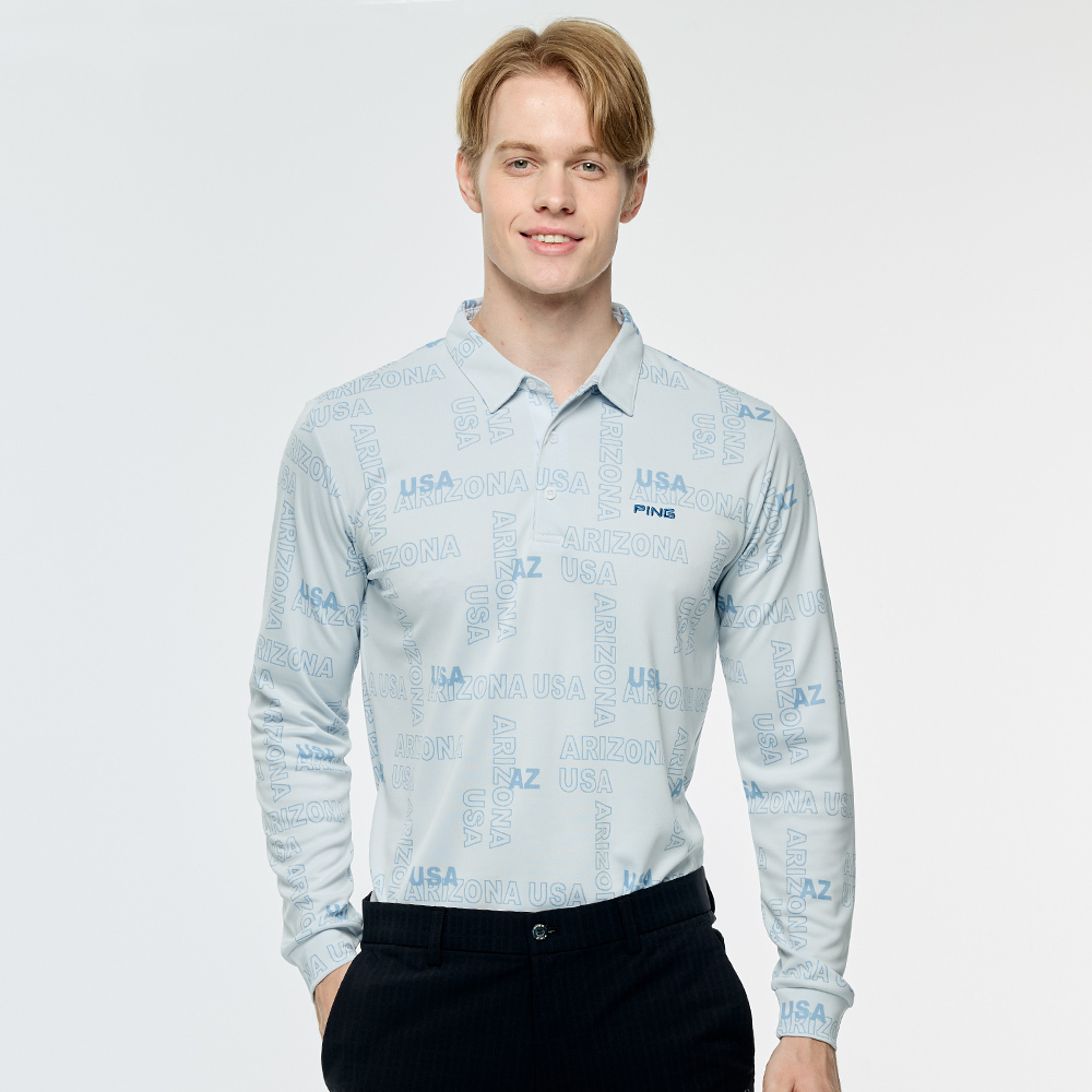 【PING】男款緹花文字高爾夫長袖POLO衫-藍 / PA25203-53