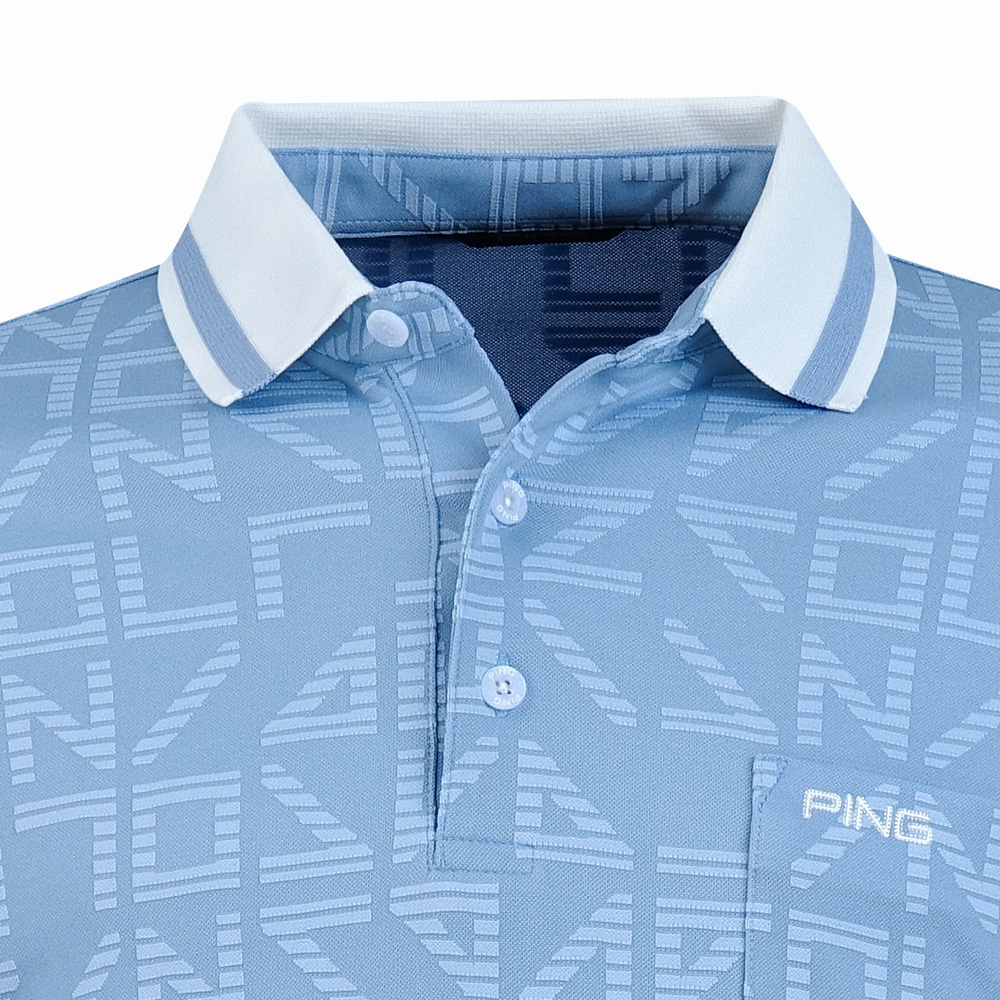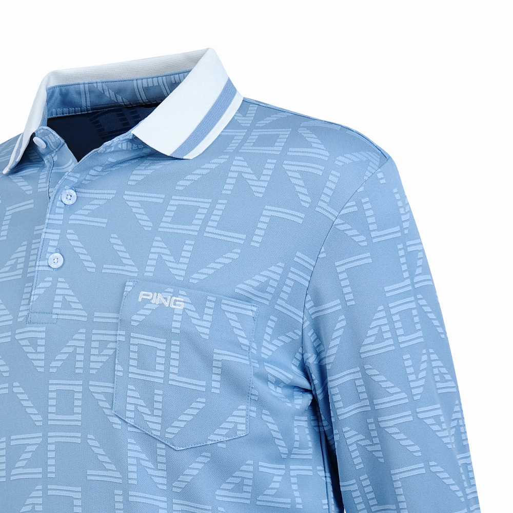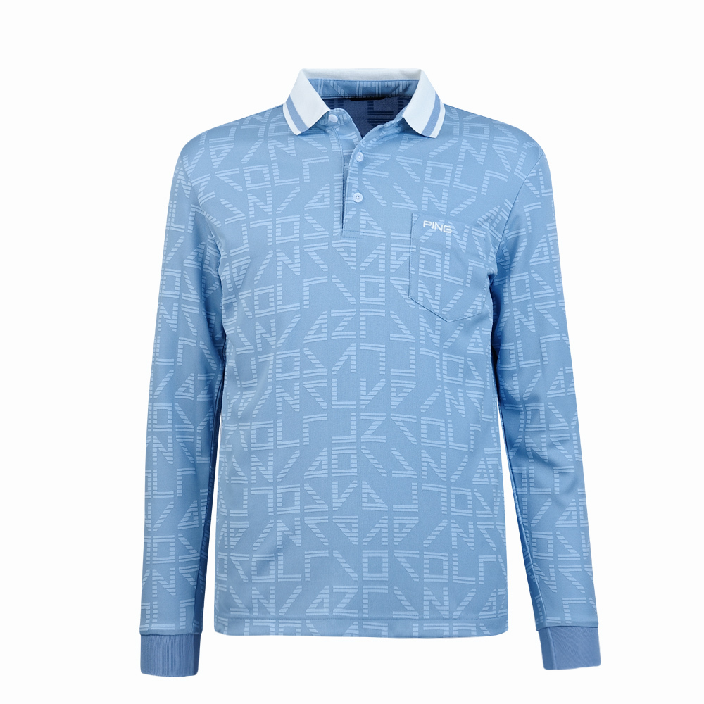 【PING】男款幾何字高爾夫口袋長袖POLO衫-藍 / PA25206-55