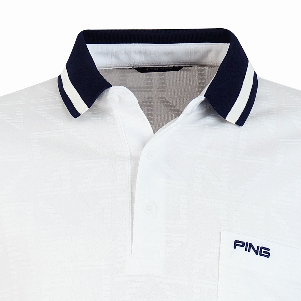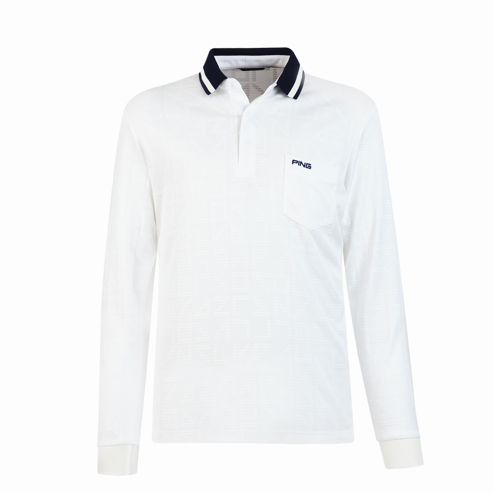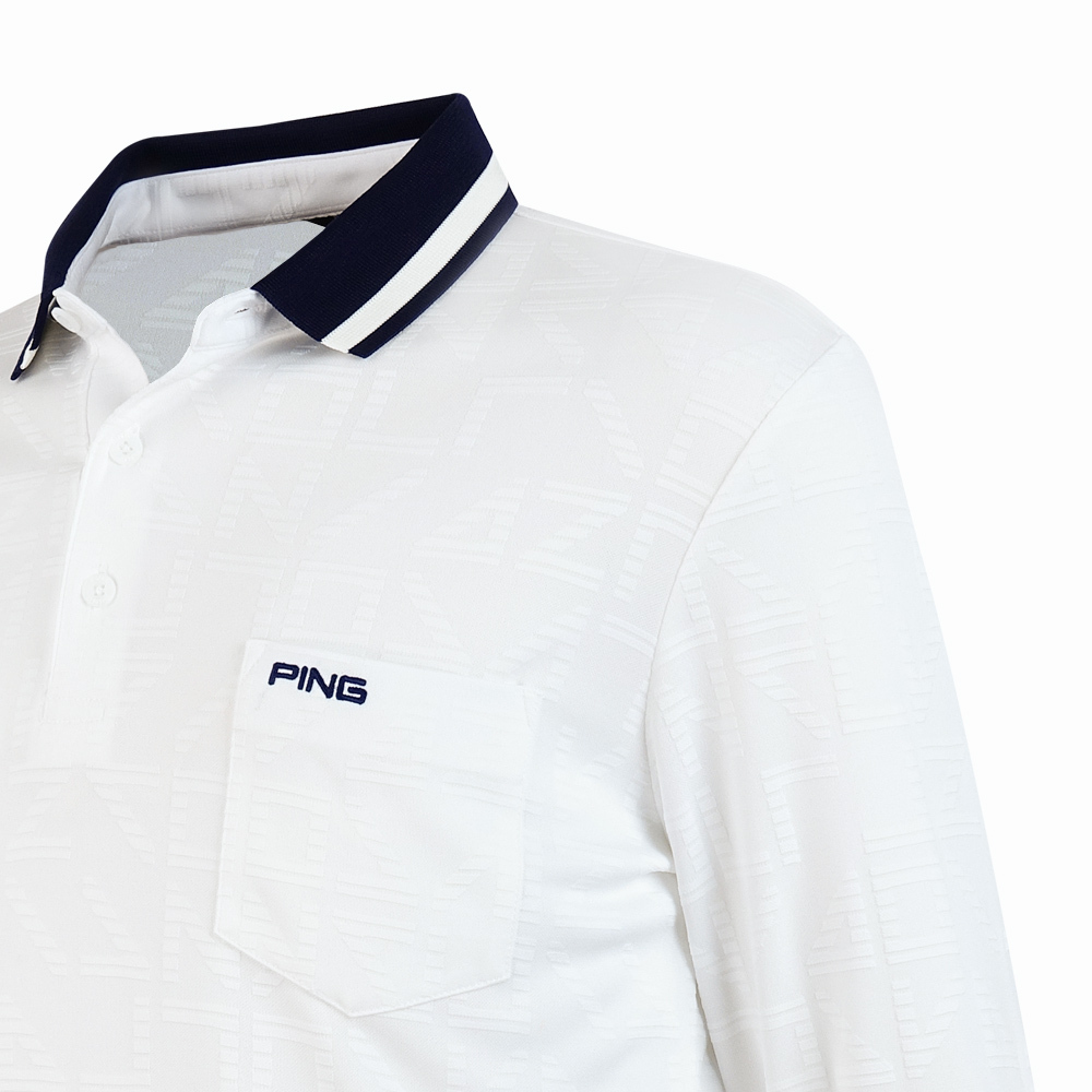 【PING】男款幾何字高爾夫口袋長袖POLO衫-白 / PA25206-87