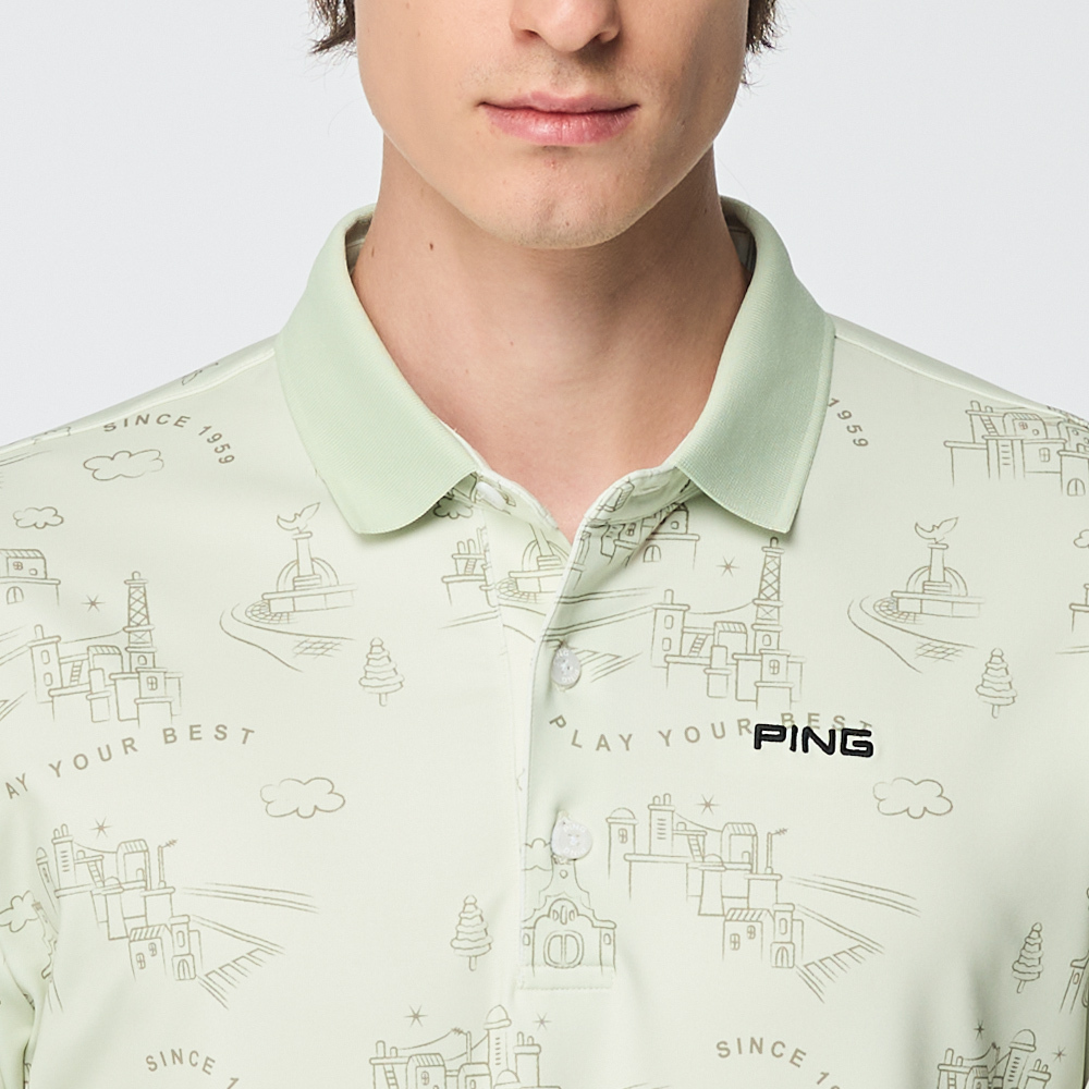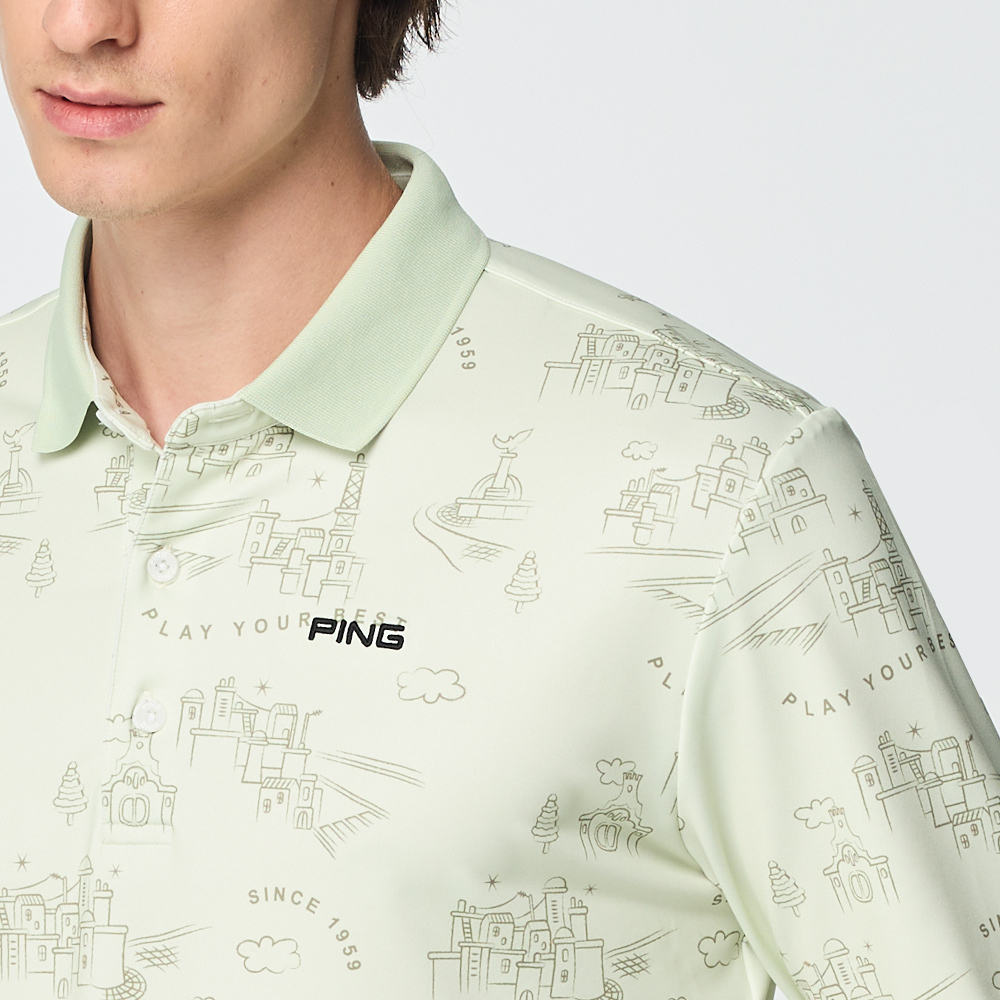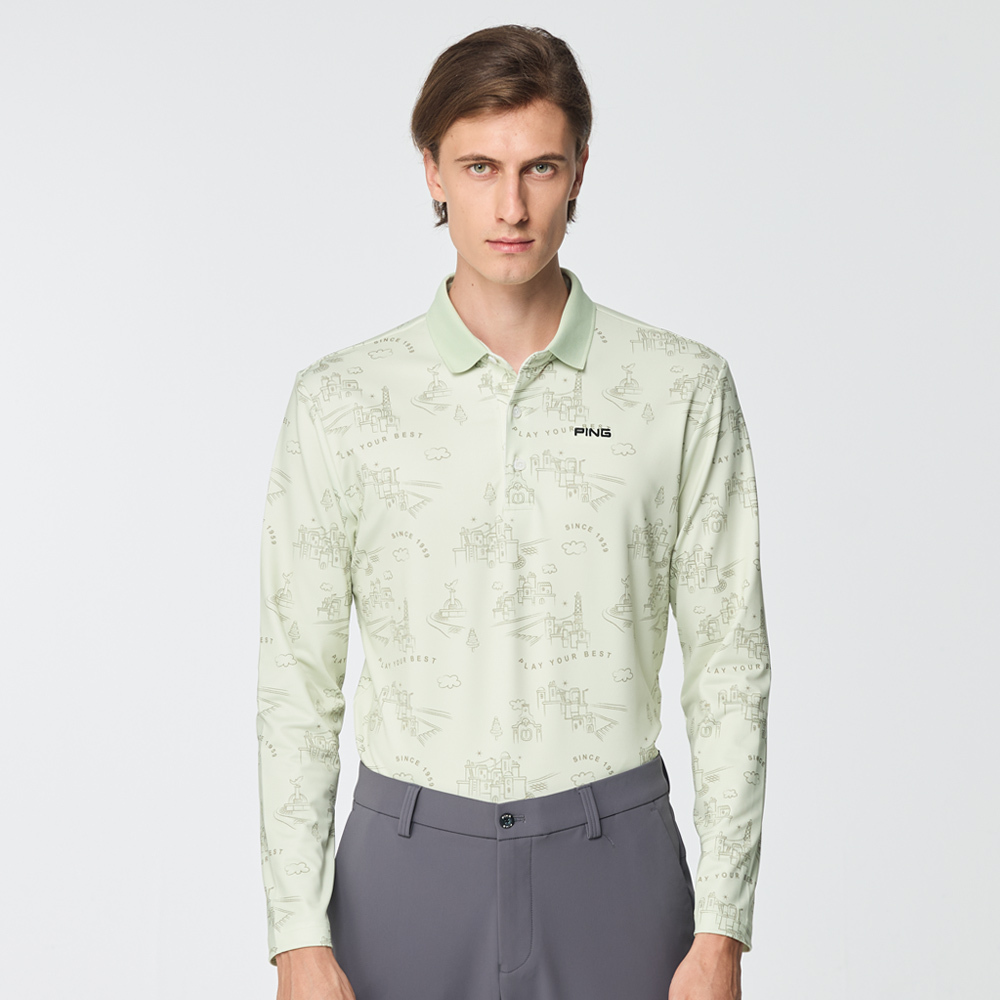 【PING】男款手繪城鎮高爾夫長袖POLO衫-黃綠 / PA25207-33
