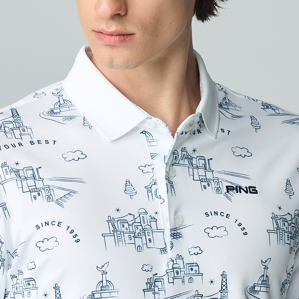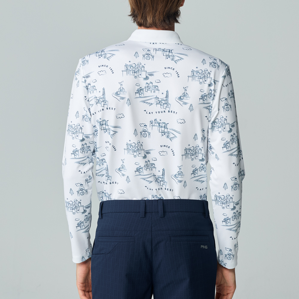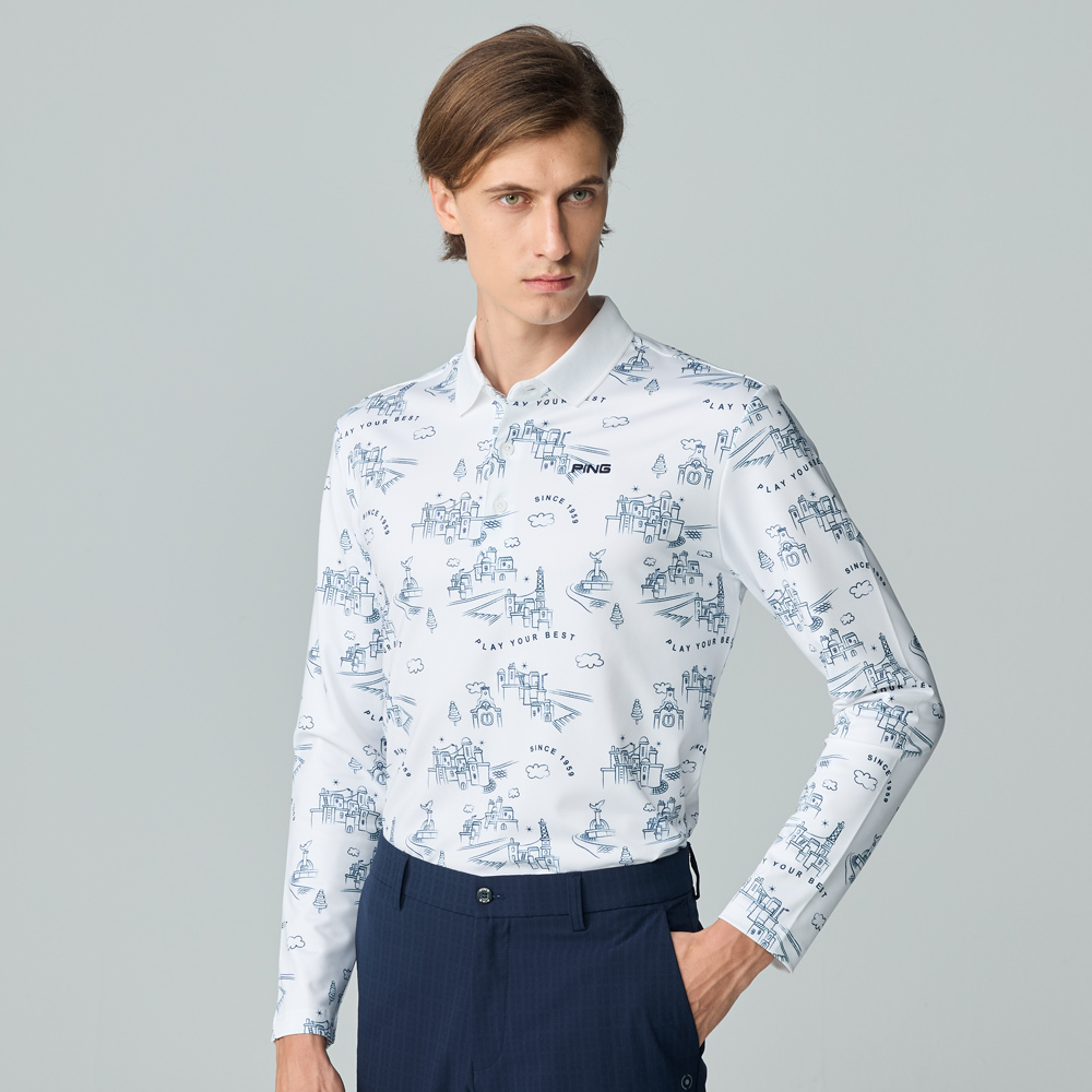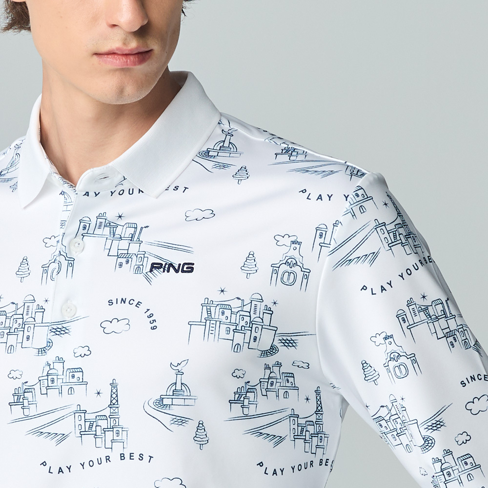 【PING】男款手繪城鎮高爾夫長袖POLO衫-白 / PA25207-73