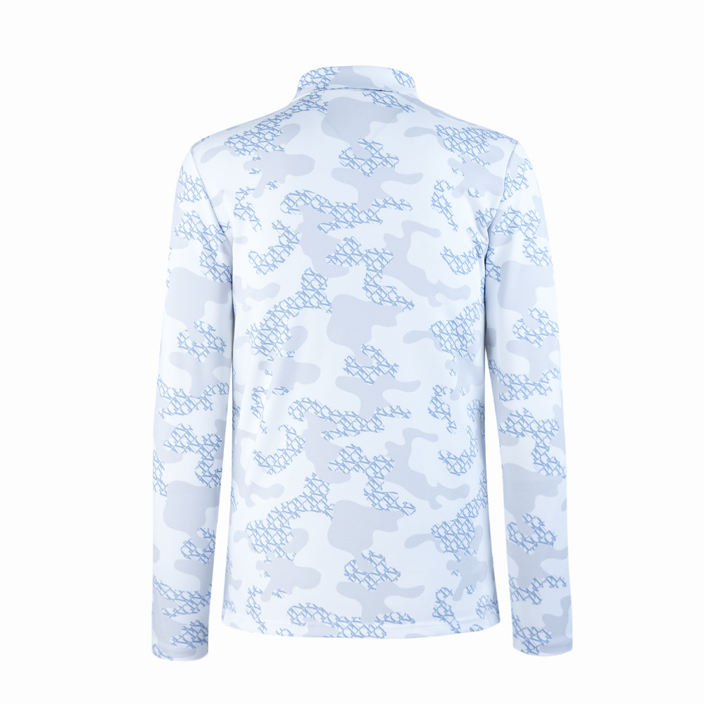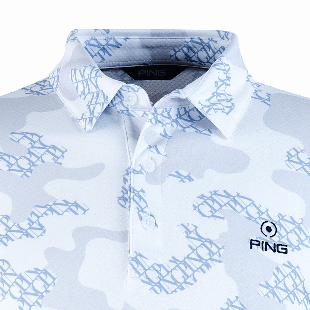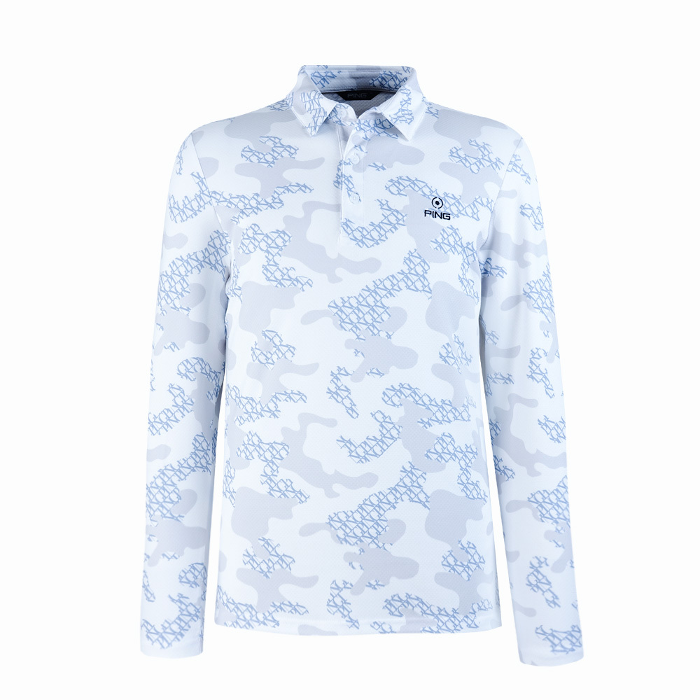 【PING】男款迷彩吸濕排汗長袖POLO衫-白 / PA25208-87