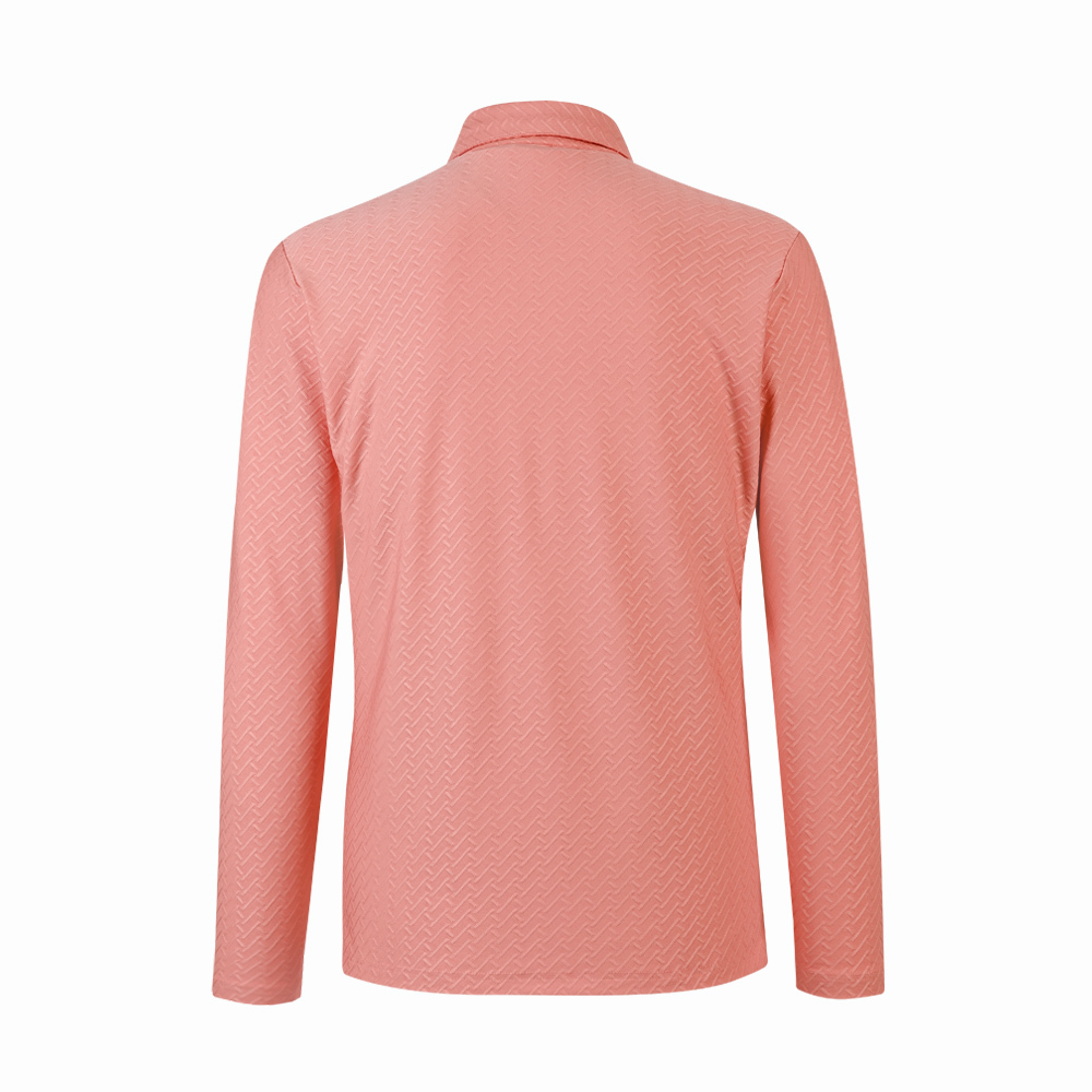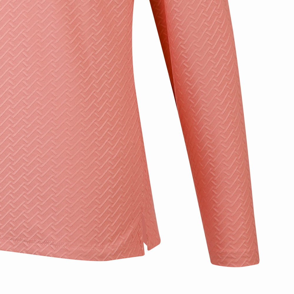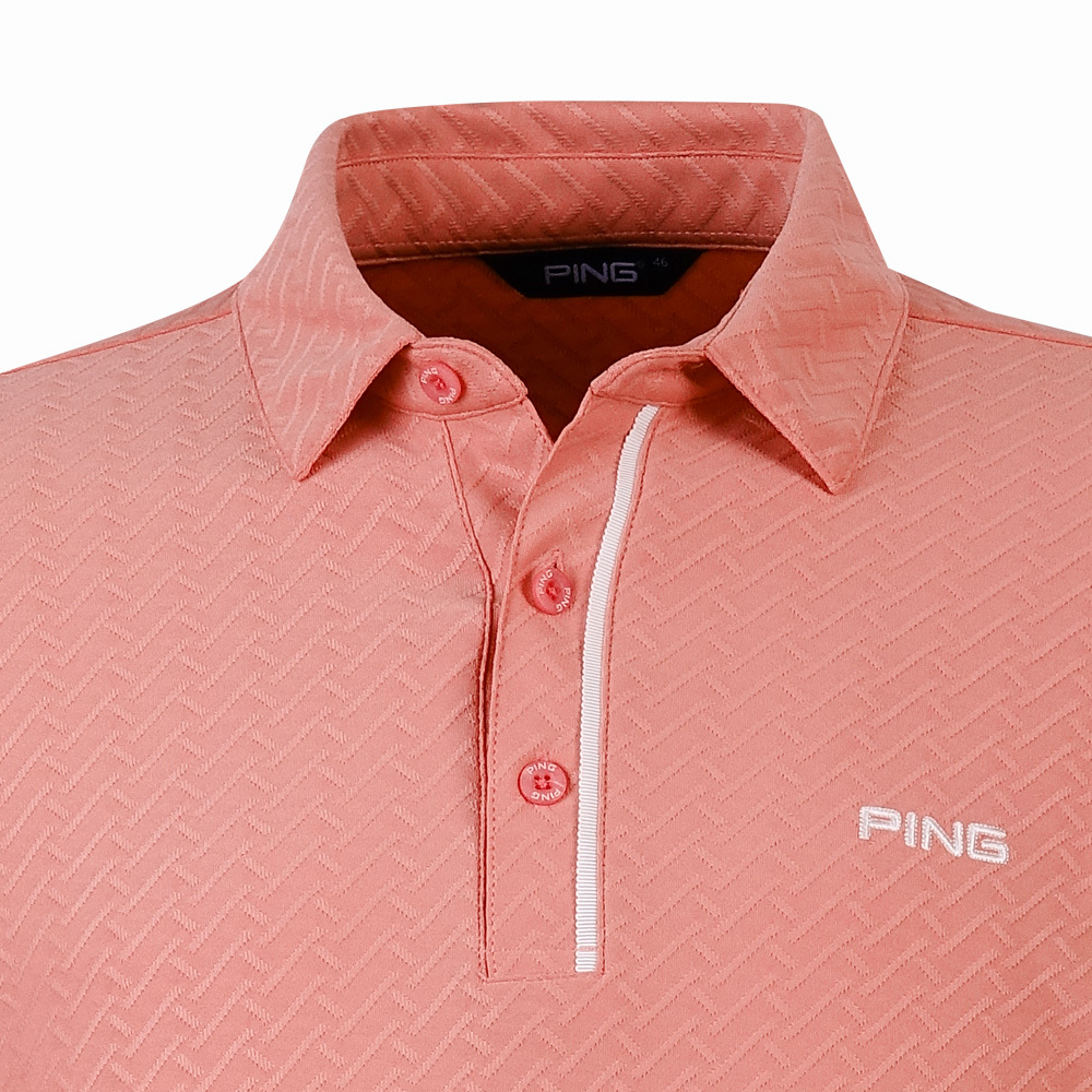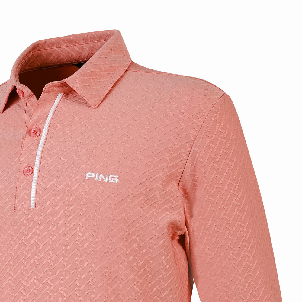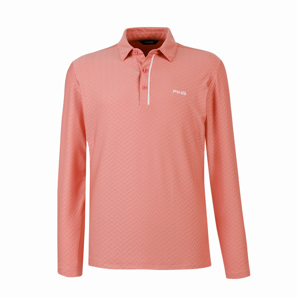 【PING】男款人字紋吸濕排汗長袖POLO衫-粉橘 / PA25212-23
