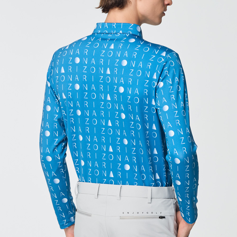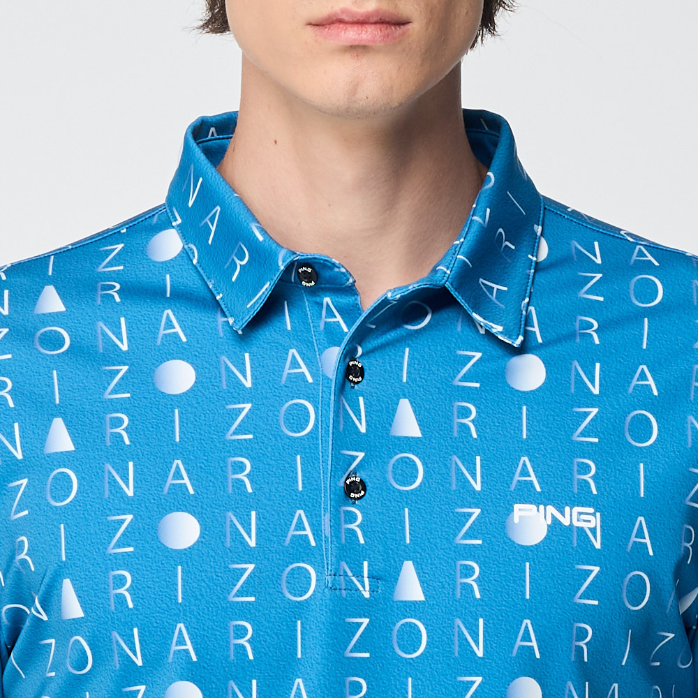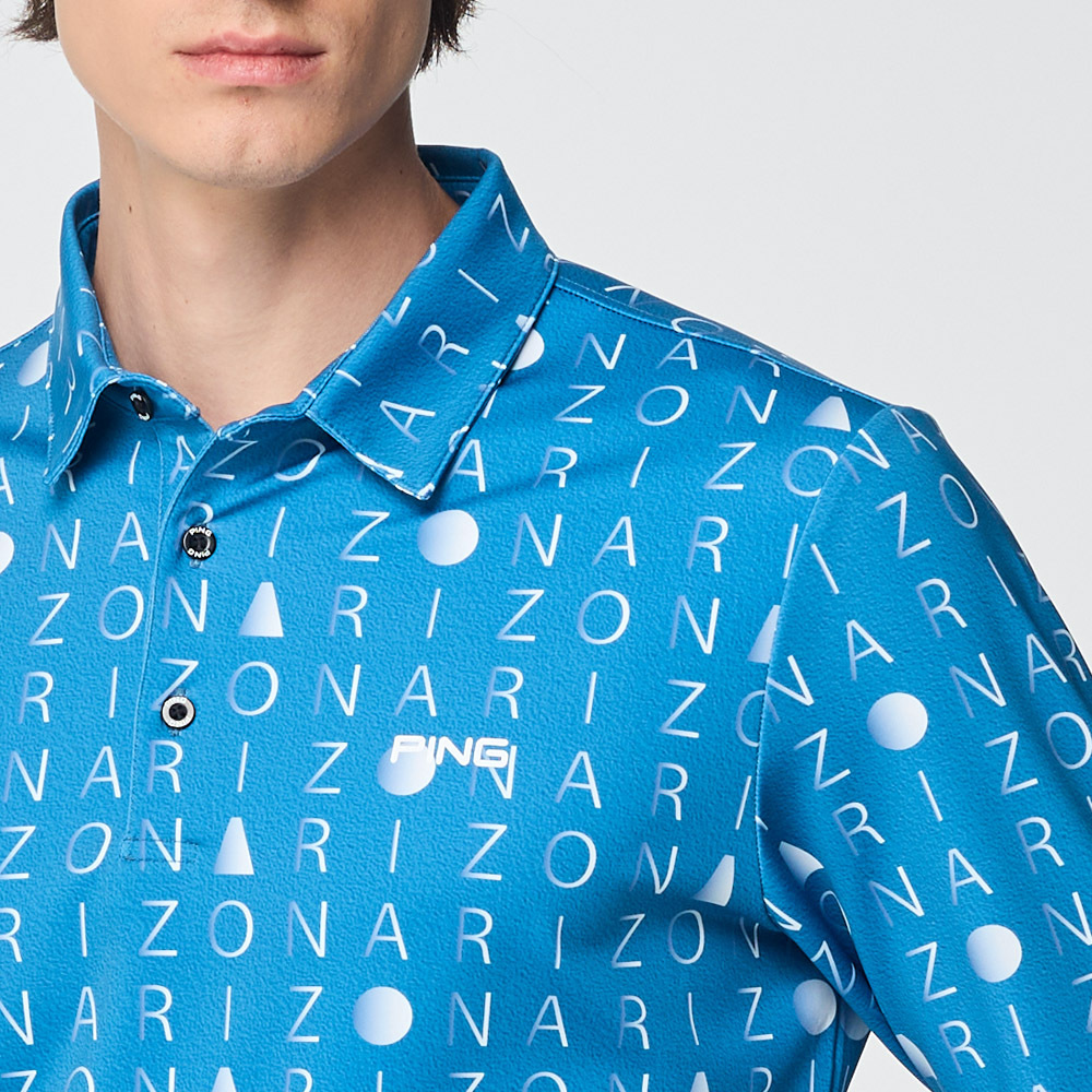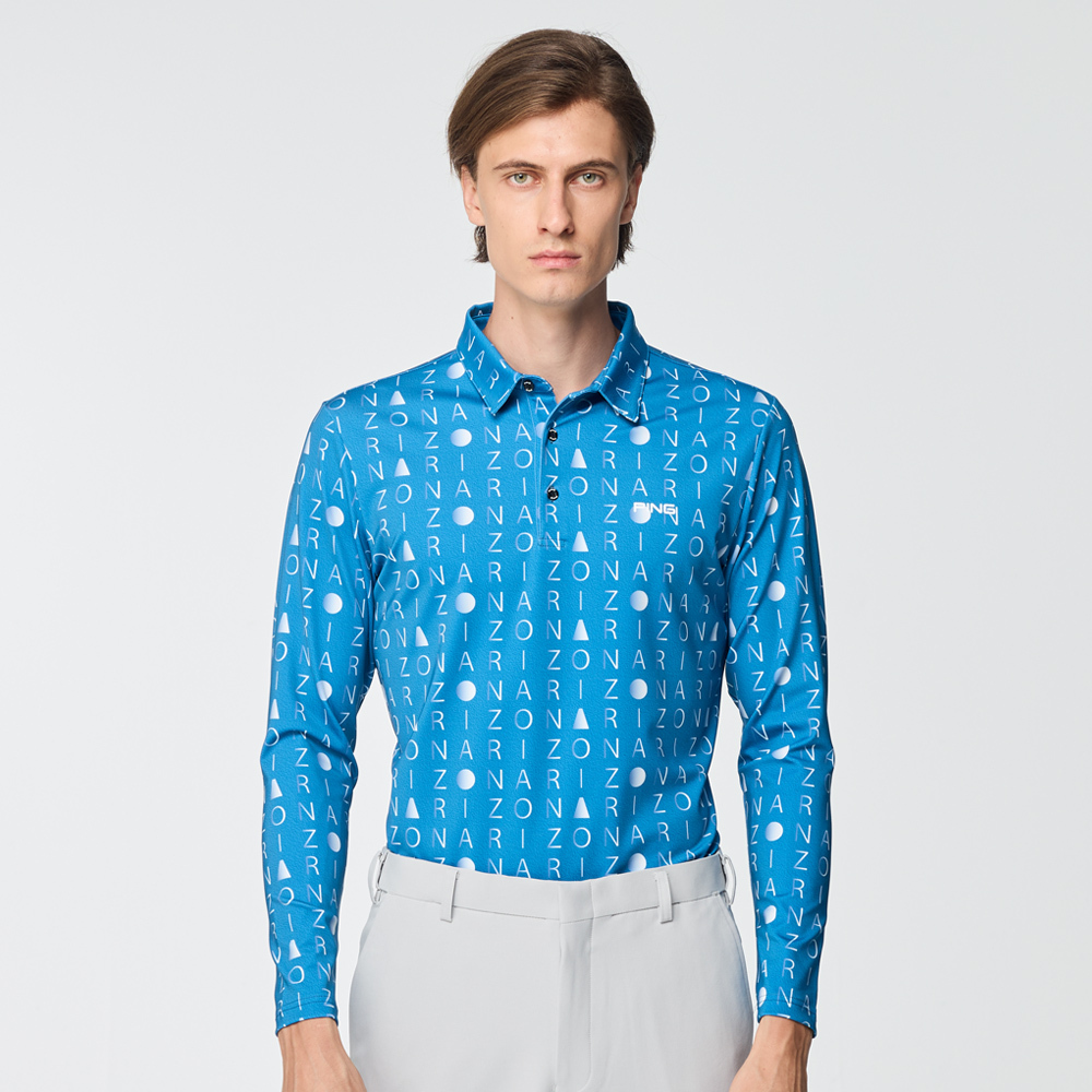 【PING】男款字體漸層高爾夫薄長袖POLO衫-藍 / PA25213-56