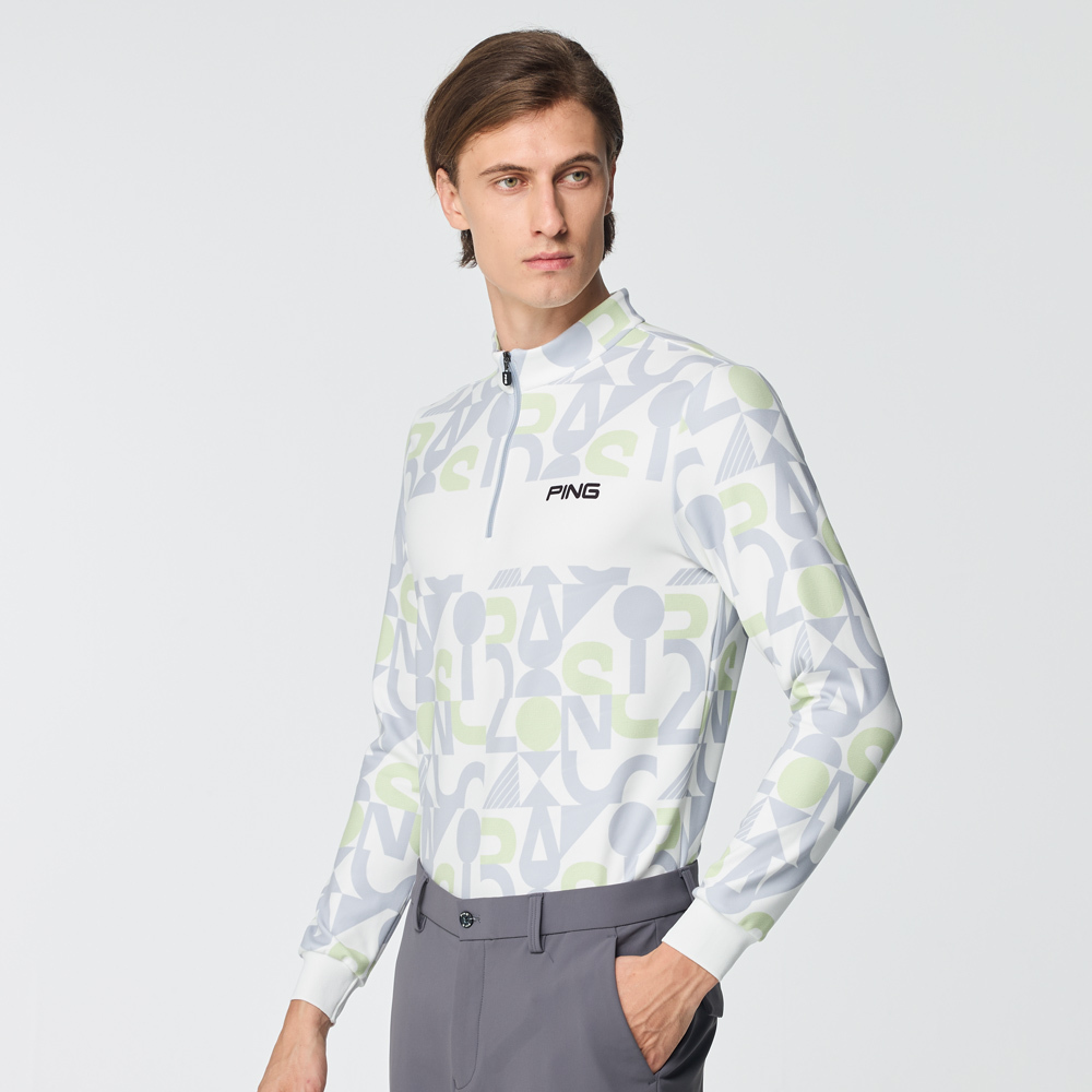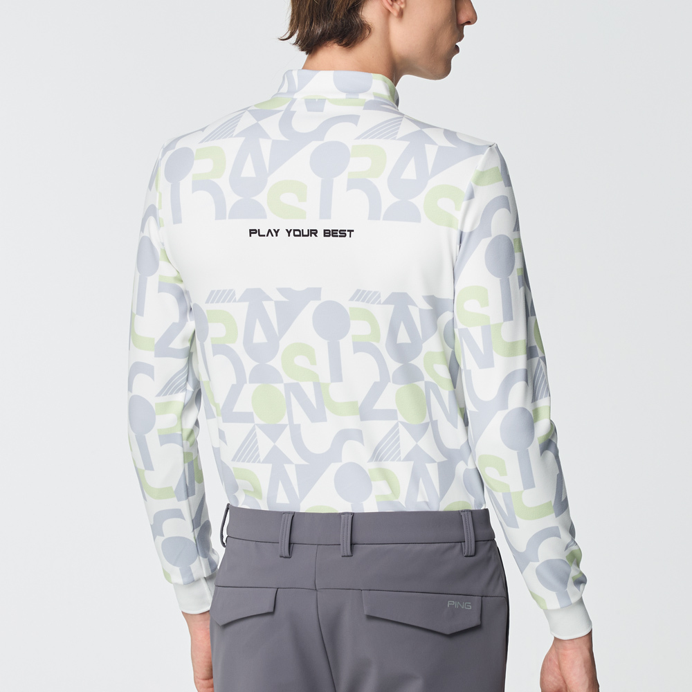 【PING】男款幾何字蓄熱保暖長袖立領上衣-灰 / PA25225-83