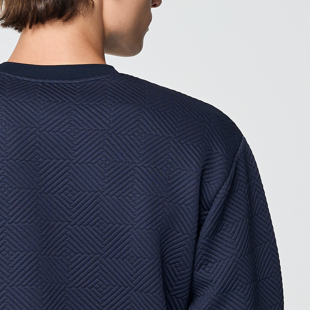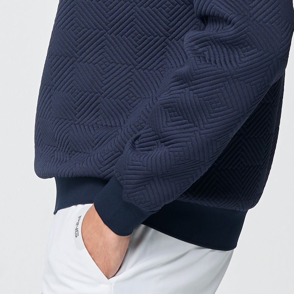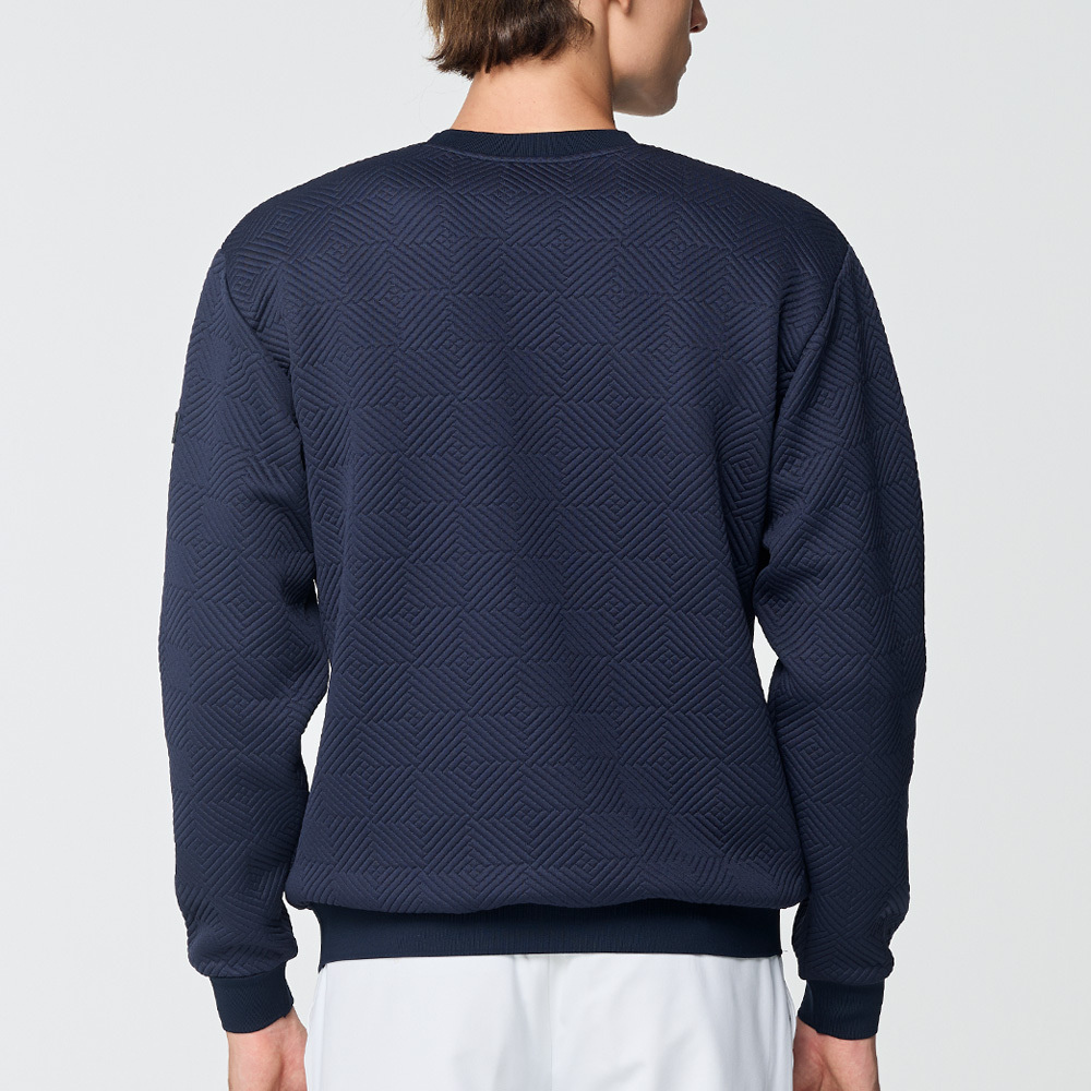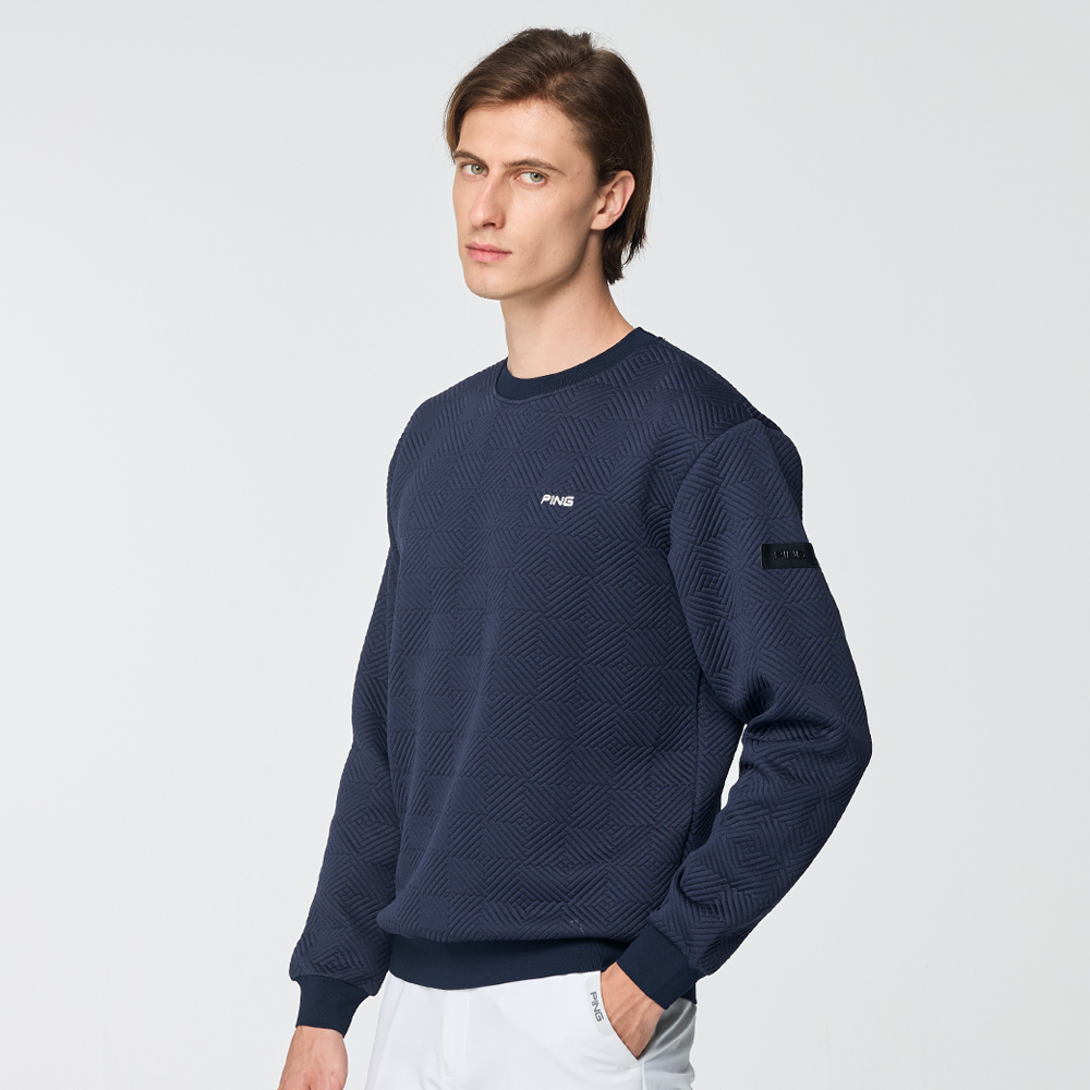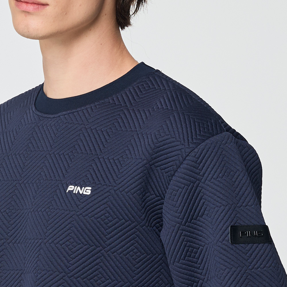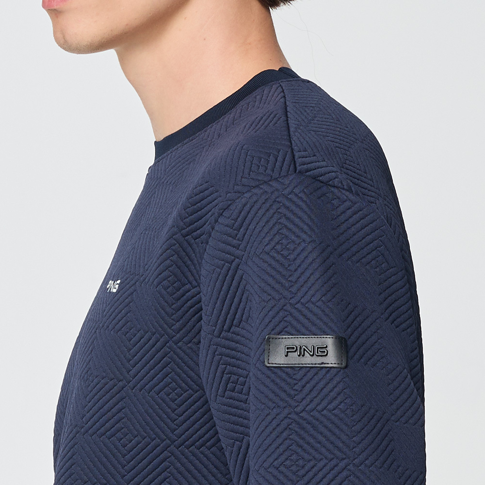 【PING】男款幾何緹花蓄熱保暖長袖圓領上衣-深藍 / PA25233-58