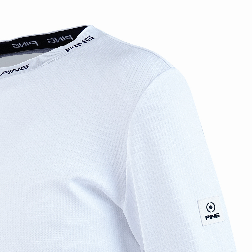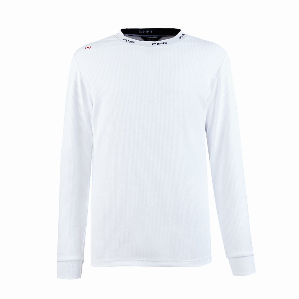 【PING】男款壓印吸濕排汗長袖圓領上衣-白 / PA25236-87
