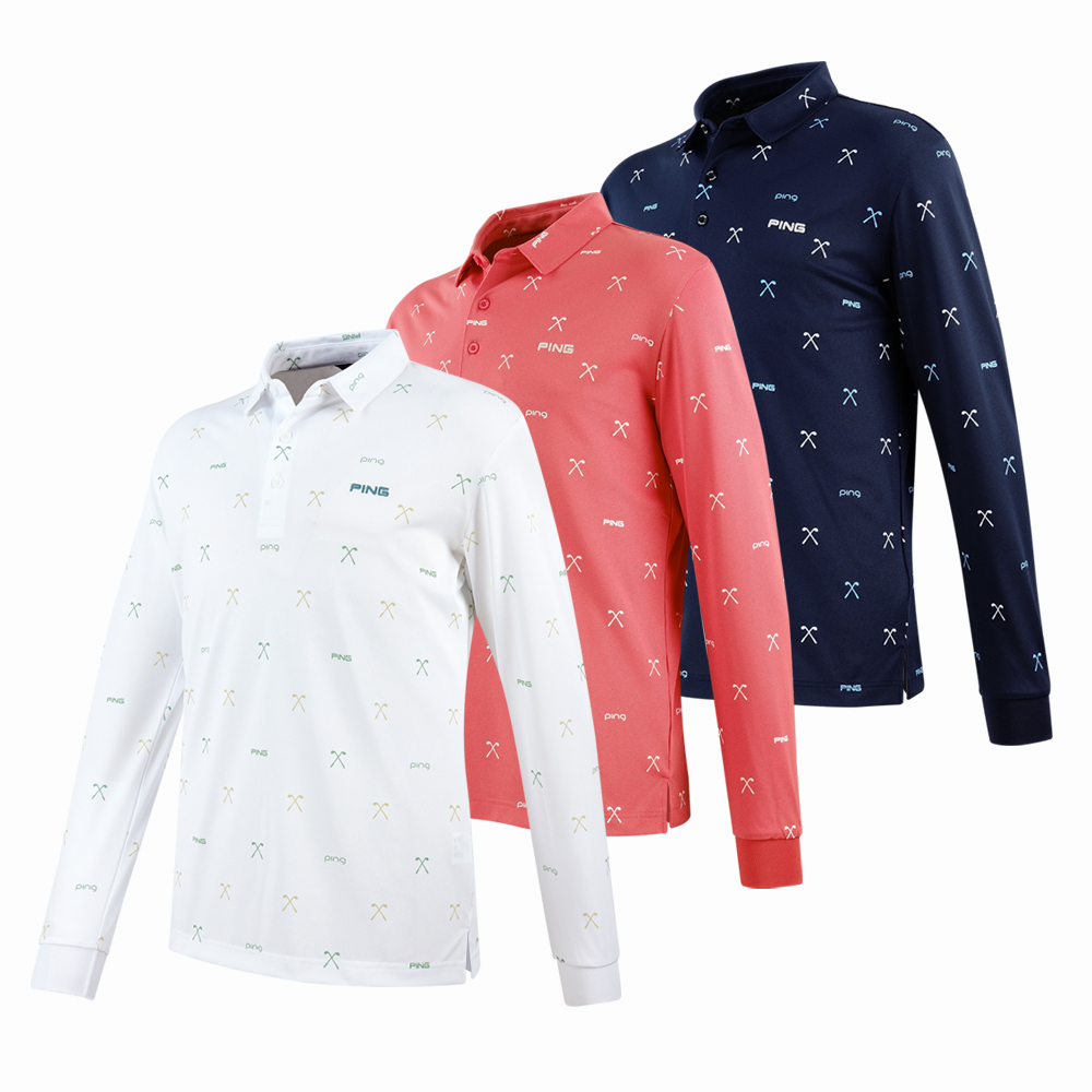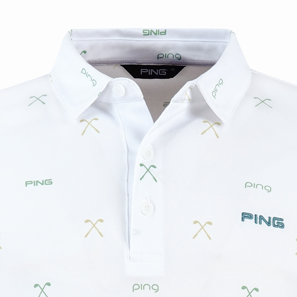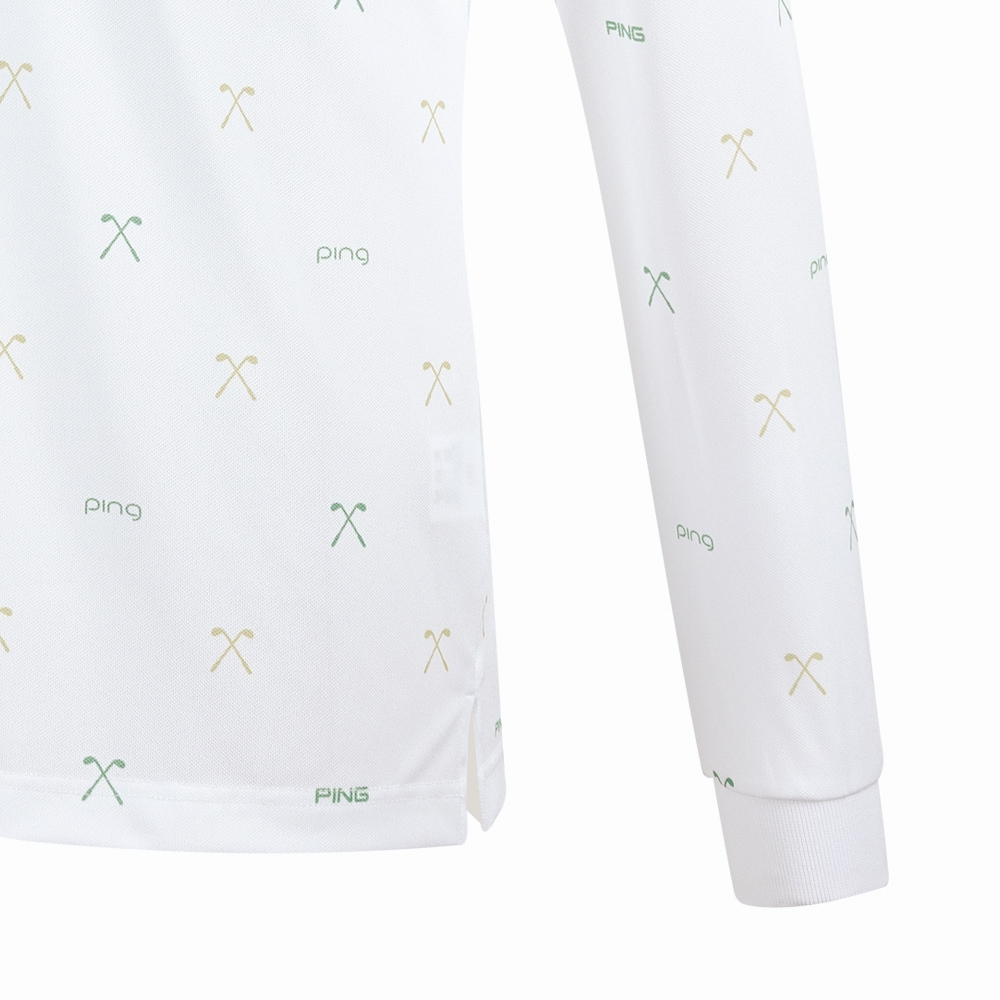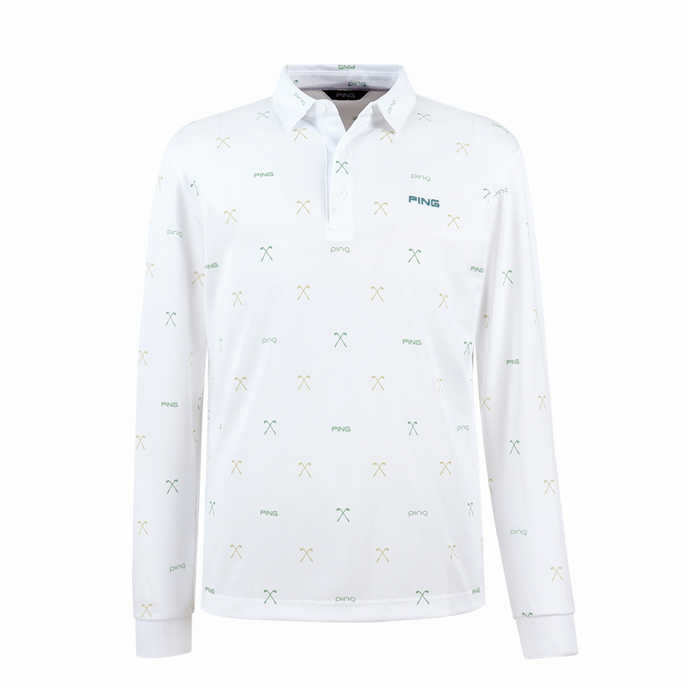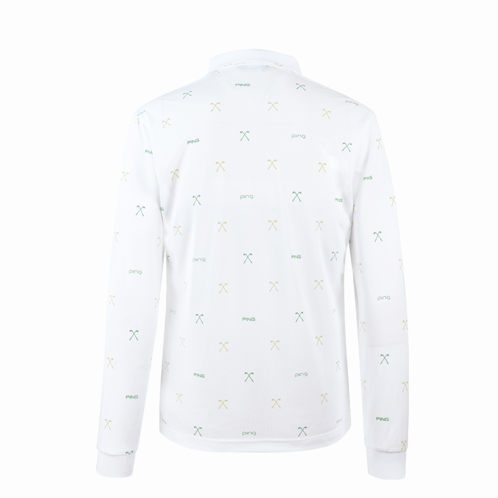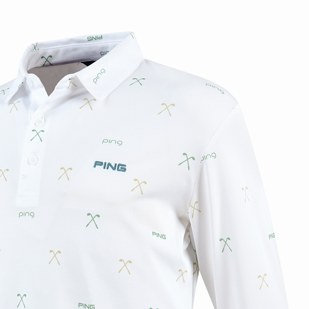 【PING】男款球桿吸濕排汗抗UV高爾夫薄長袖POLO衫-白 / PA25291-87