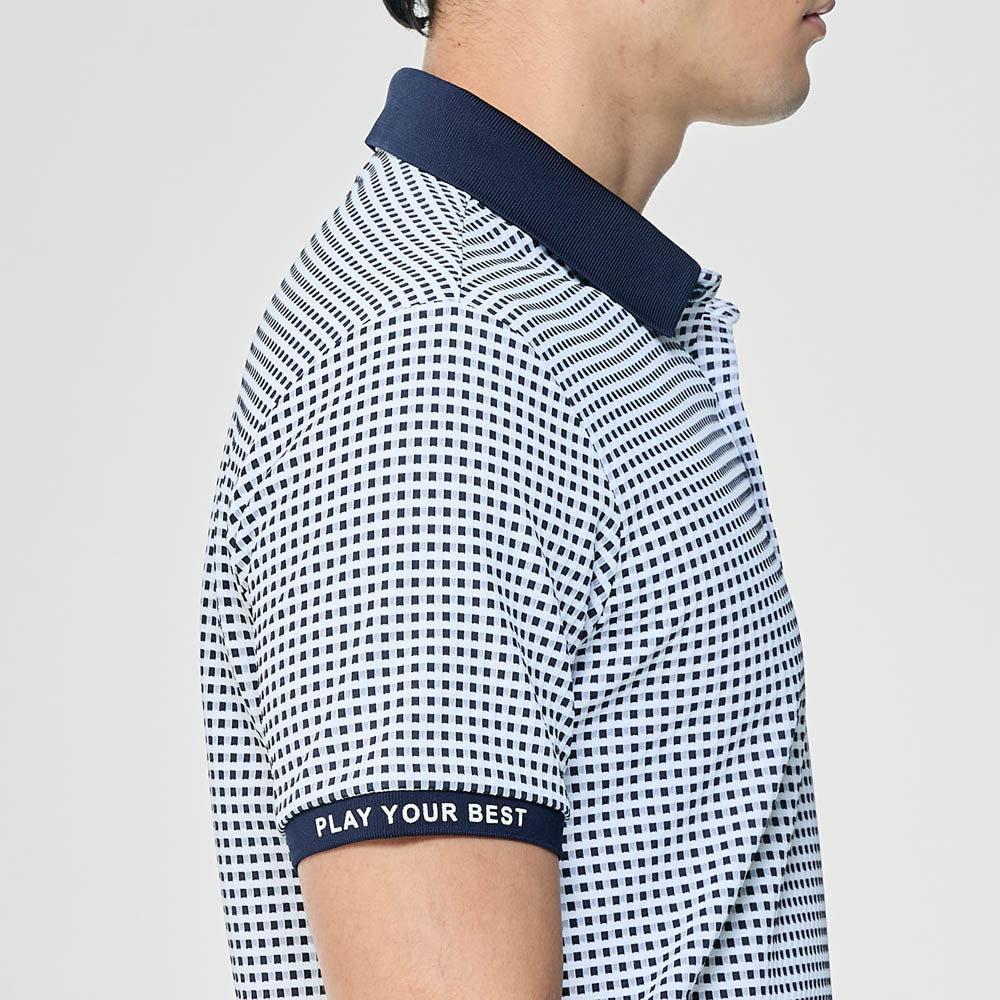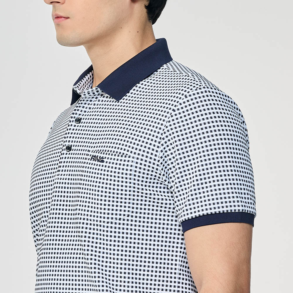 【PING】男款格紋吸濕排汗口袋短袖POLO衫-深藍 / PA26102-58