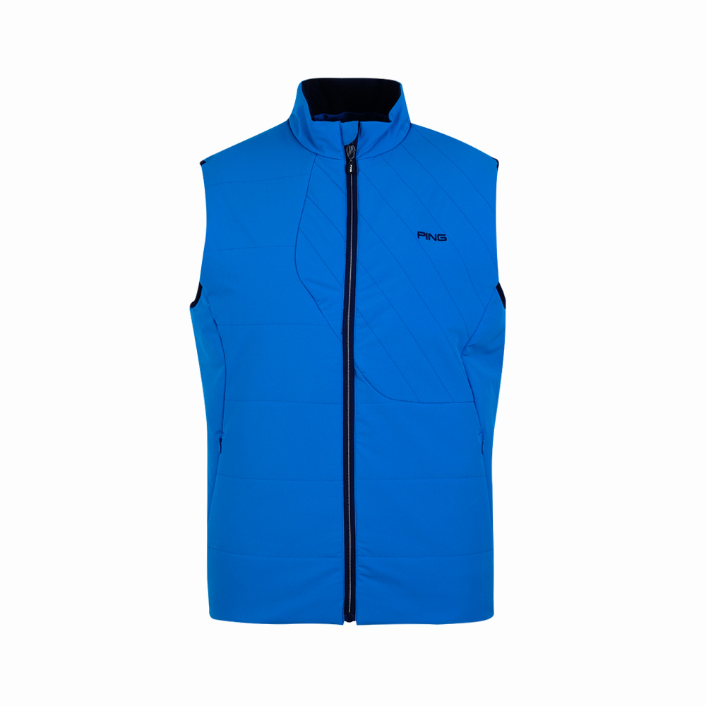 【PING】男款車線高爾夫鋪棉背心-藍 / PB20215-56
