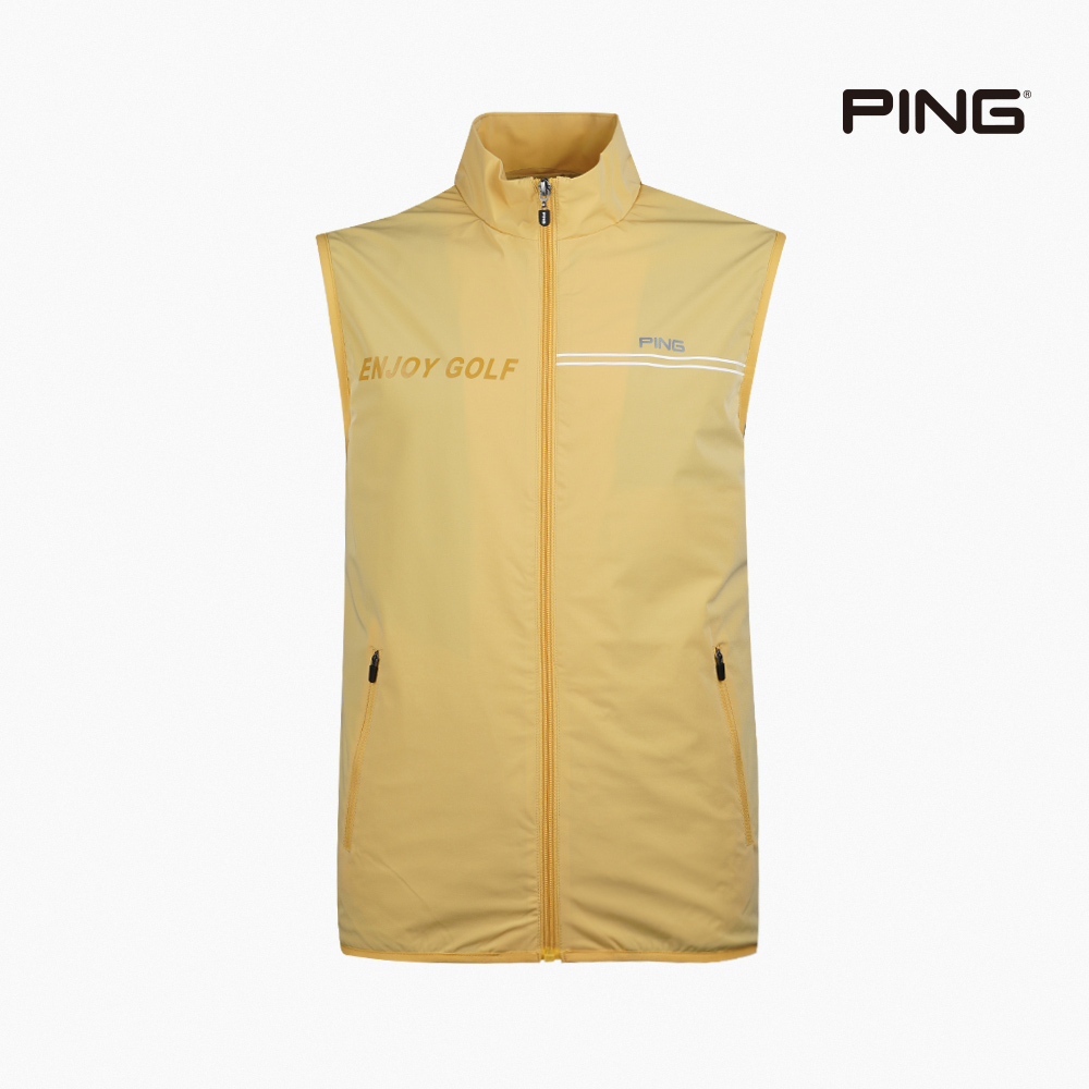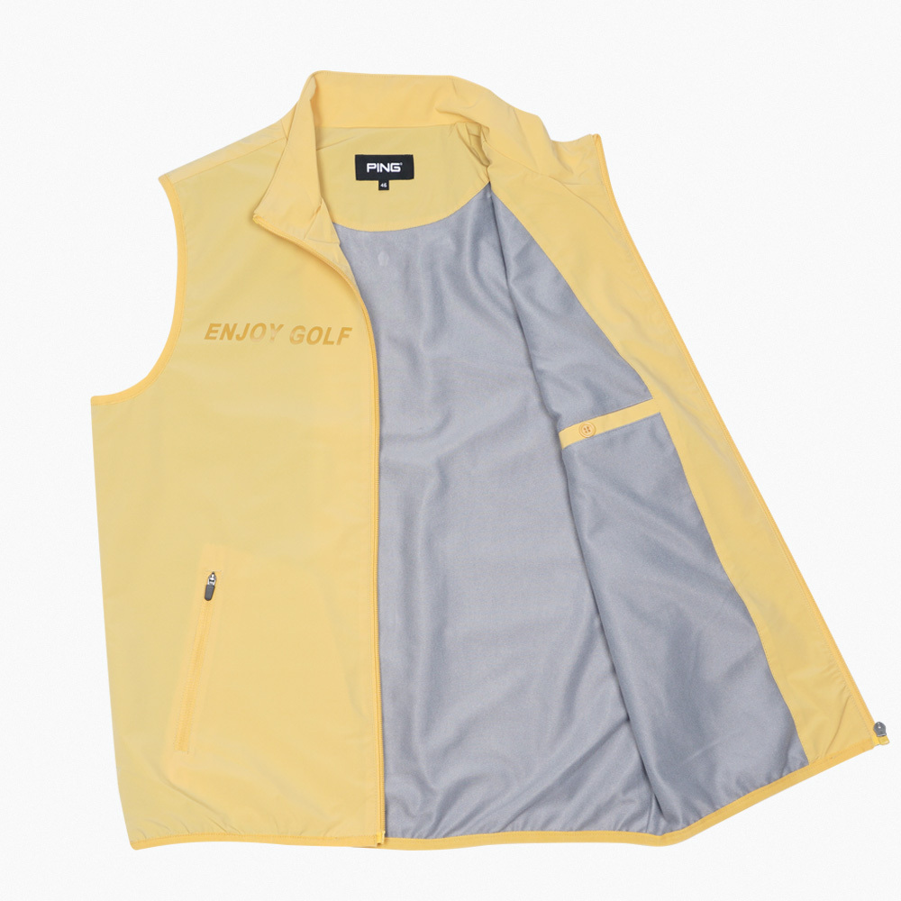 【PING】男款標語設計防風防潑水背心-黃 / PB22216-35