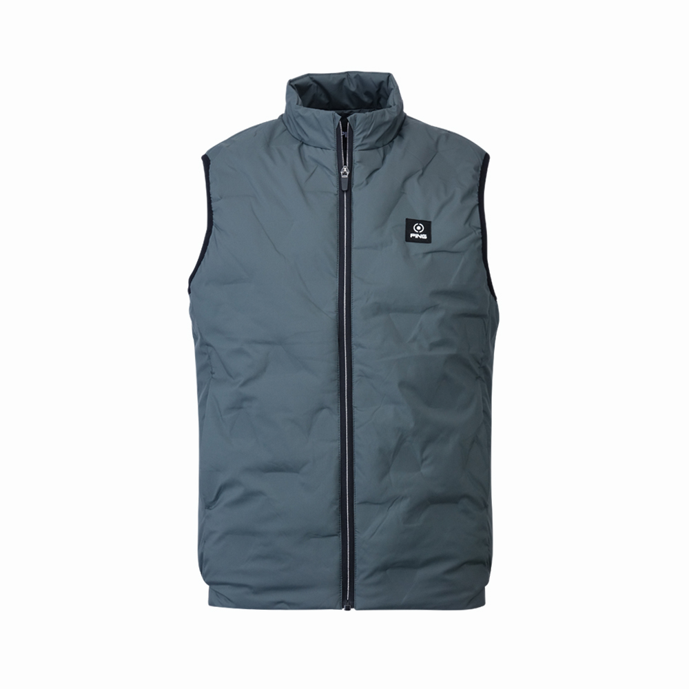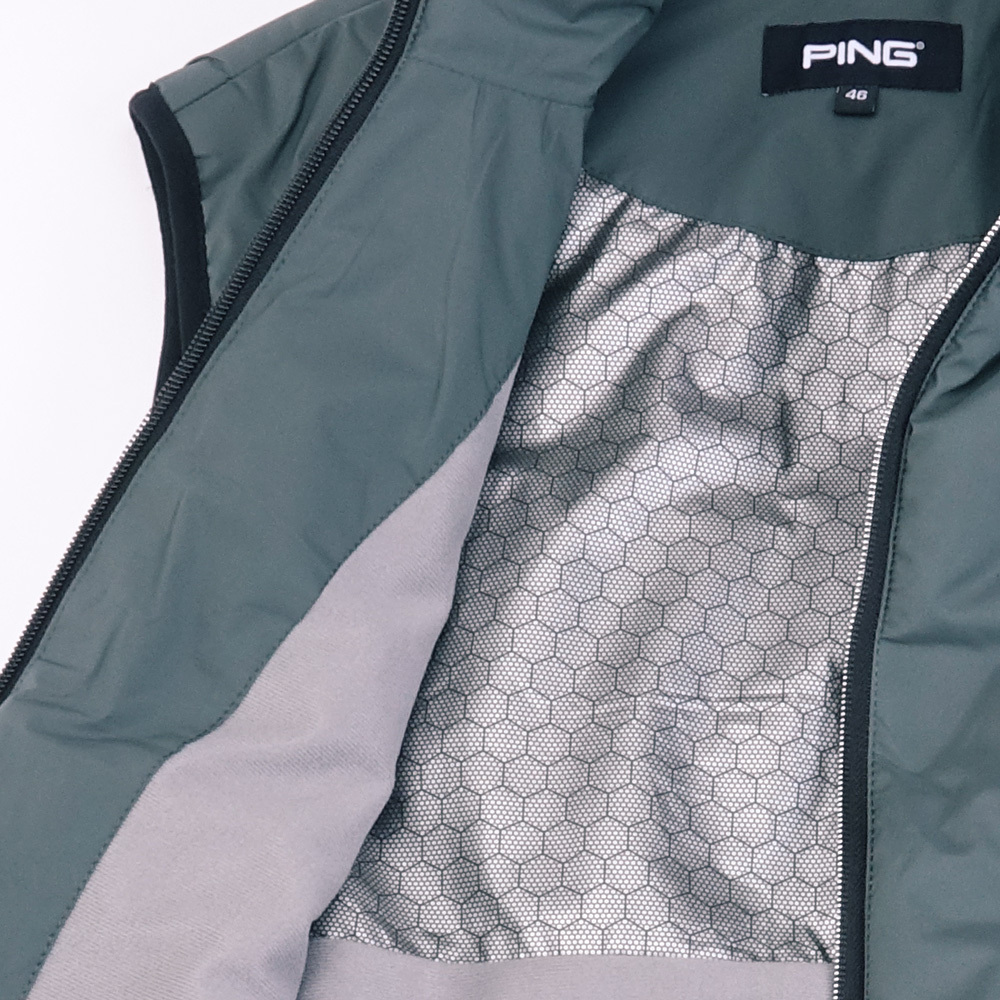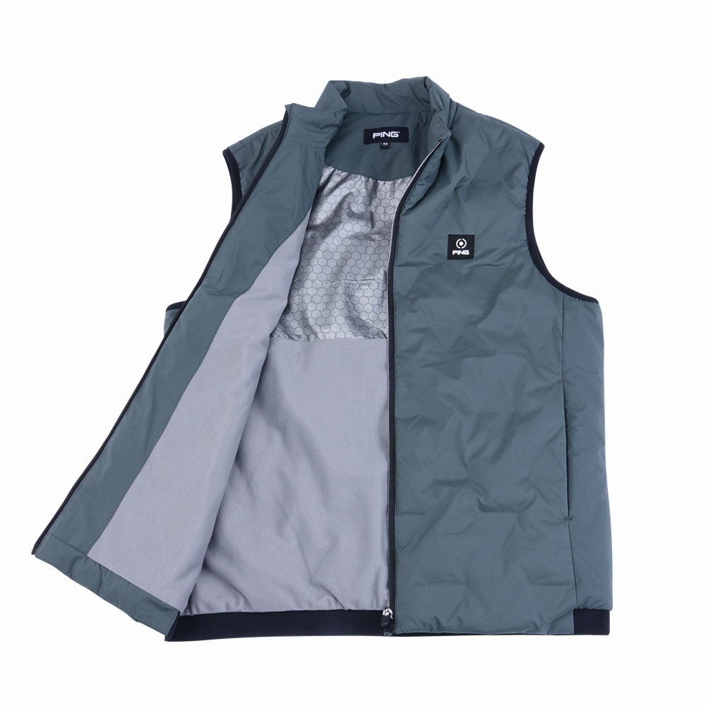 【PING】男款三角型壓棉蓄熱保暖防風防潑水鋪棉背心-綠 / PB24215-48