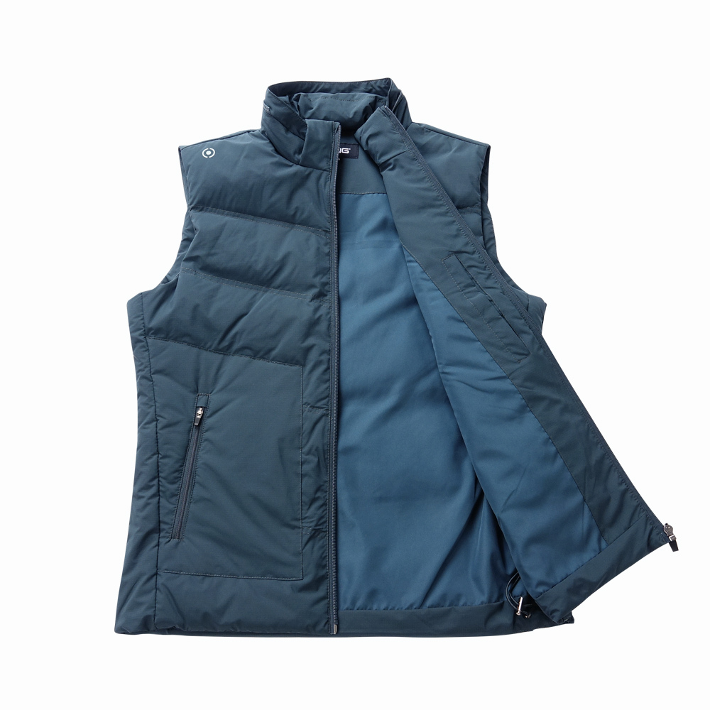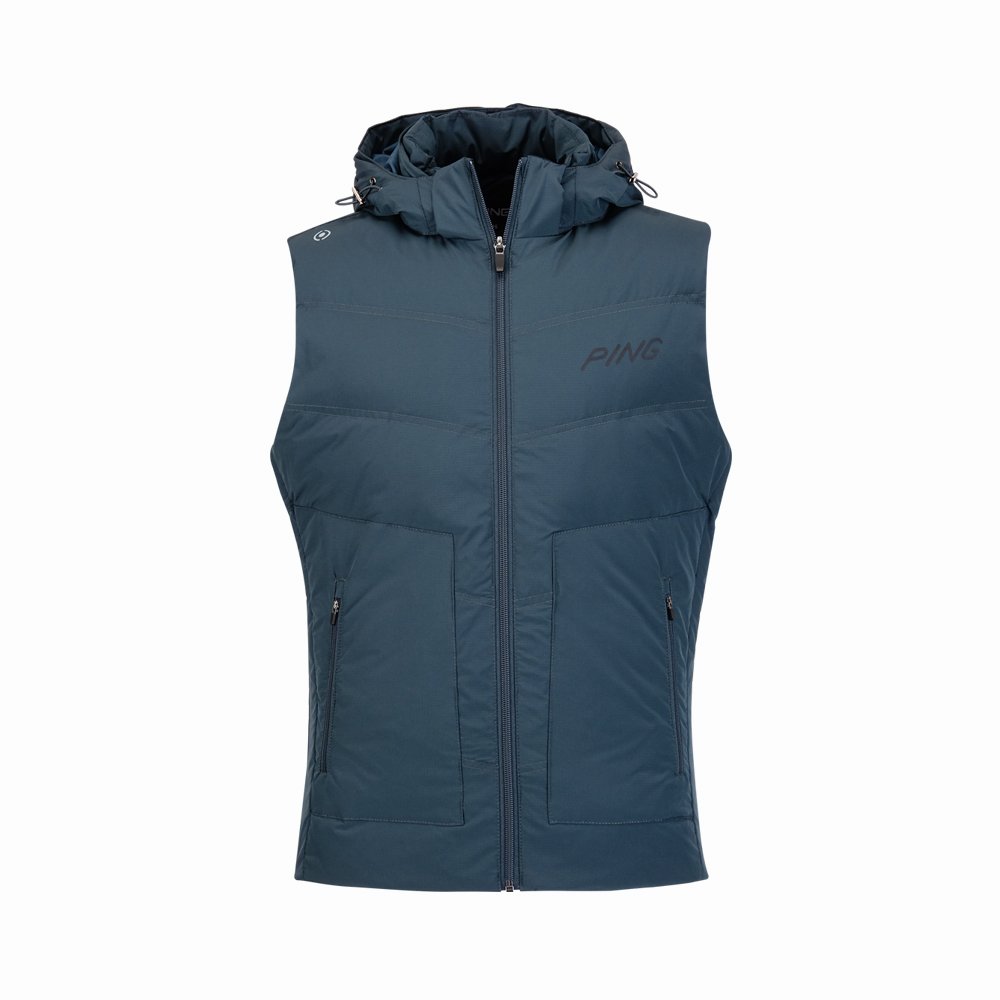 【PING】男款可拆帽蓄熱保暖羽絨背心-綠 / PB24220-48