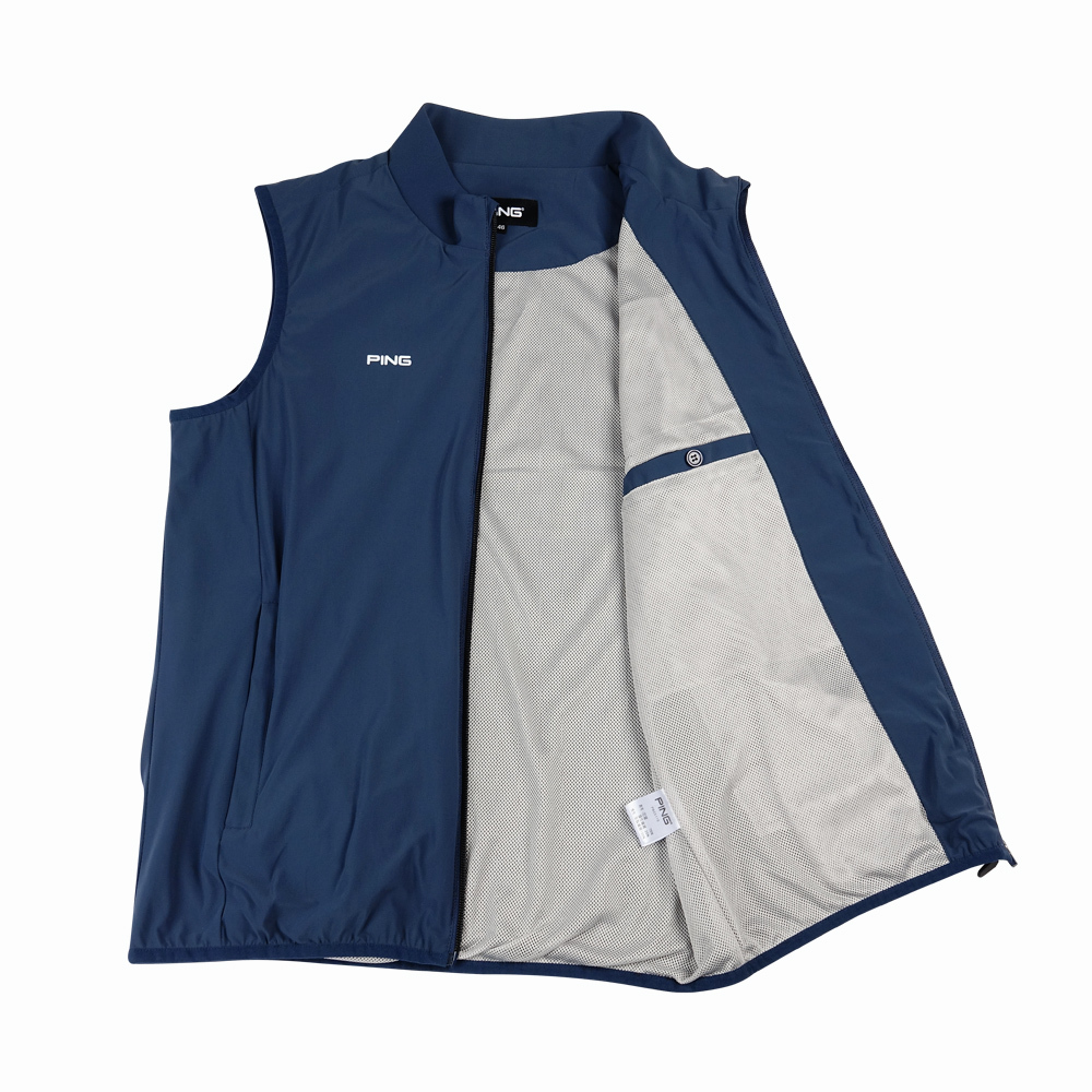 【PING】男款透氣網內裡高爾夫薄背心-藍 / PB25115-56
