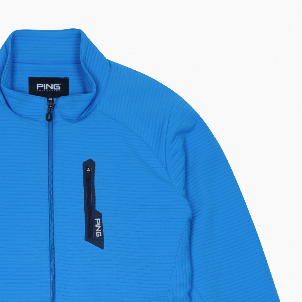 【PING】男款立體橫紋蓄熱保溫針織外套-藍 / PC21210-56