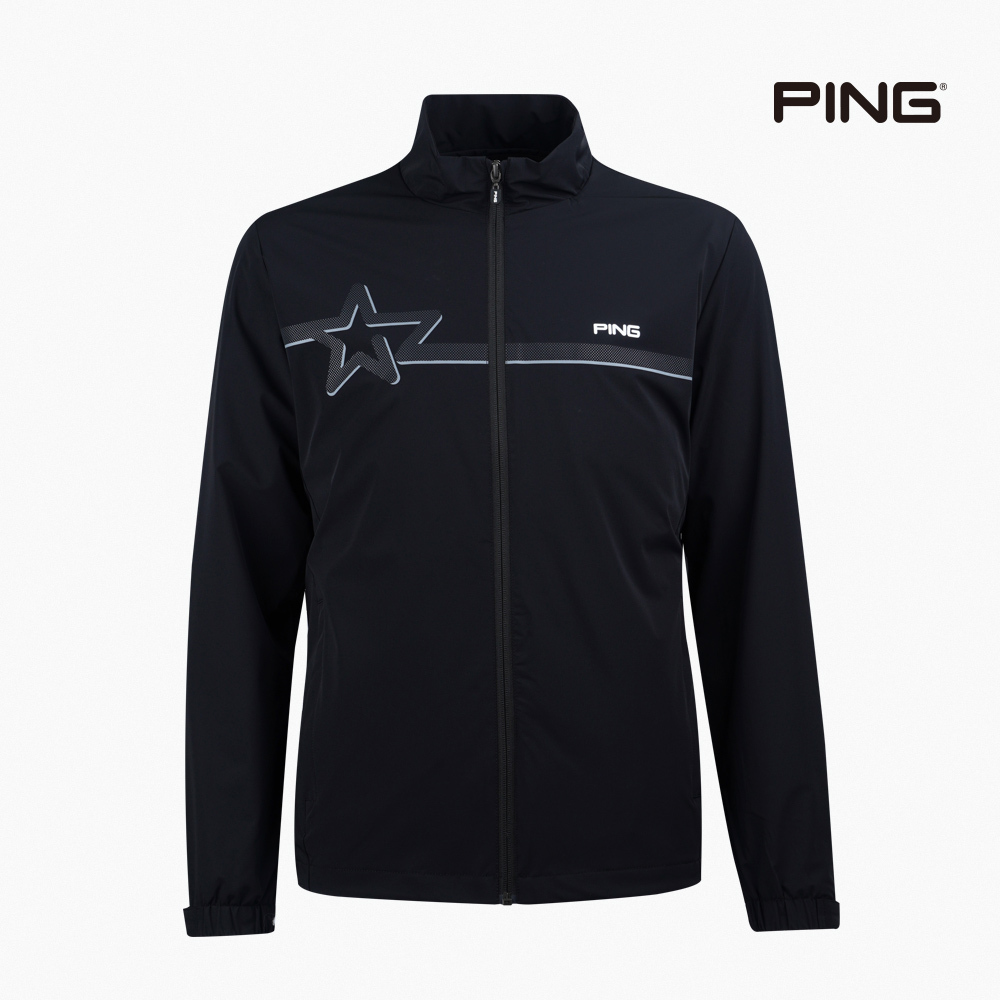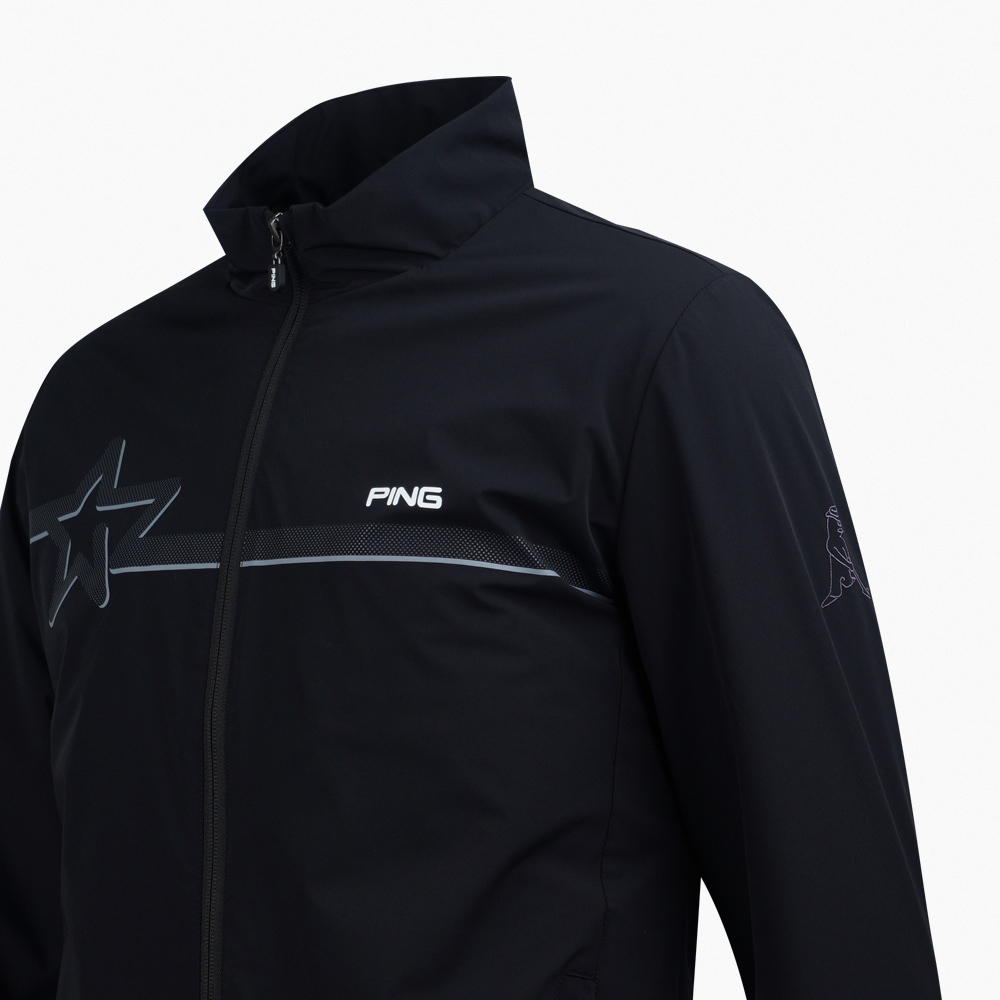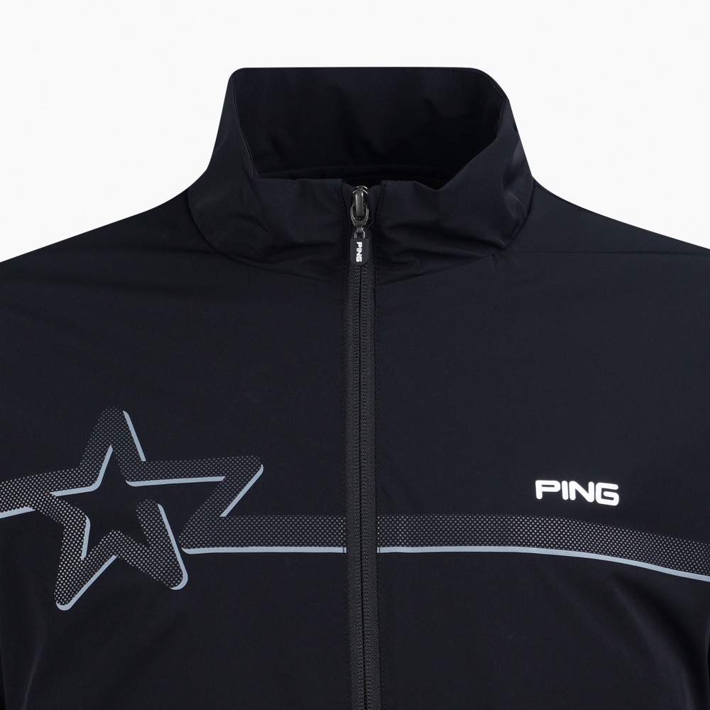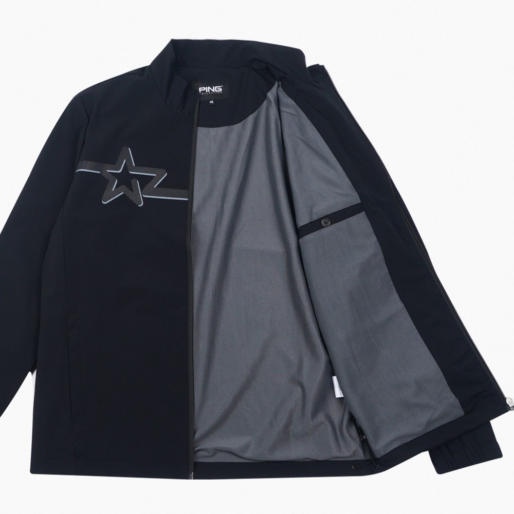 【PING】男款星型圖騰防風防潑水休閒風衣外套-黑 / PC22216-88