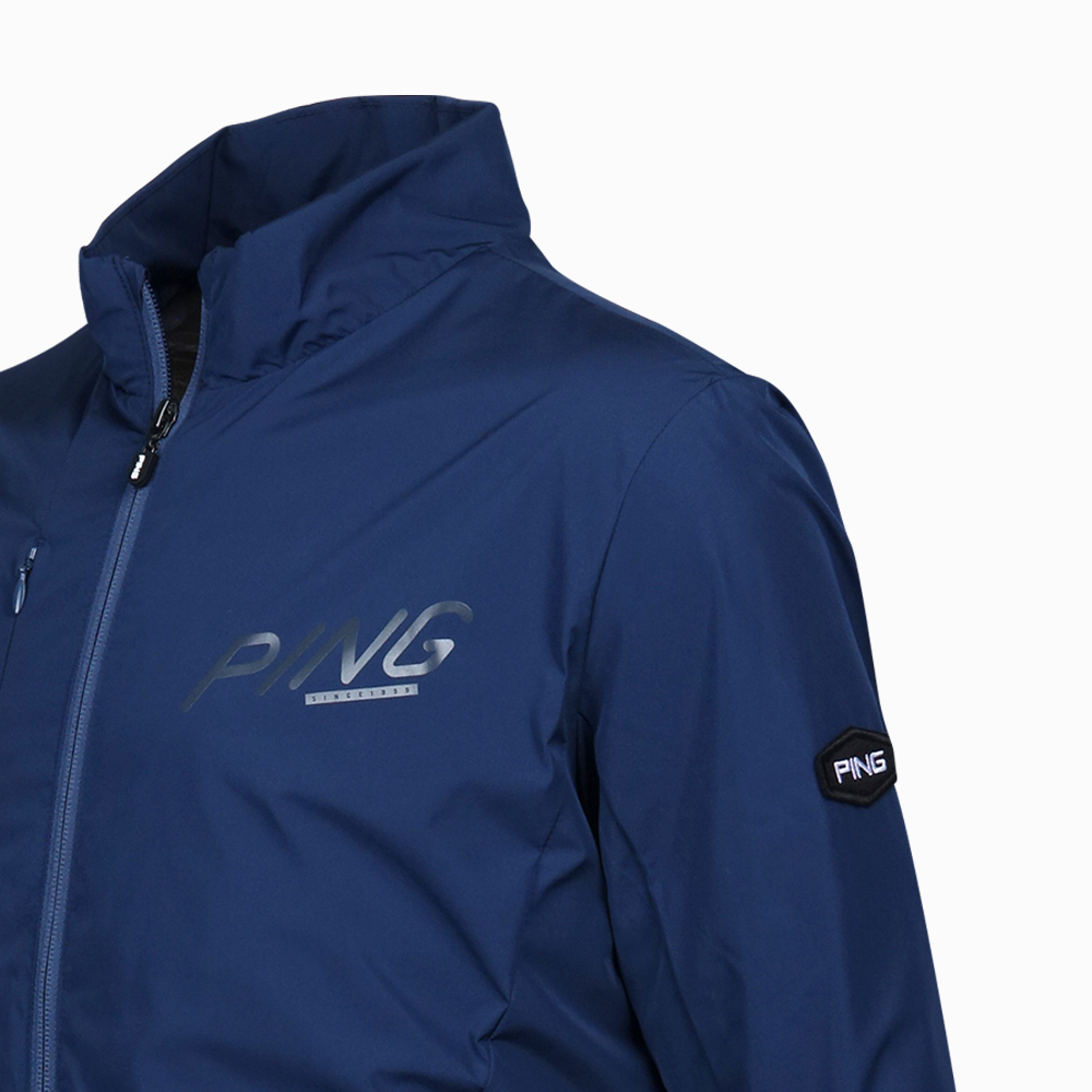 【PING】男款LOGO圖騰防風防潑水風衣薄外套-藍 / PC23216-57