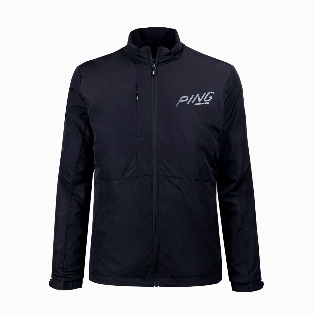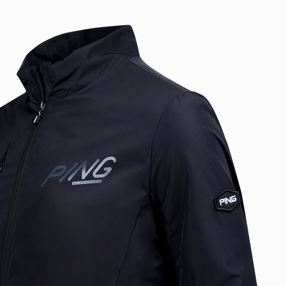 【PING】男款LOGO圖騰防風防潑水風衣薄外套-黑 / PC23216-88