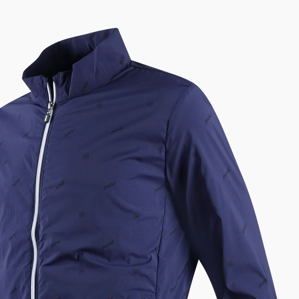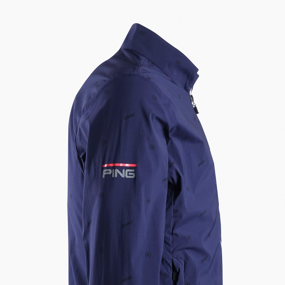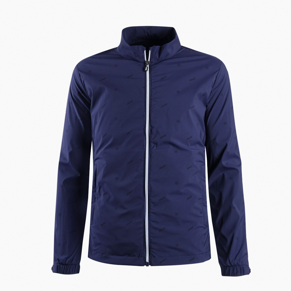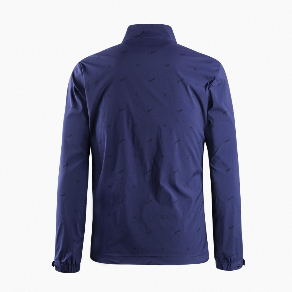 【PING】男款印花防潑水抗UV高爾夫薄外套-深藍 / PC24116-58